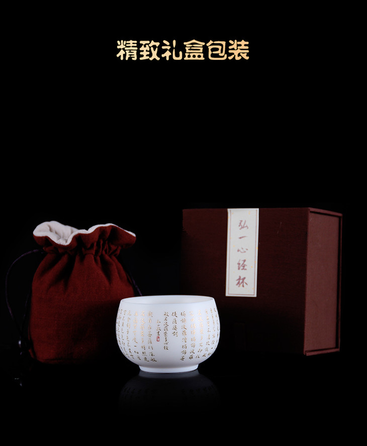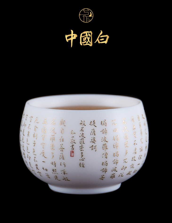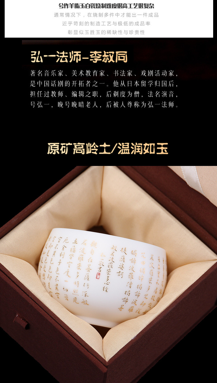 兮作德化羊脂玉白瓷心经杯主人杯单杯陶瓷大号功夫茶具茶杯品茗杯 弘一法师书体