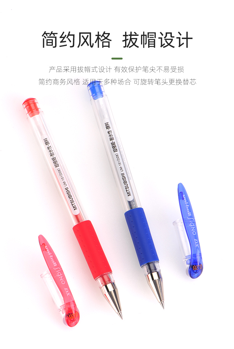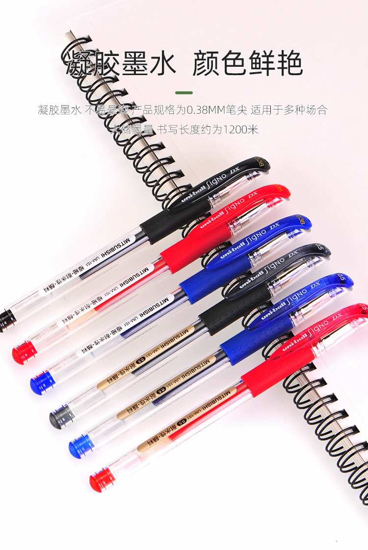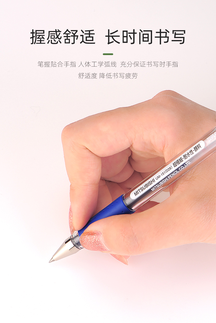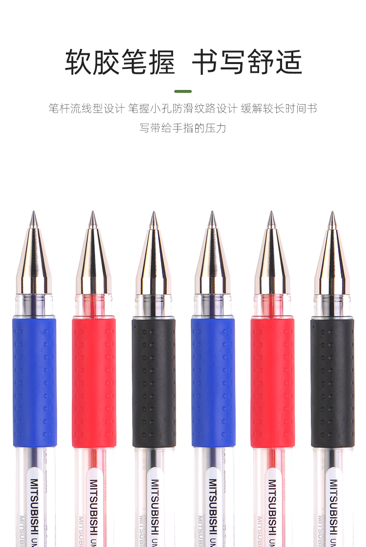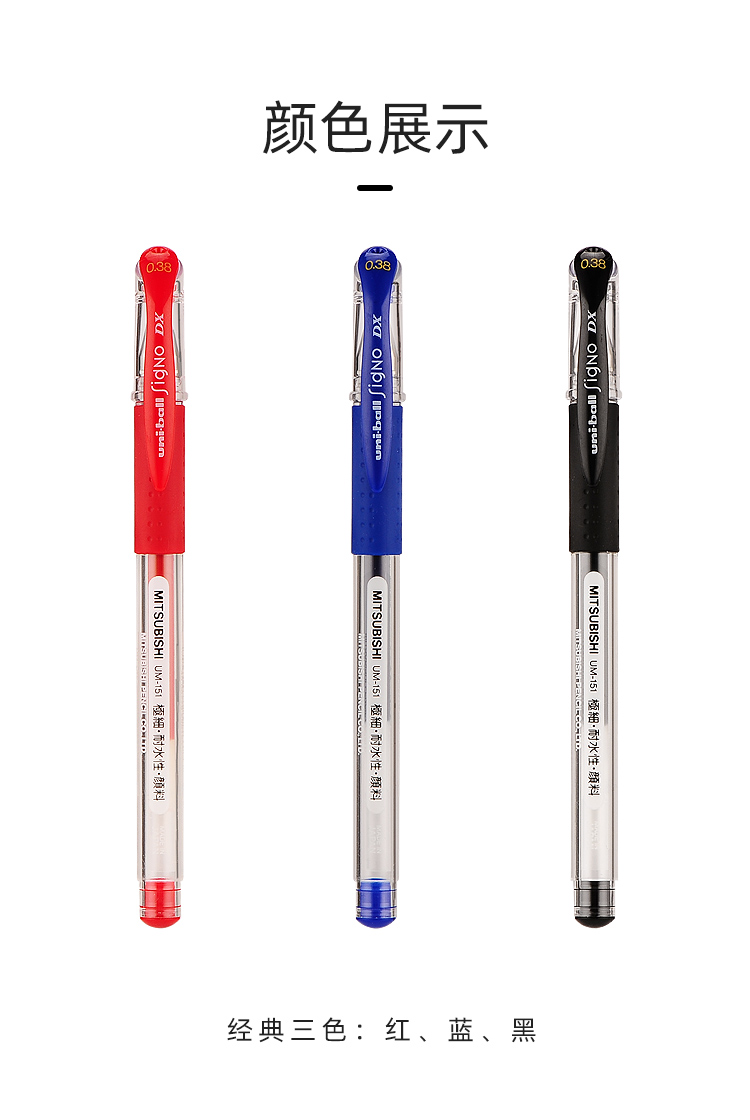 三菱U151办公签字笔财务专用学生考试0.5红蓝黑色水笔速干笔