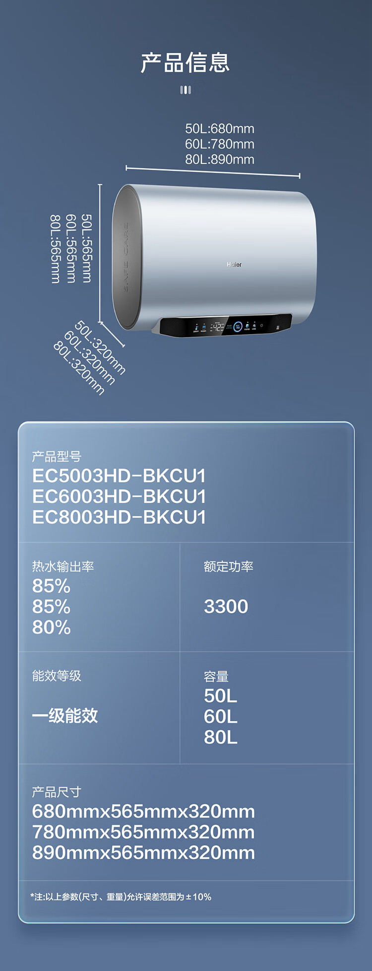 海尔(Haier)热水器 EC5003HD-BKCU1