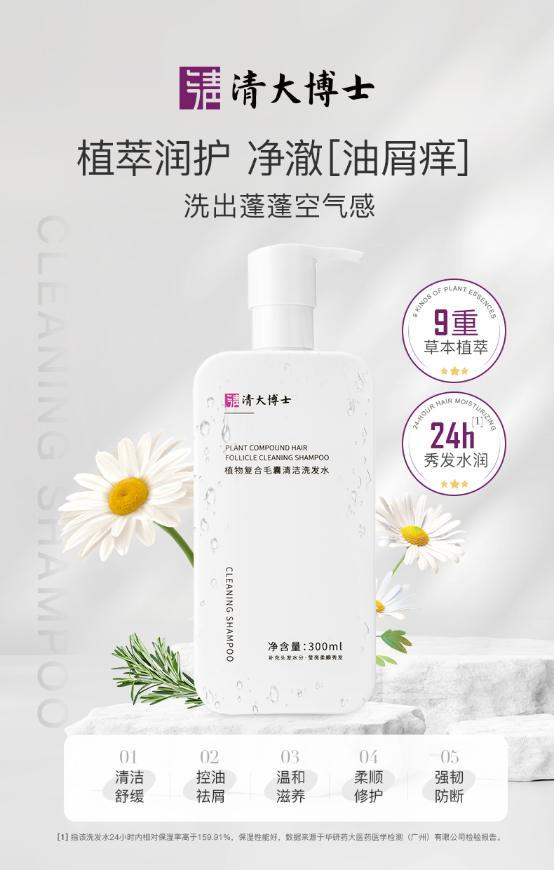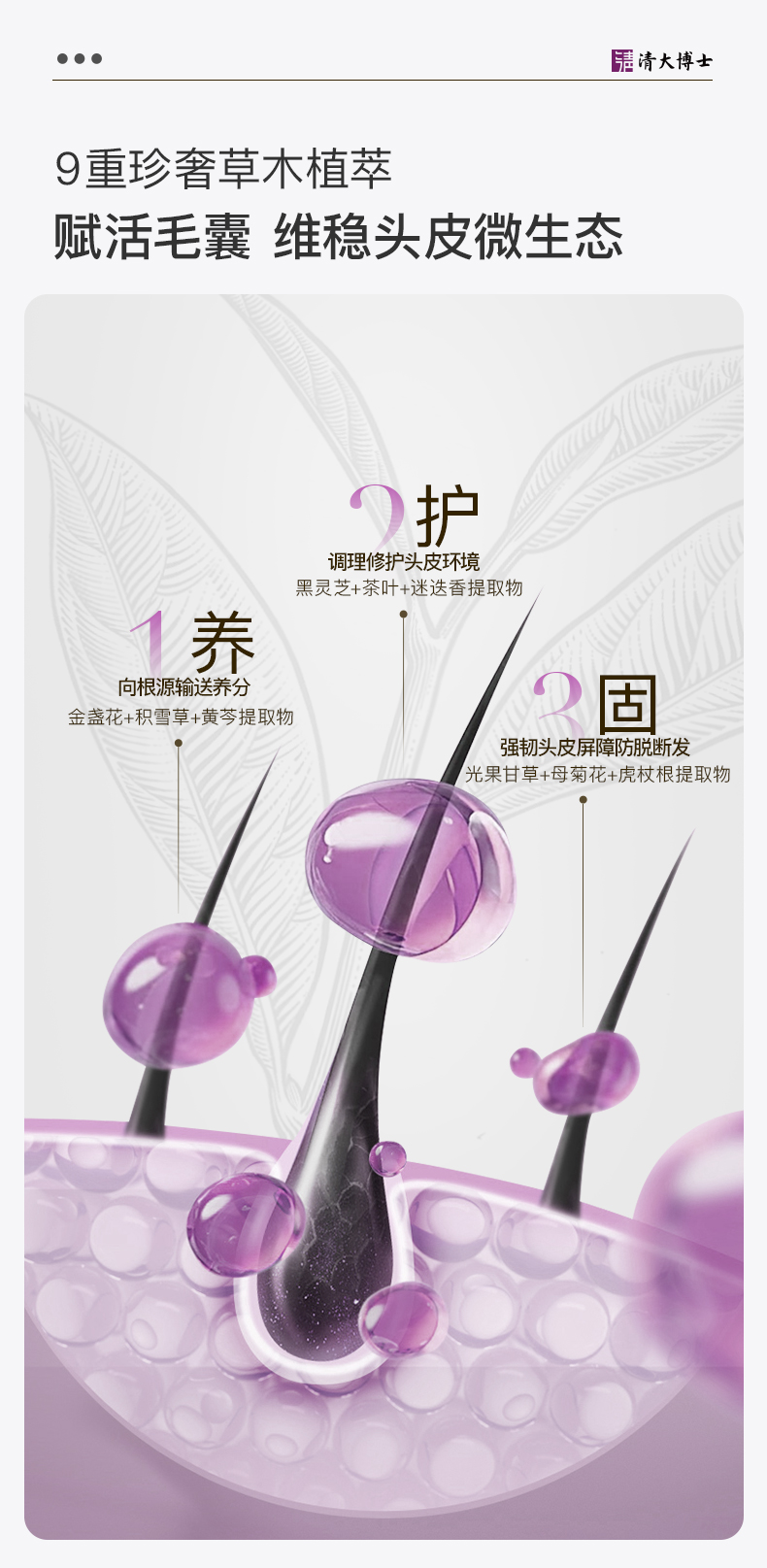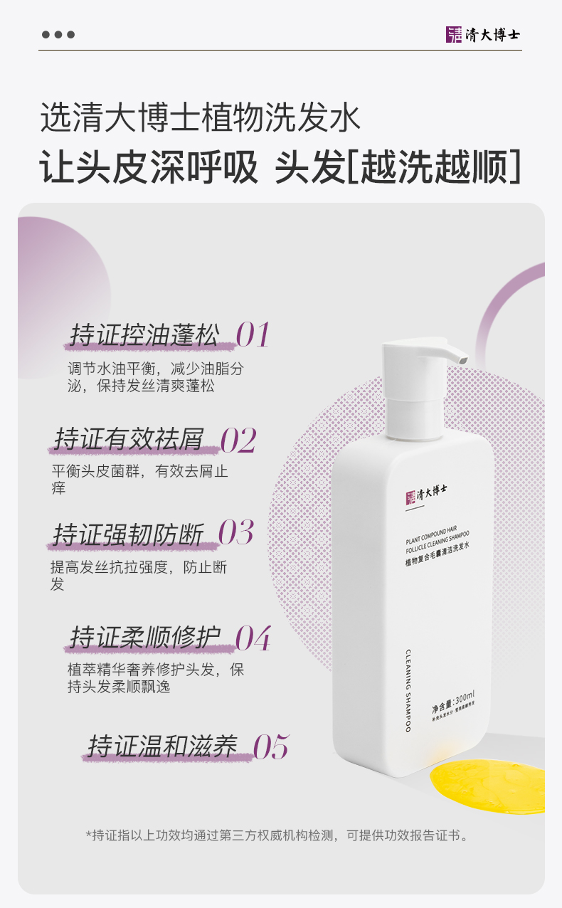 (买赠试用装)清大博士 毛囊清洁洗发水 去屑止痒控油防断发 I 清华博士科研团队打造 Du家专利成分+草本植萃 养护头皮发丝 全家适用 清华大学直接发货