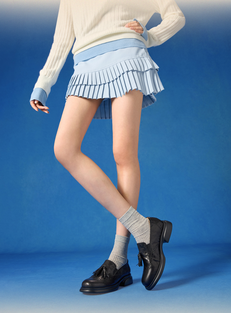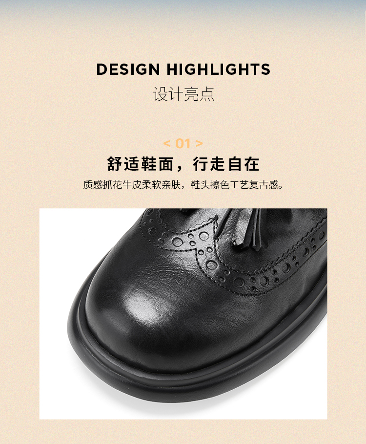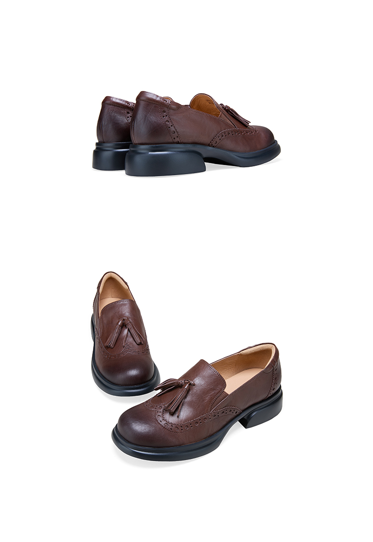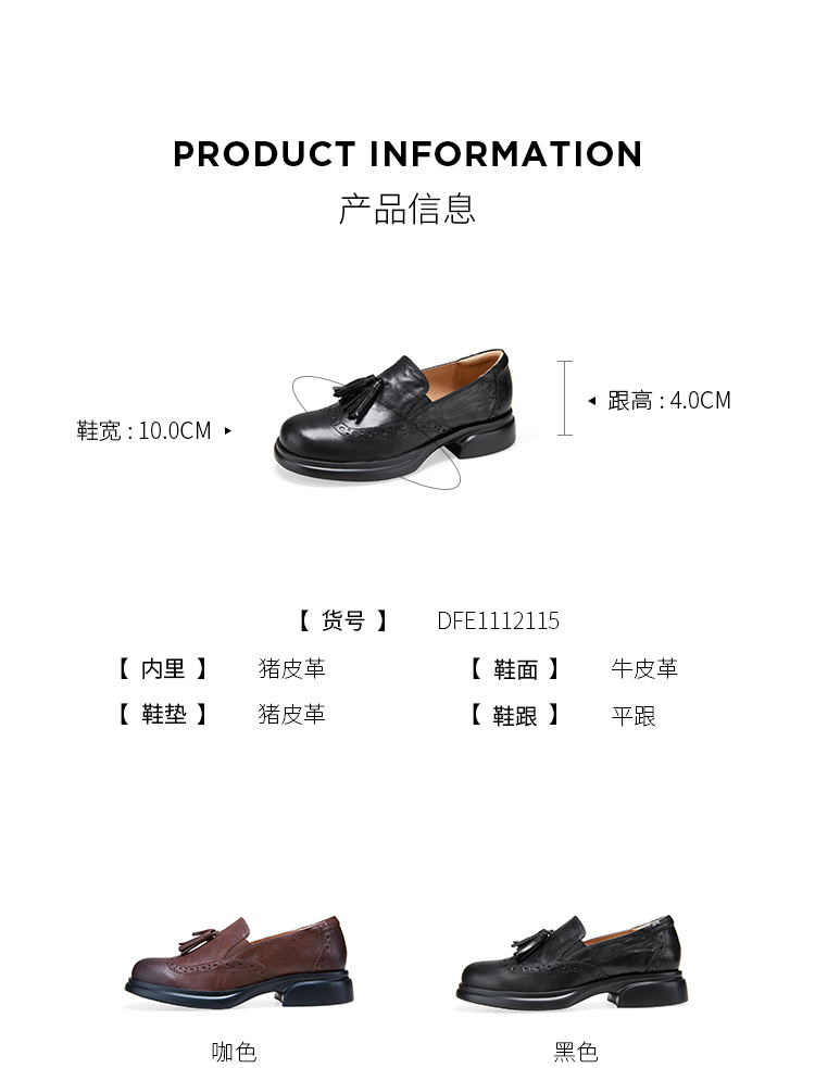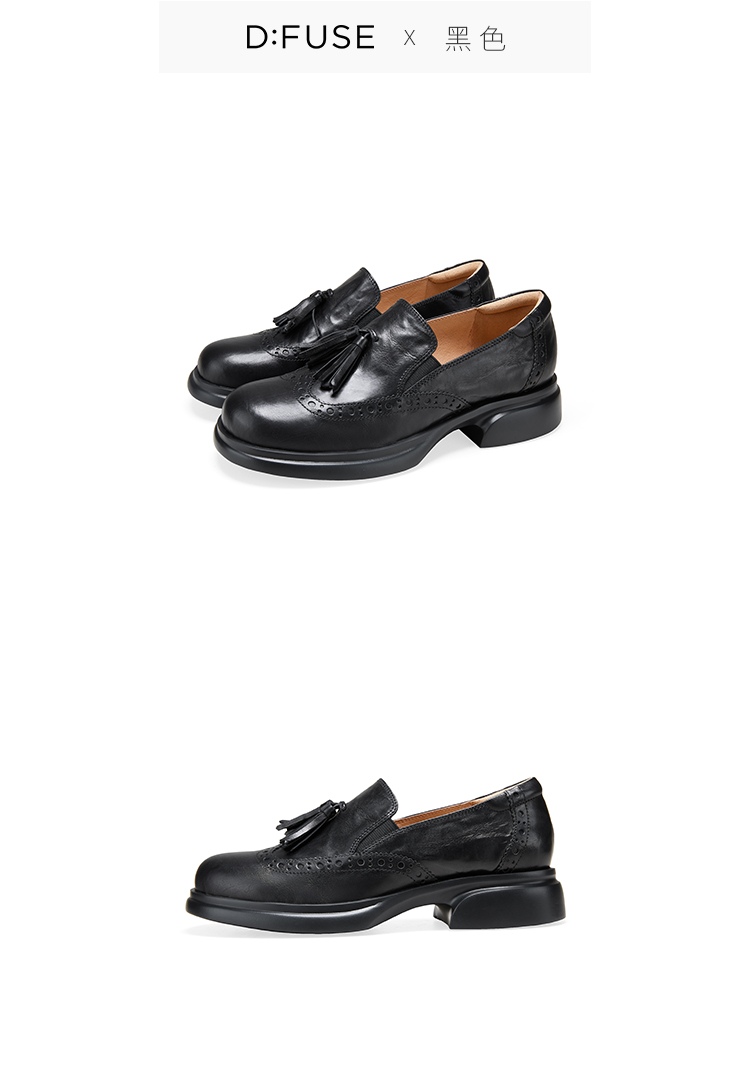 Dfuse迪芙斯2026春季新款复古流苏英伦风深口女鞋休闲乐福鞋深口单鞋DFE1112115