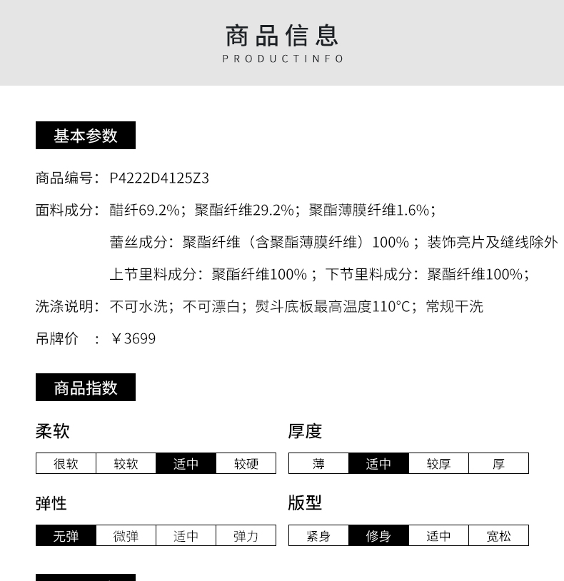 成熟、稳重、高贵典雅、大方得体 融合东方文化的含蓄和法国的浪漫 将创意的艺术性与消费需求相结合 为自信女性塑造高品质场合服装