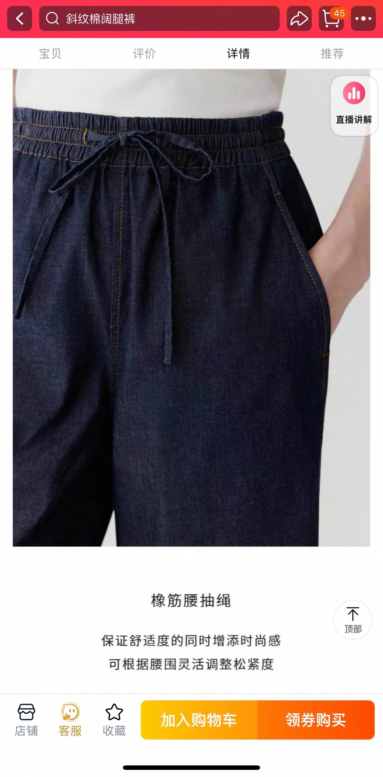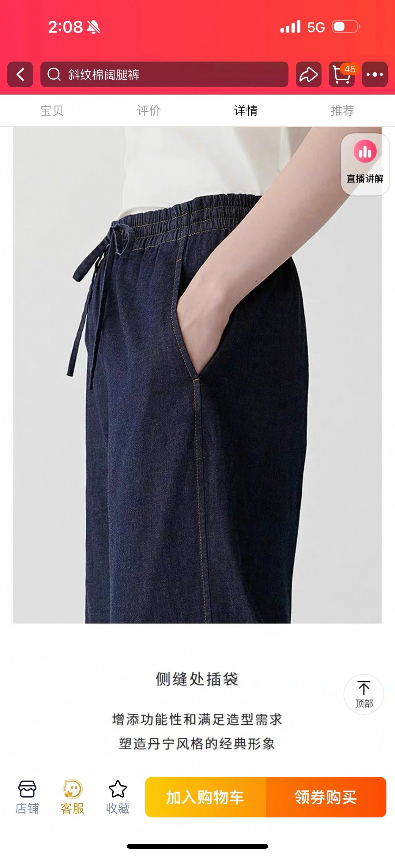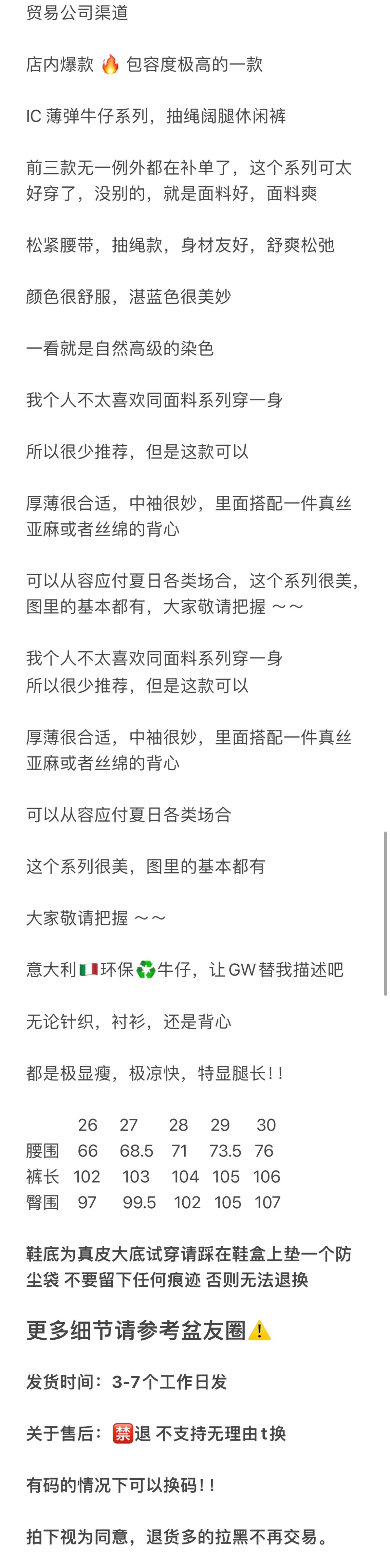 重磅推荐!IC抽绳牛仔阔腿裤 意大利进口 薄棉牛仔