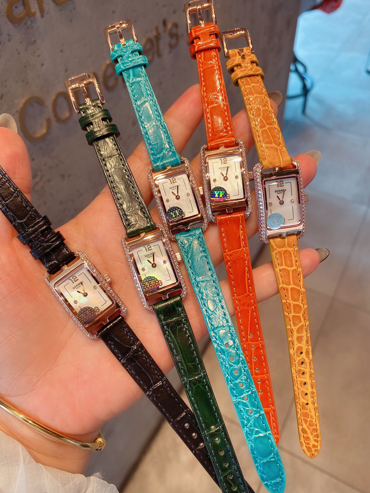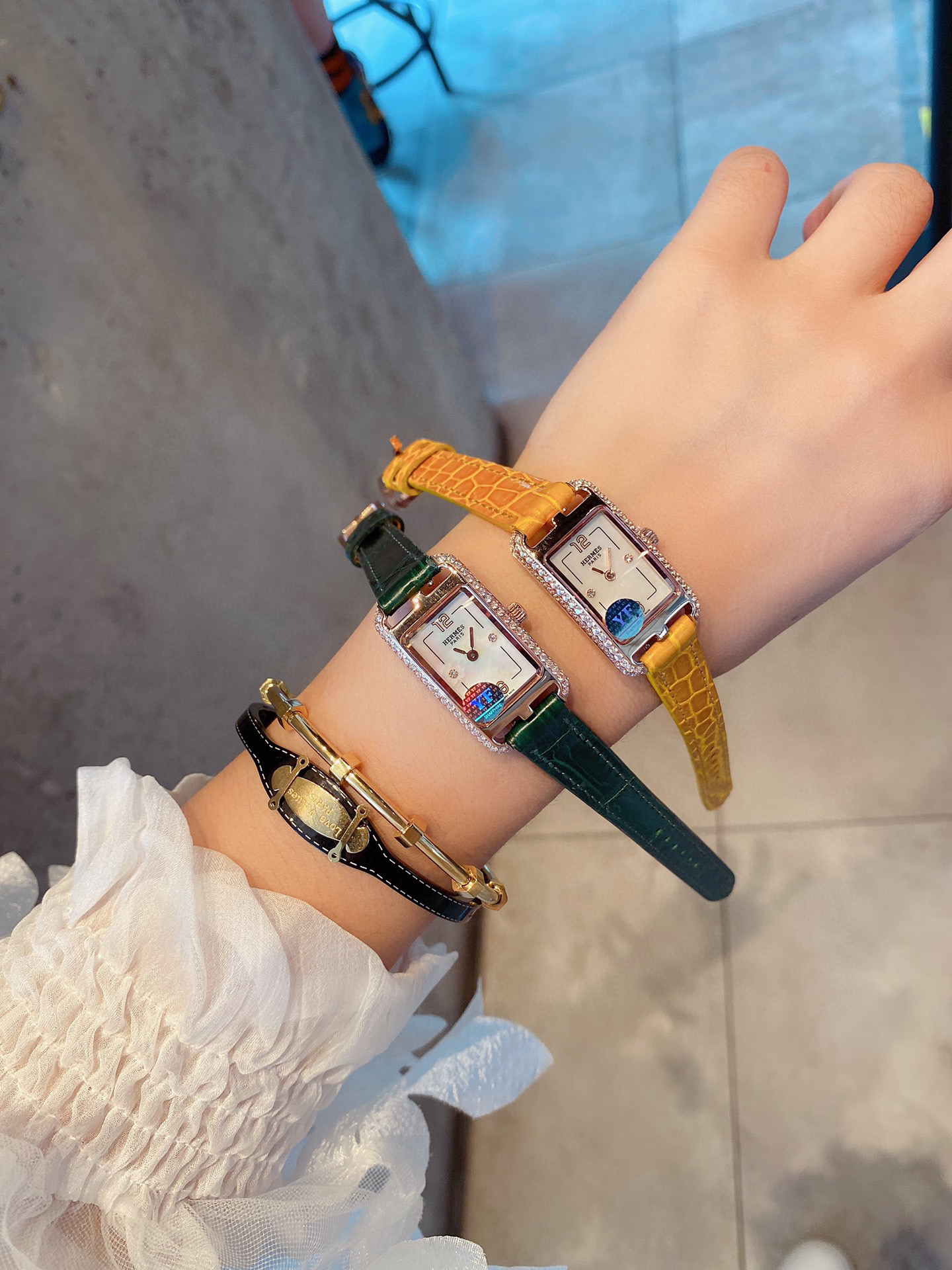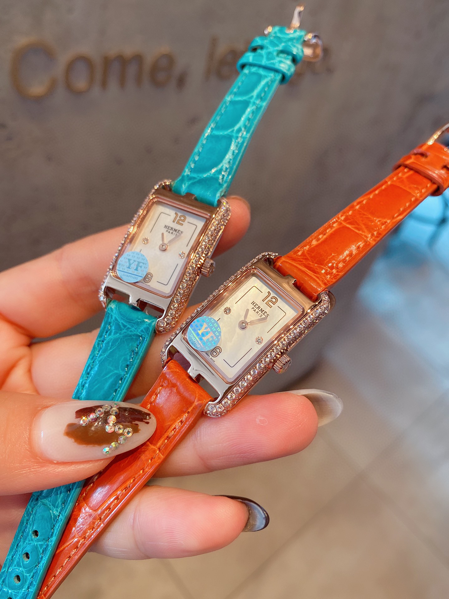 爱马仕Nantucket系列从不循规蹈矩,展现不竭创意,全新TresPetitModeIe腕表进一步凸显了设计的精美轮廓,宝石镶嵌,白色天然珍珠母贝表盘,蓝宝石水晶镜面,原装瑞士ETA石英机芯,搭配色彩丰富的美洲鳄鱼皮表带,为坚定优雅气质画上点睛之笔。
