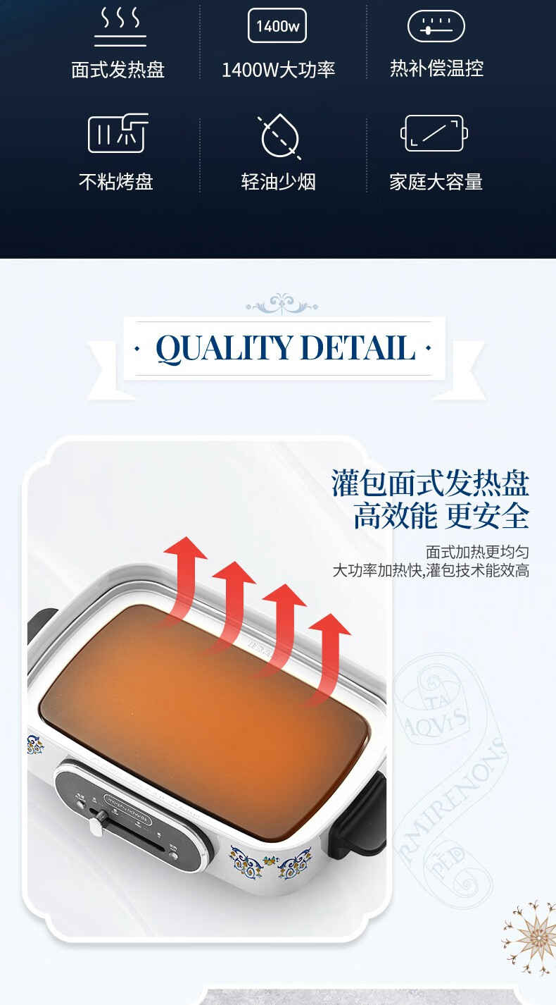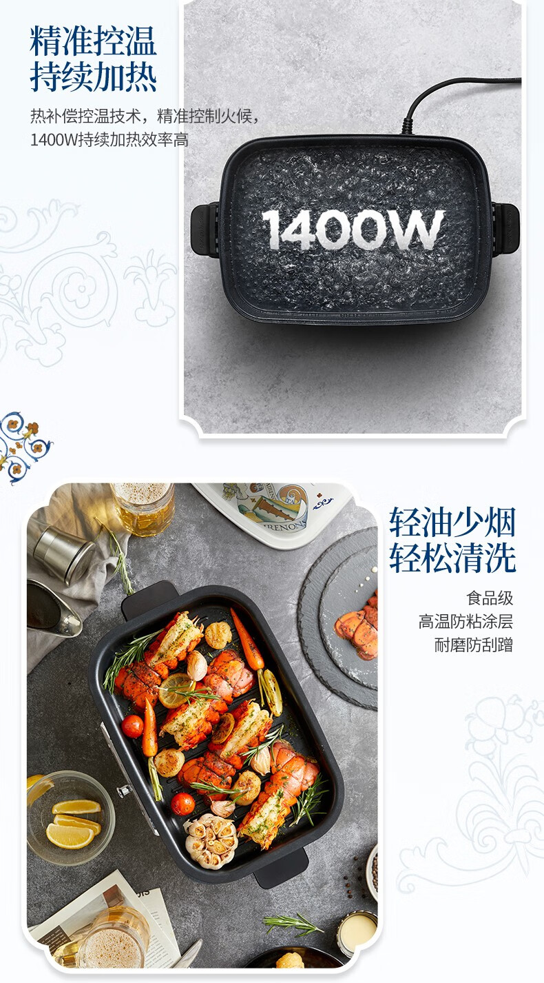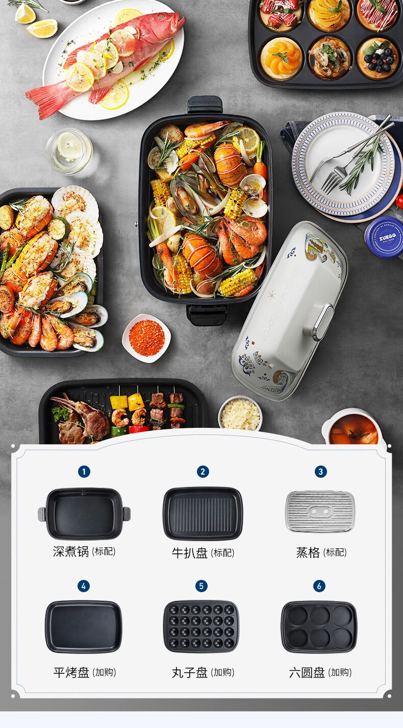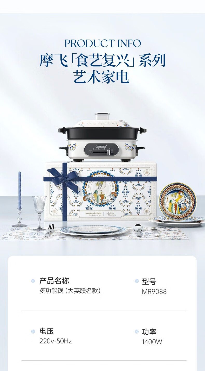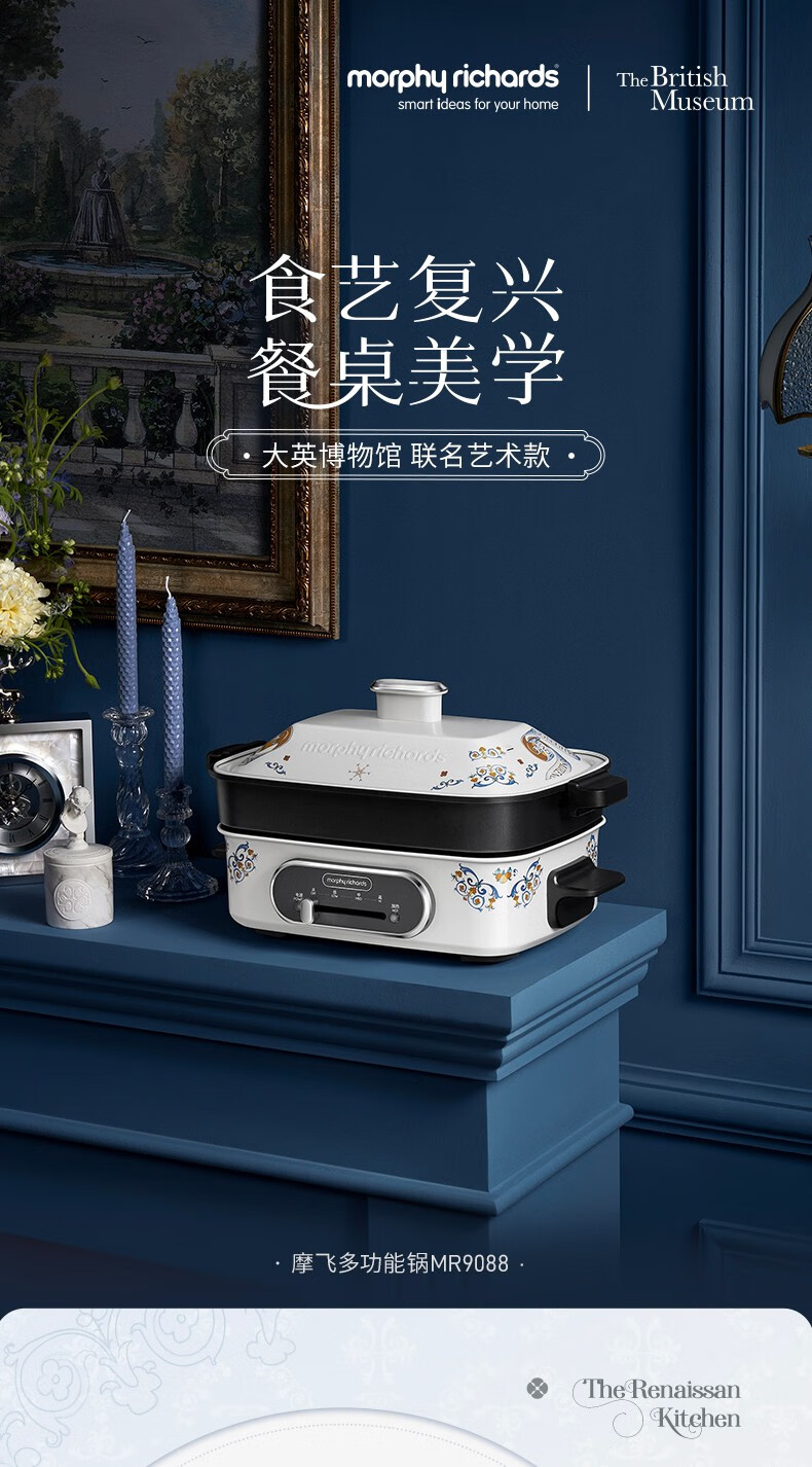 摩飞电器(Morphyrichards)多功能锅家用多用途锅料理锅电烤锅电火锅烤肉锅电热煮锅 MR9088 标配(大英联名款)