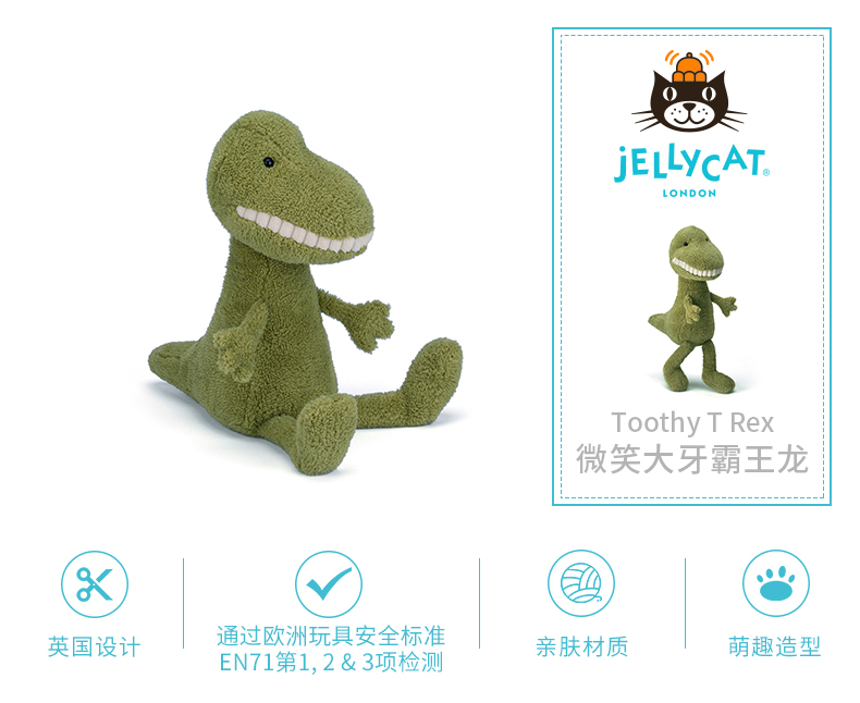 Jellycat 微笑大牙猪/大牙龙/大牙狗/大牙霸王龙 36cm