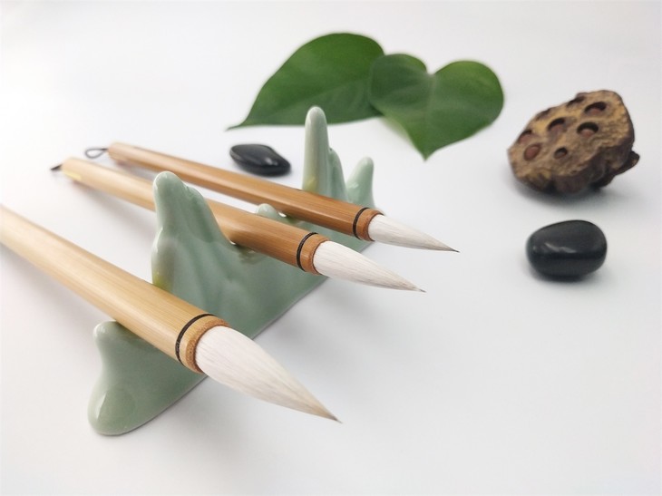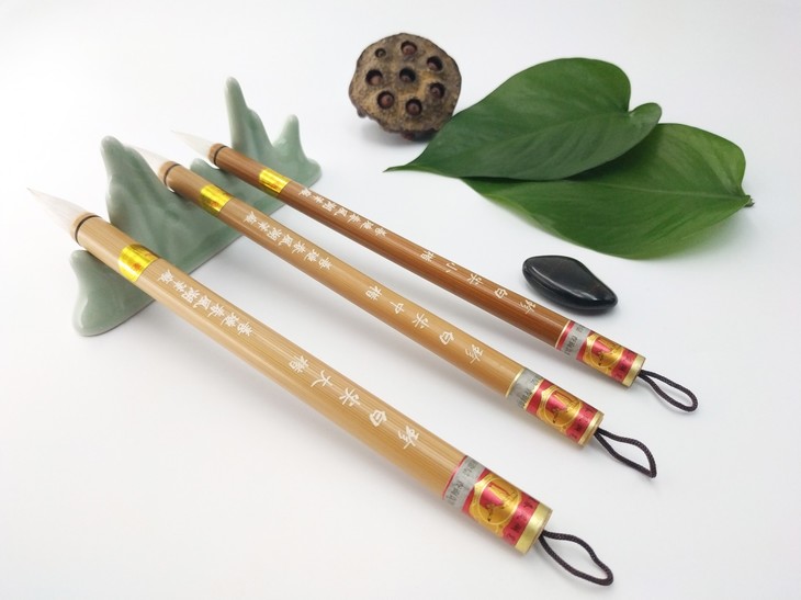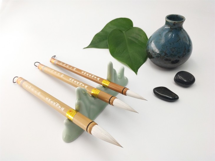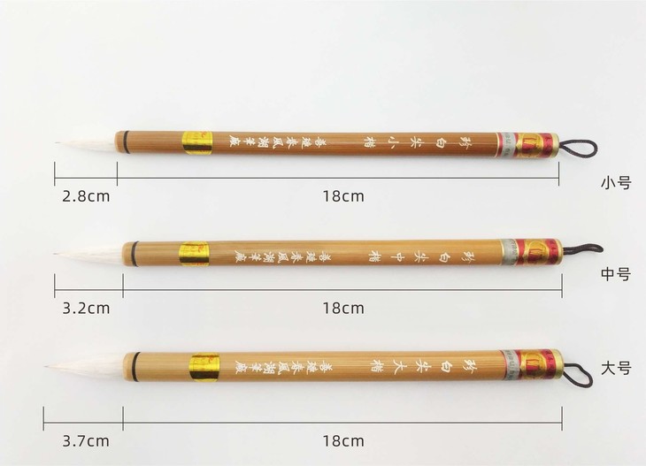 以蒙恬“兔毫为柱,羊毫为被”的理论设计,选用优质珍珠白尖和细光锋羊毛制作,是新研制的一款传统毛笔,宜书宜画。