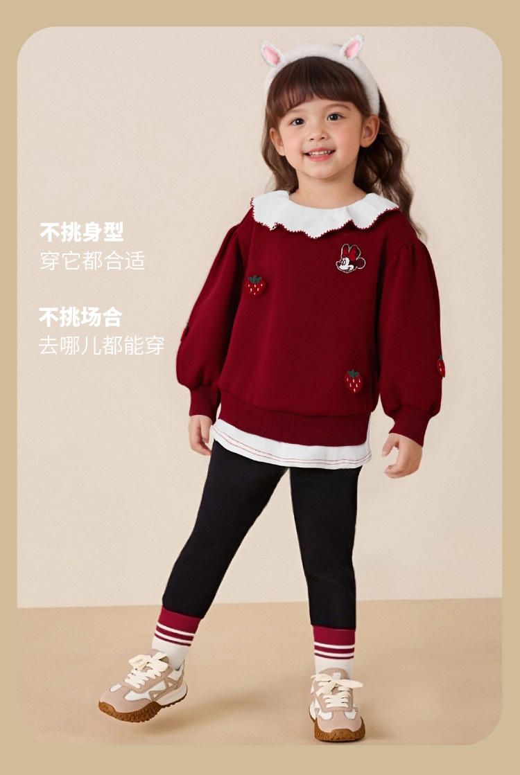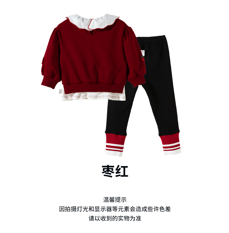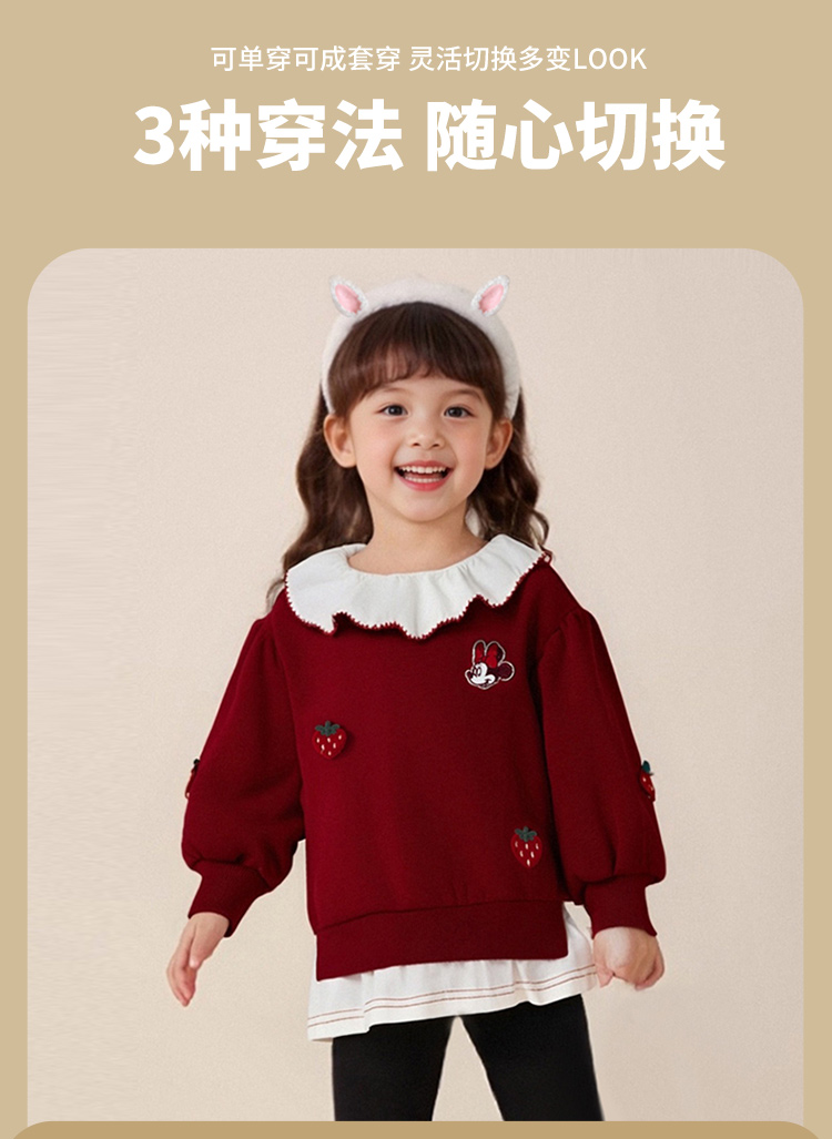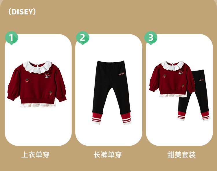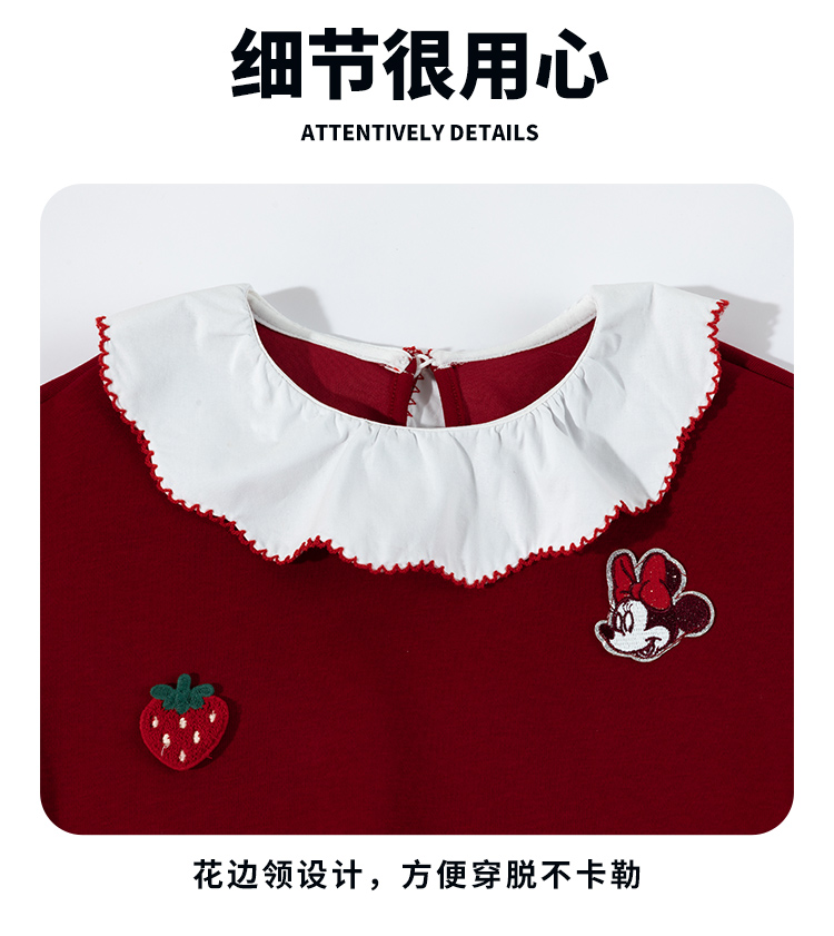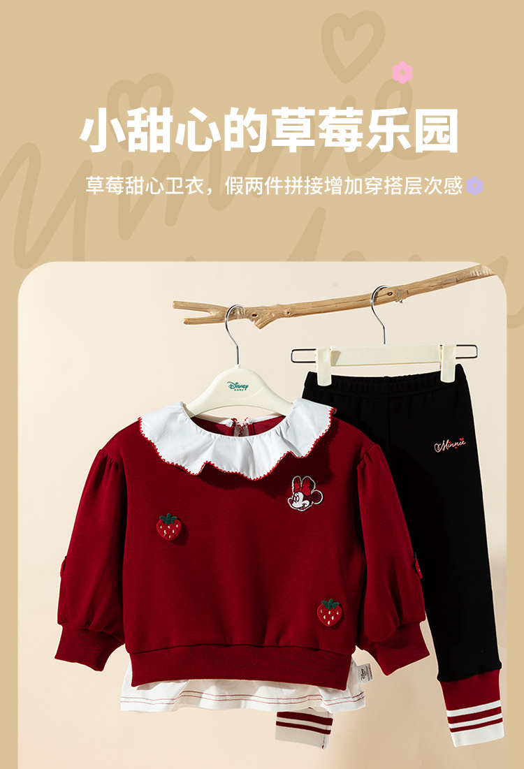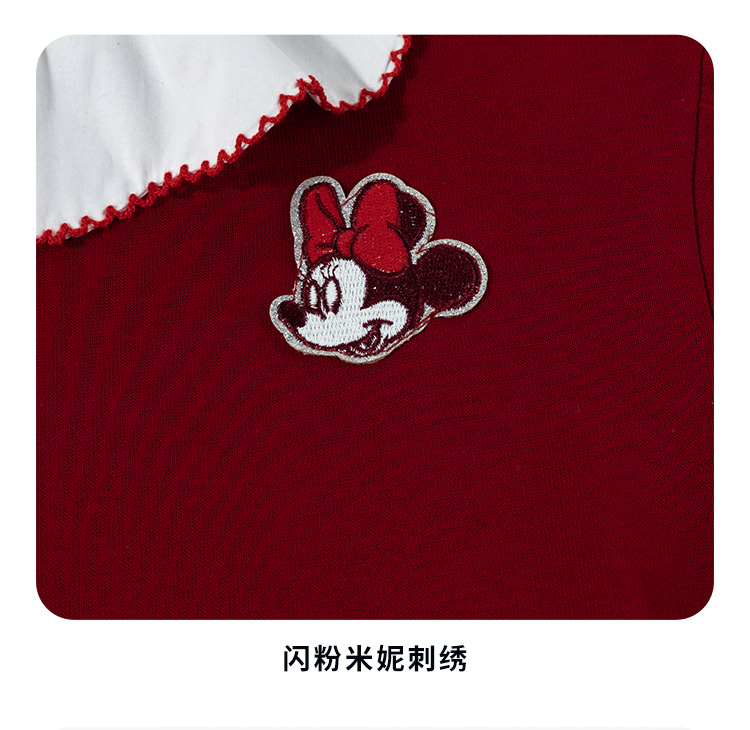 迪士尼甜心米妮套装春秋新款女童娃娃领卫衣休闲裤撞色学院风两件套ZD3ET009