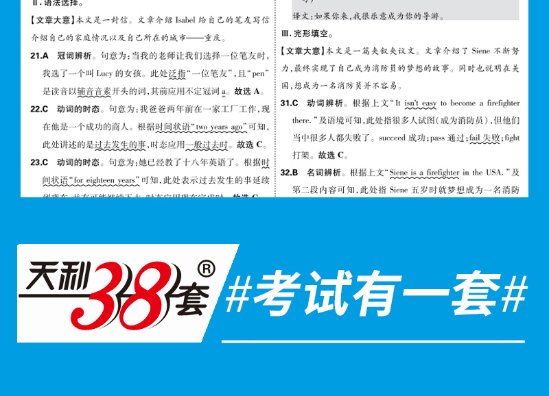 - 天利38套是由西藏人民出版社出版奉献给莘莘学子的一部精品教辅类图书,百余位一线名师倾情打造,上千所学校师生共同选择。