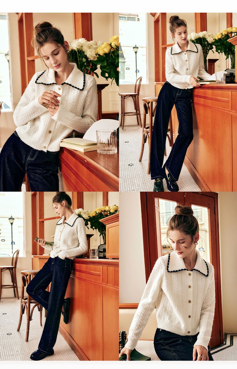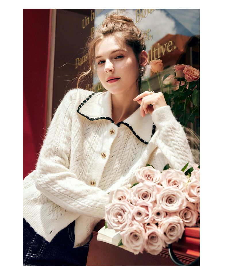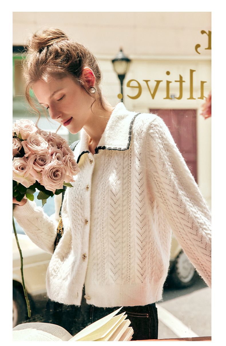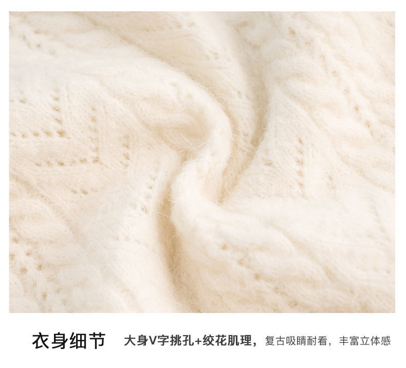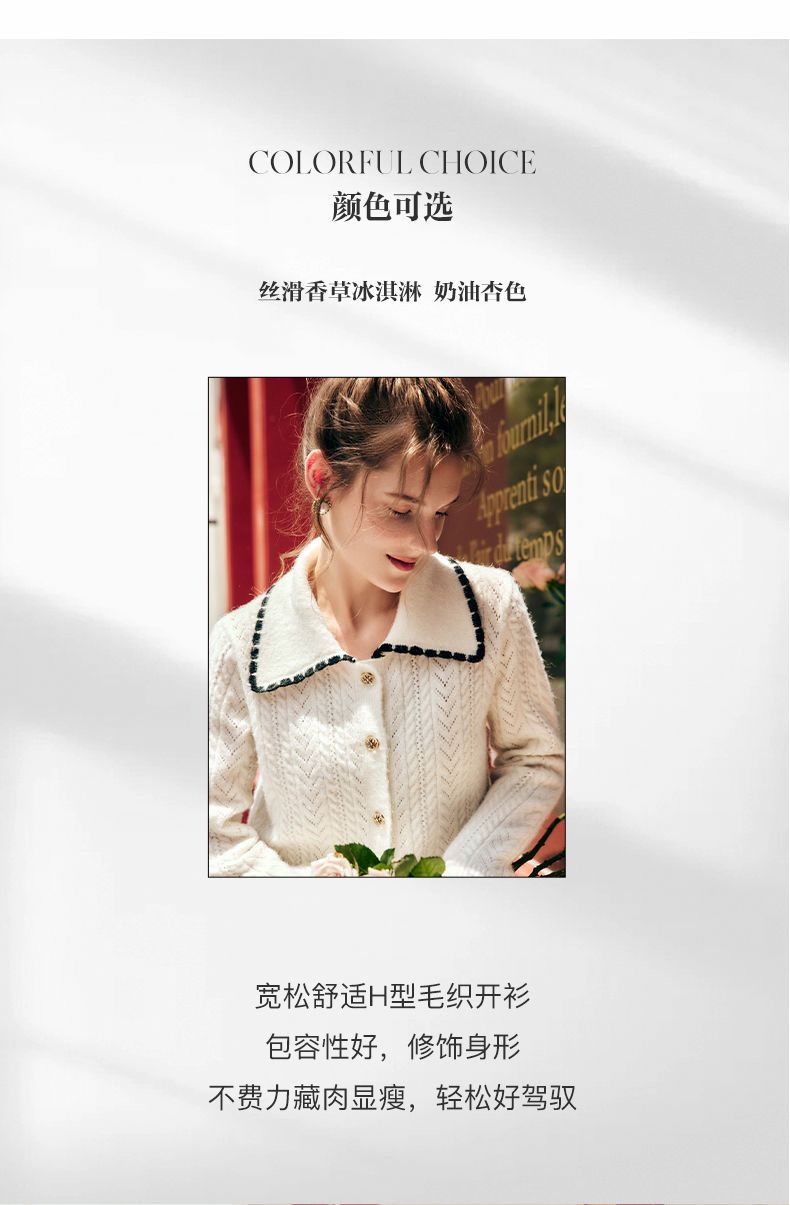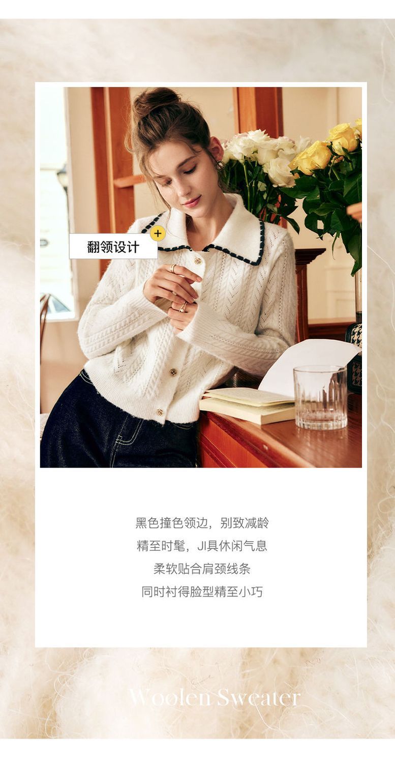 OLrain欧芮儿法式杏色毛衣女秋季2022新款慵懒风复古翻领针织开衫