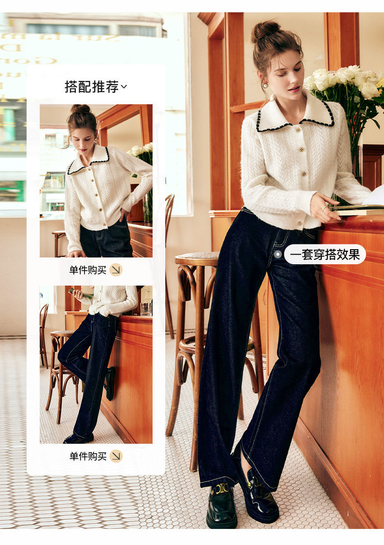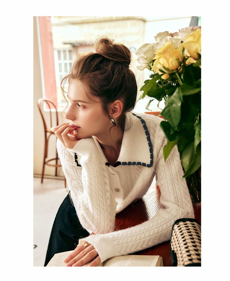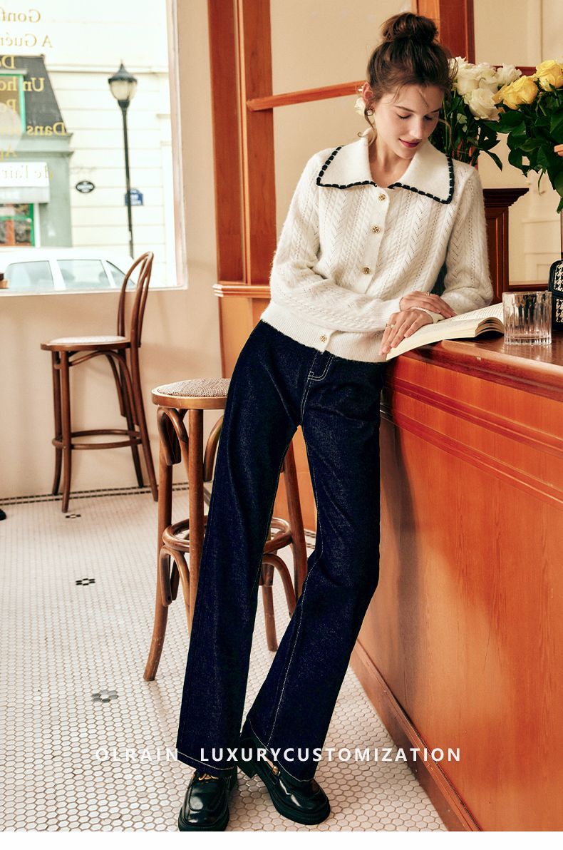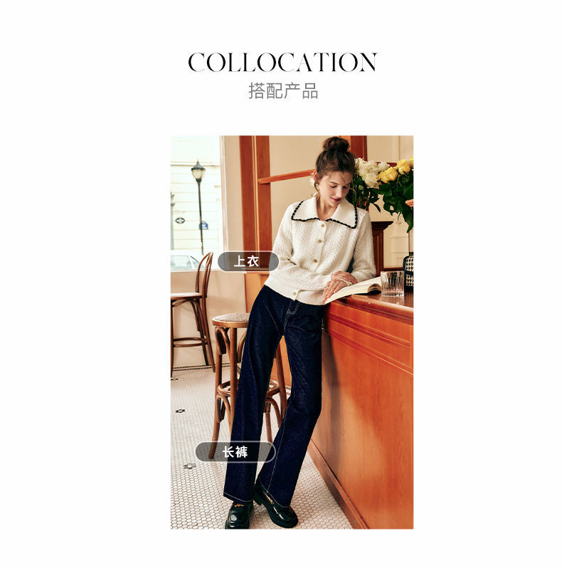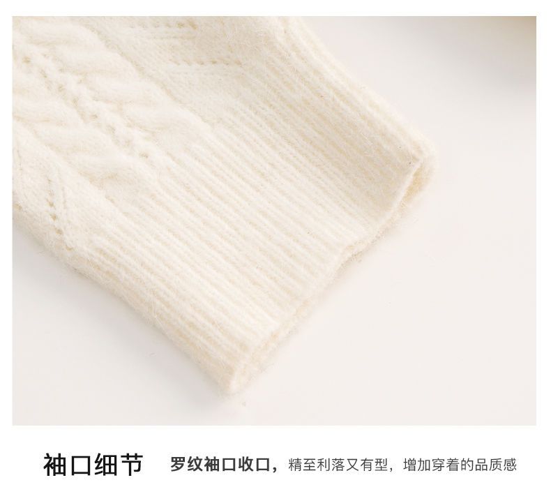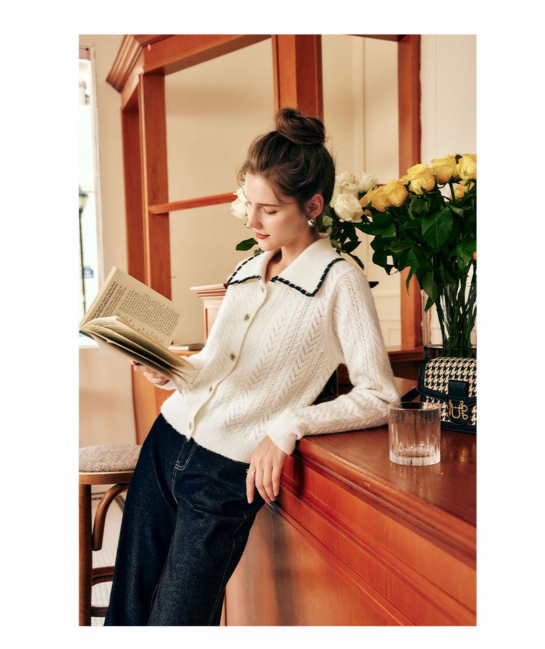 OLrain欧芮儿法式杏色毛衣女秋季2022新款慵懒风复古翻领针织开衫