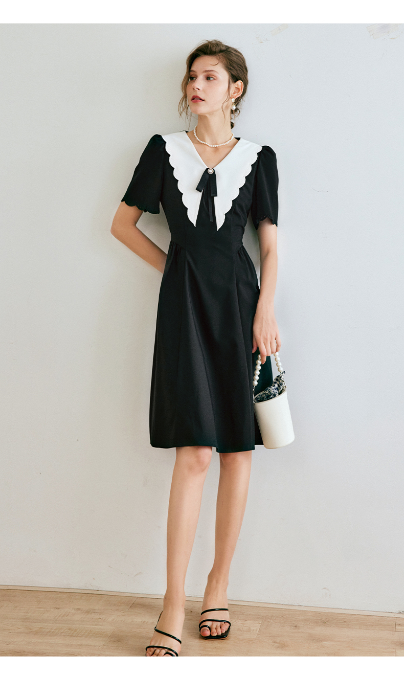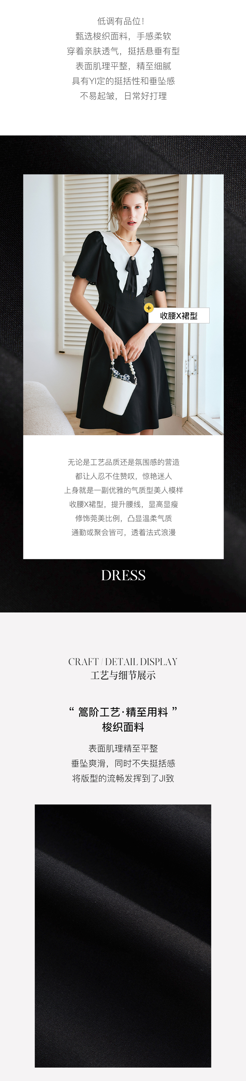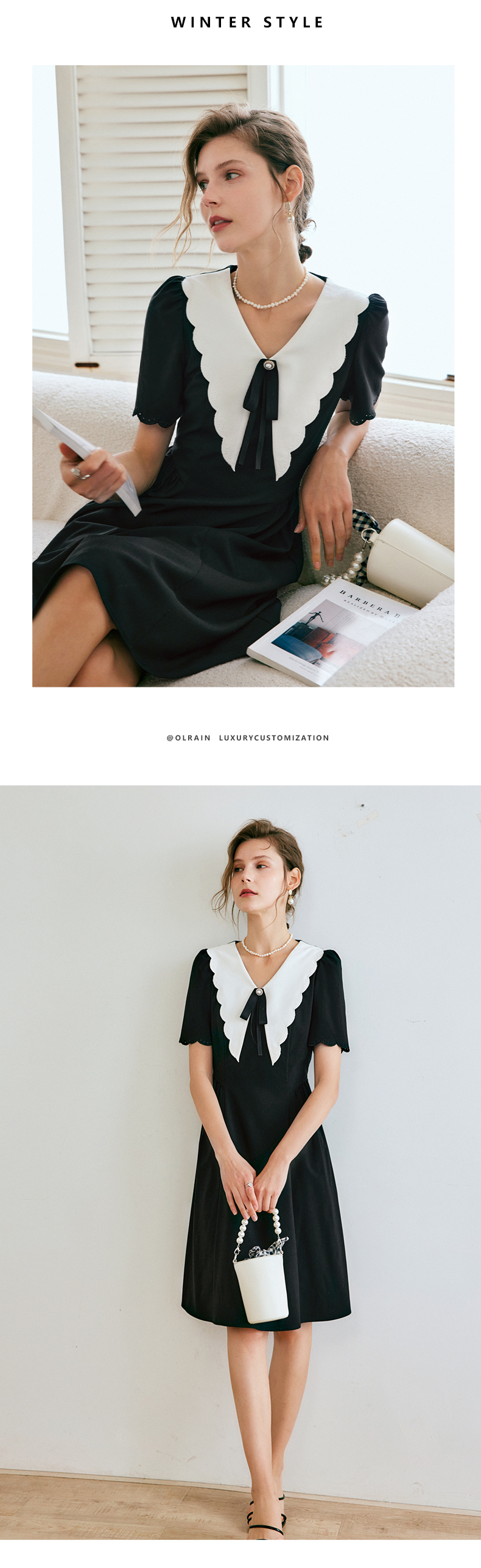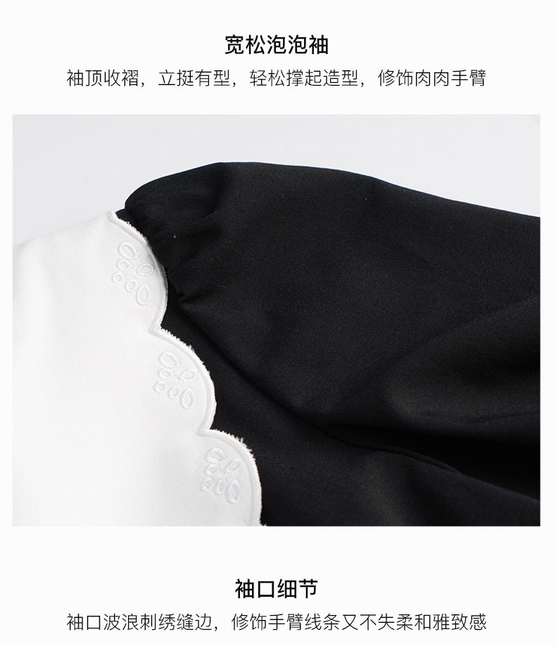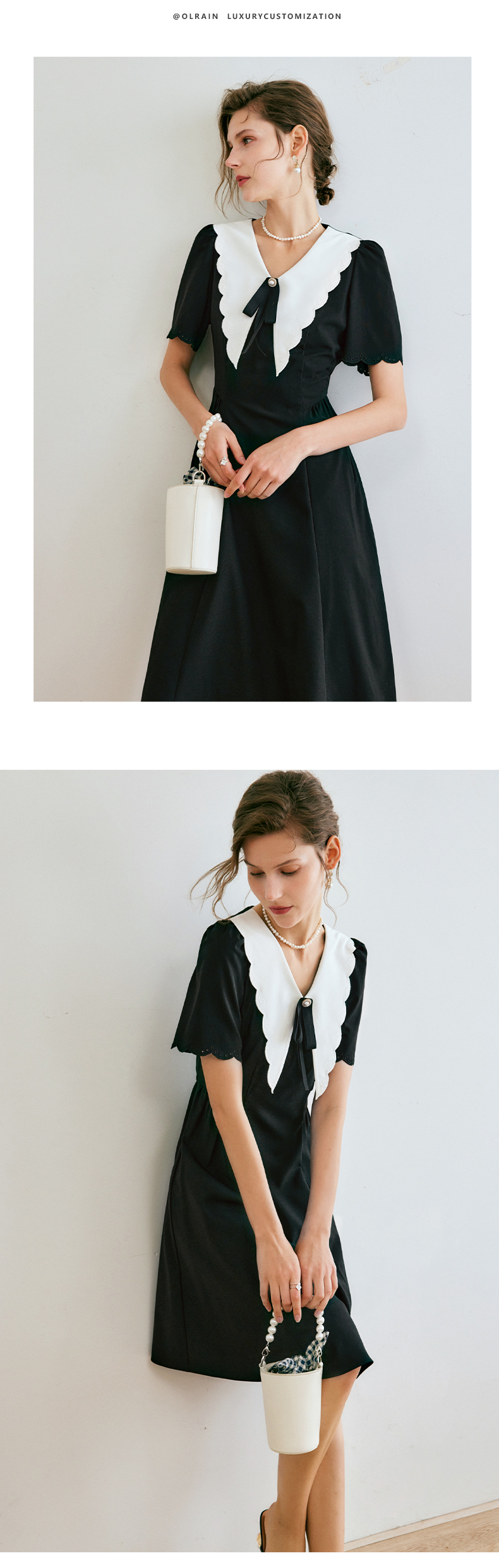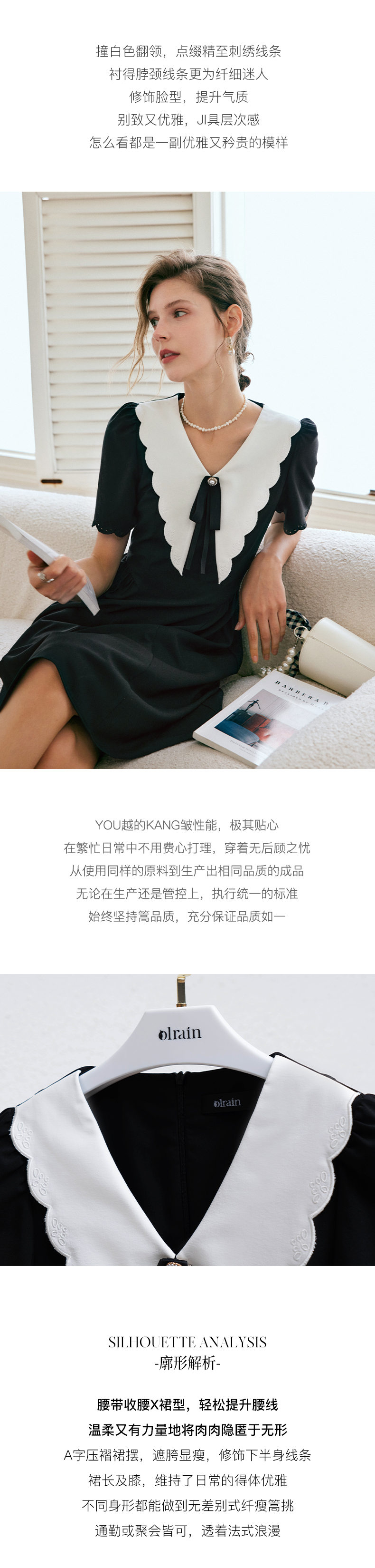 欧芮儿OLrain法式黑色赫本风连衣裙女夏季2022年新款泡泡袖裙子