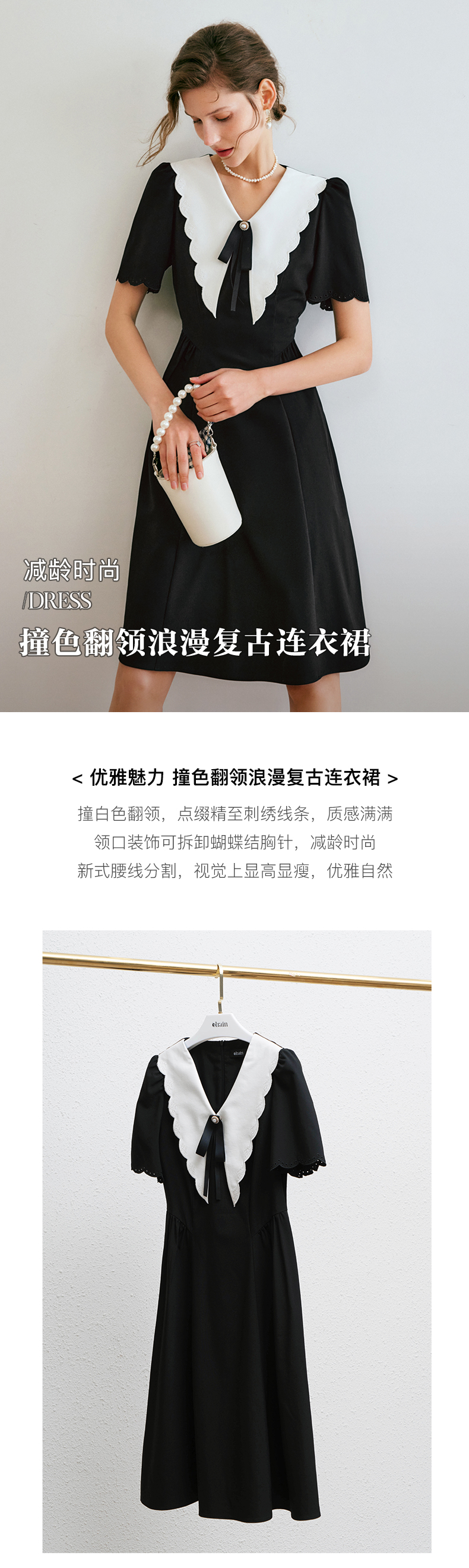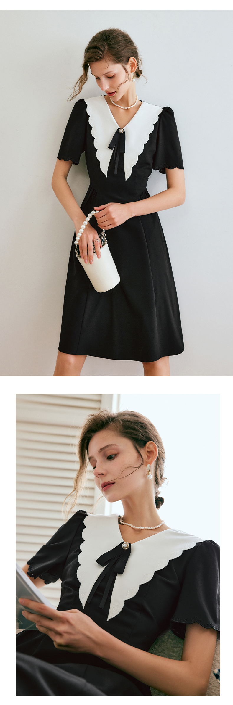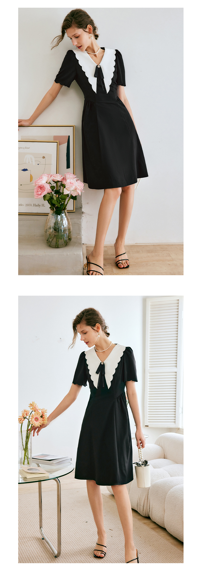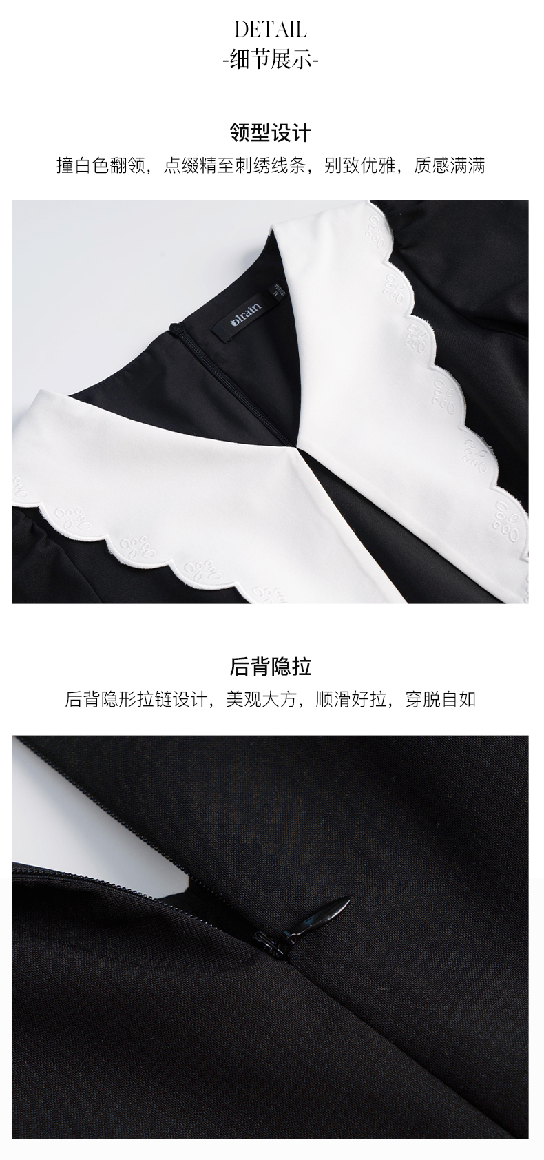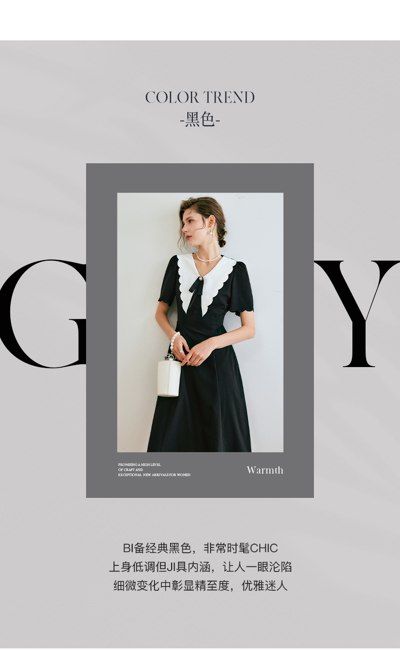 欧芮儿OLrain法式黑色赫本风连衣裙女夏季2022年新款泡泡袖裙子