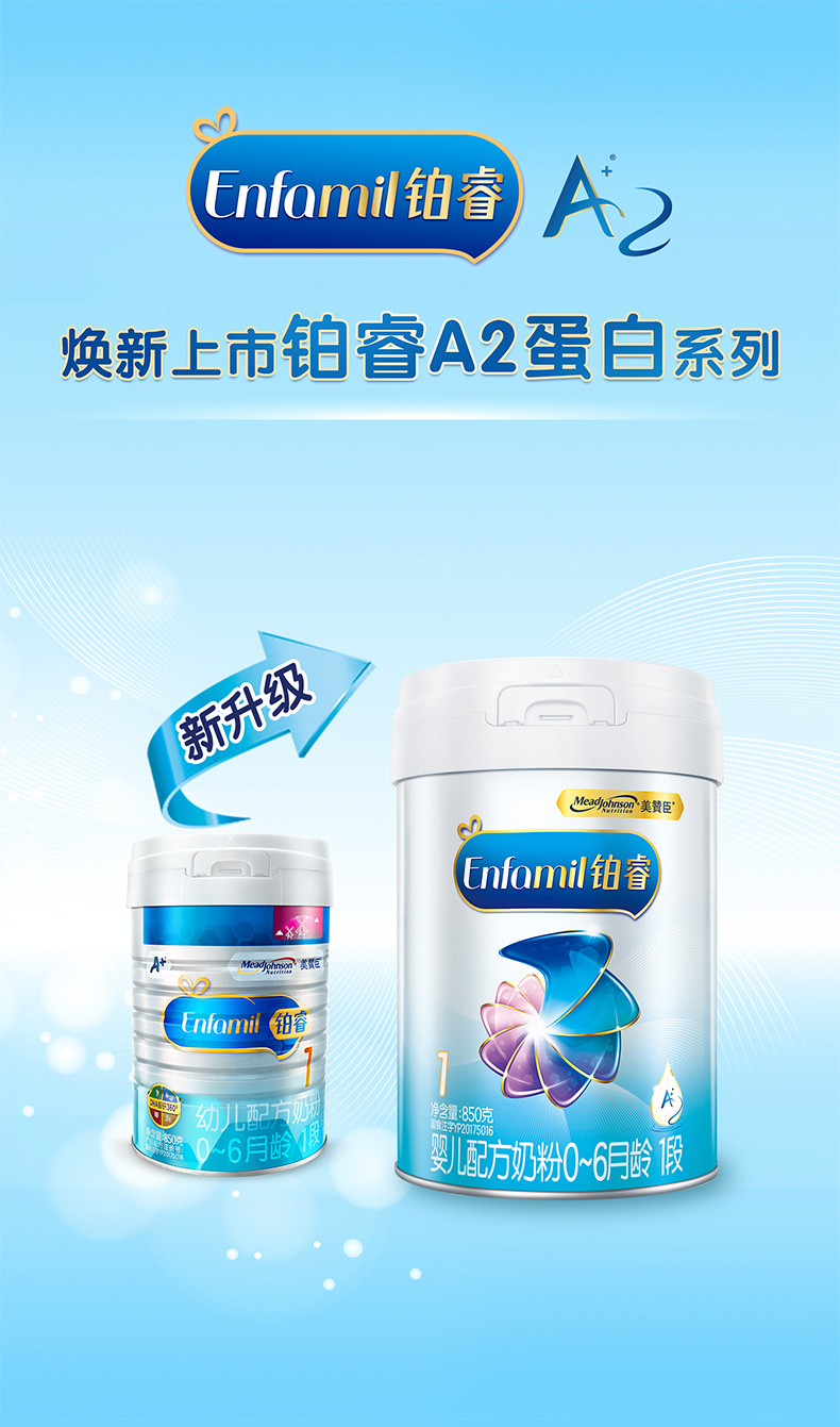 美赞臣铂睿A2蛋白婴儿配方奶粉1段850g一箱6桶