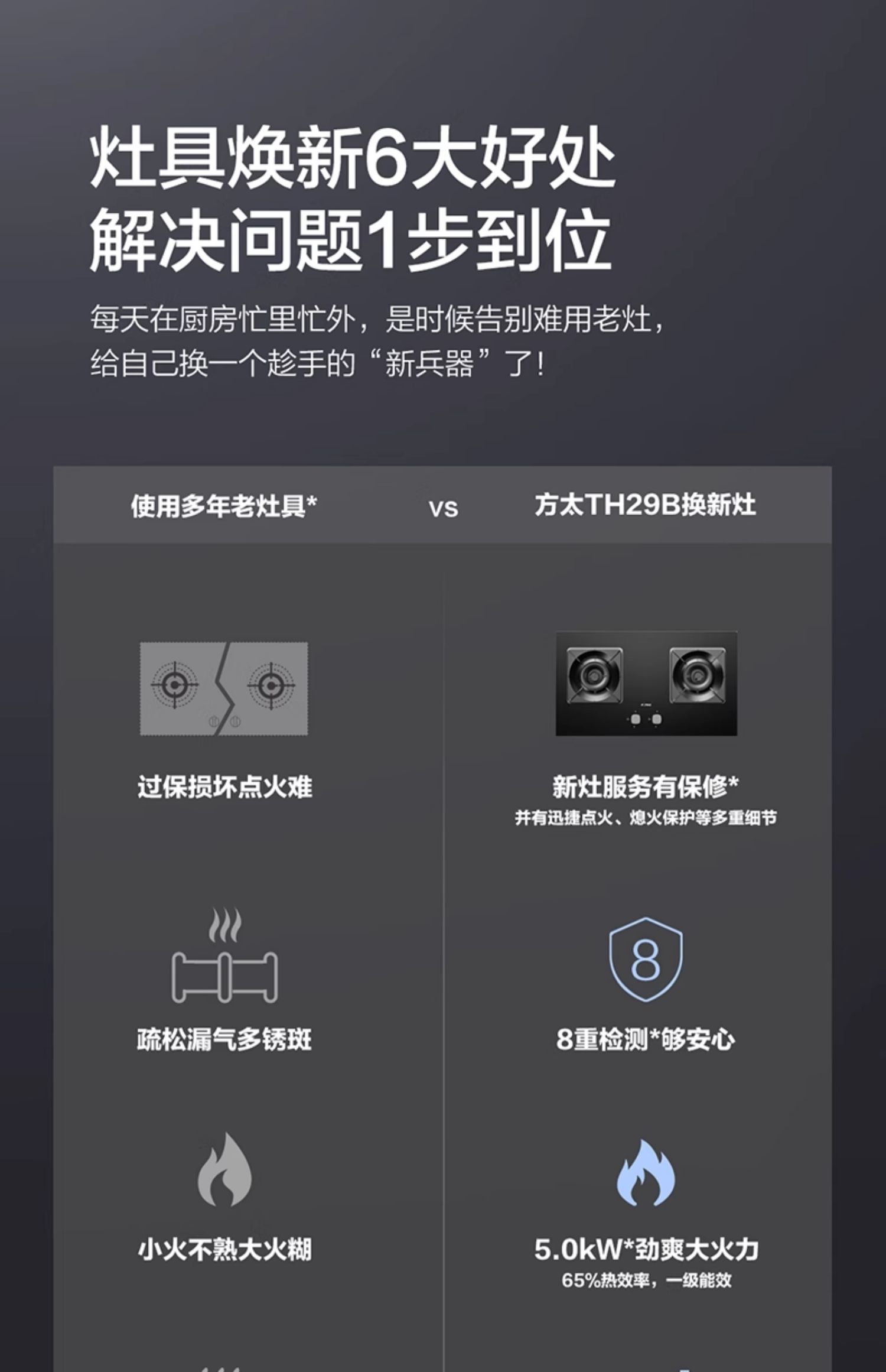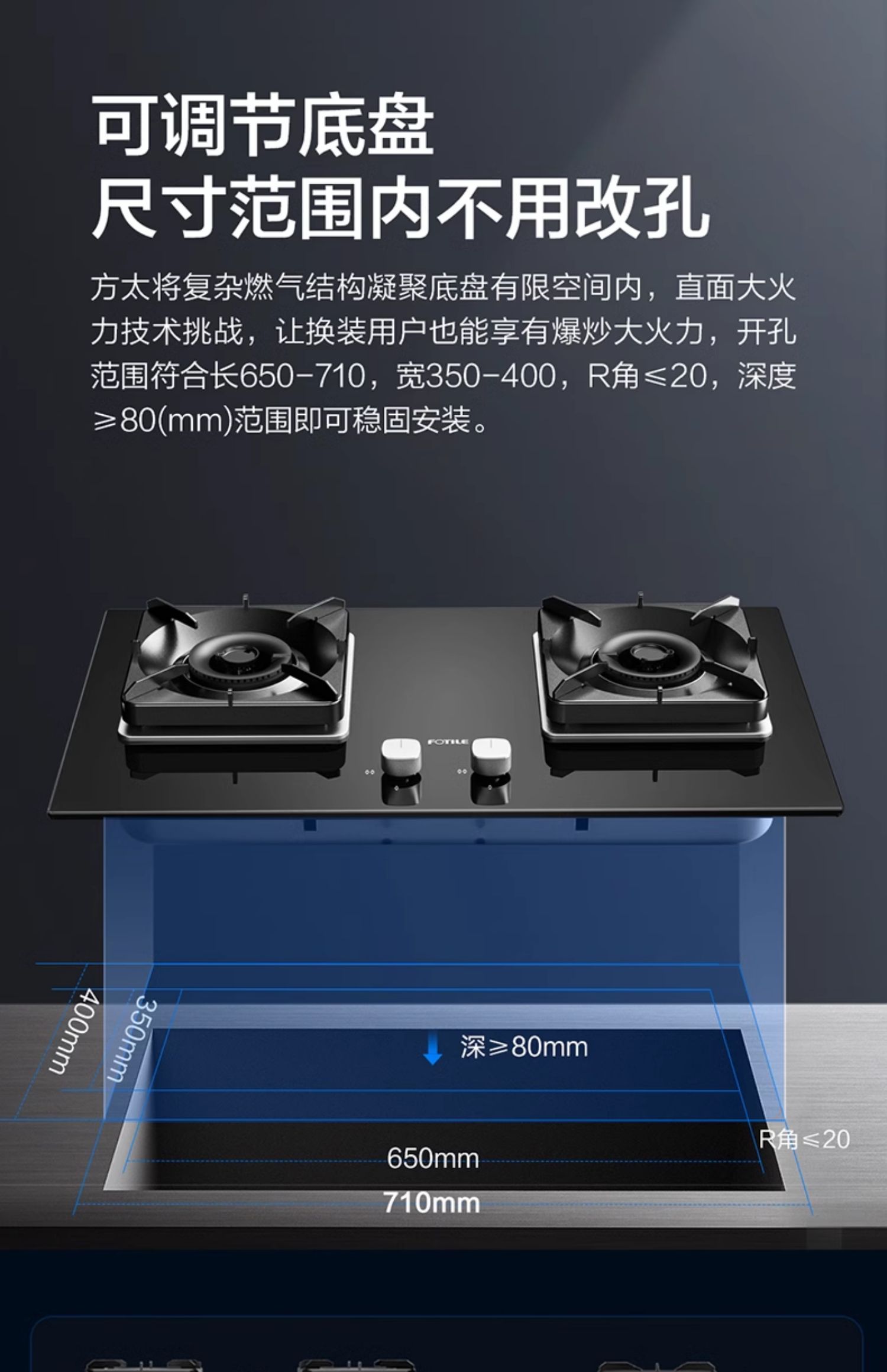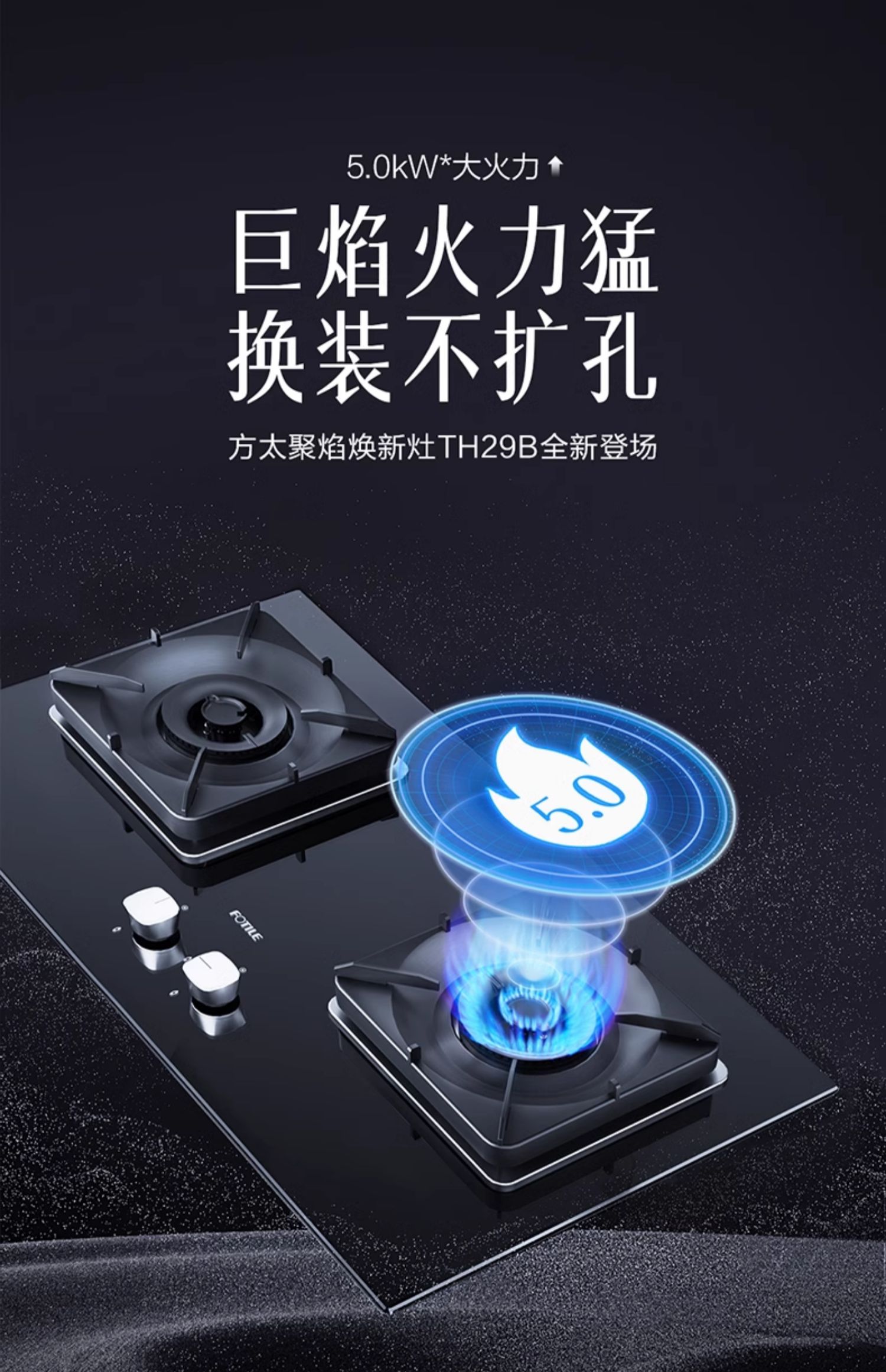 方太TH29B燃气灶台嵌两用5.0KW猛火灶 家用换装可调节底盘免扩孔天然气液化气煤气灶双灶五重防爆面板官方正品