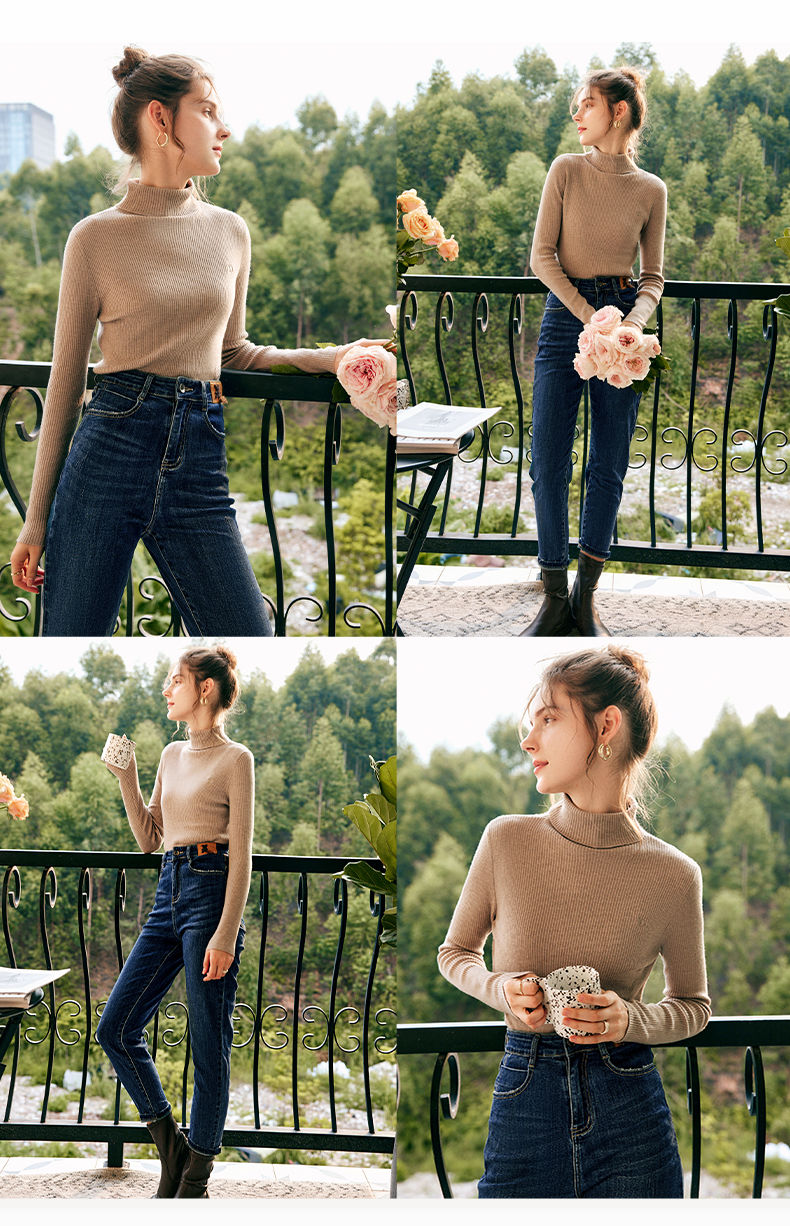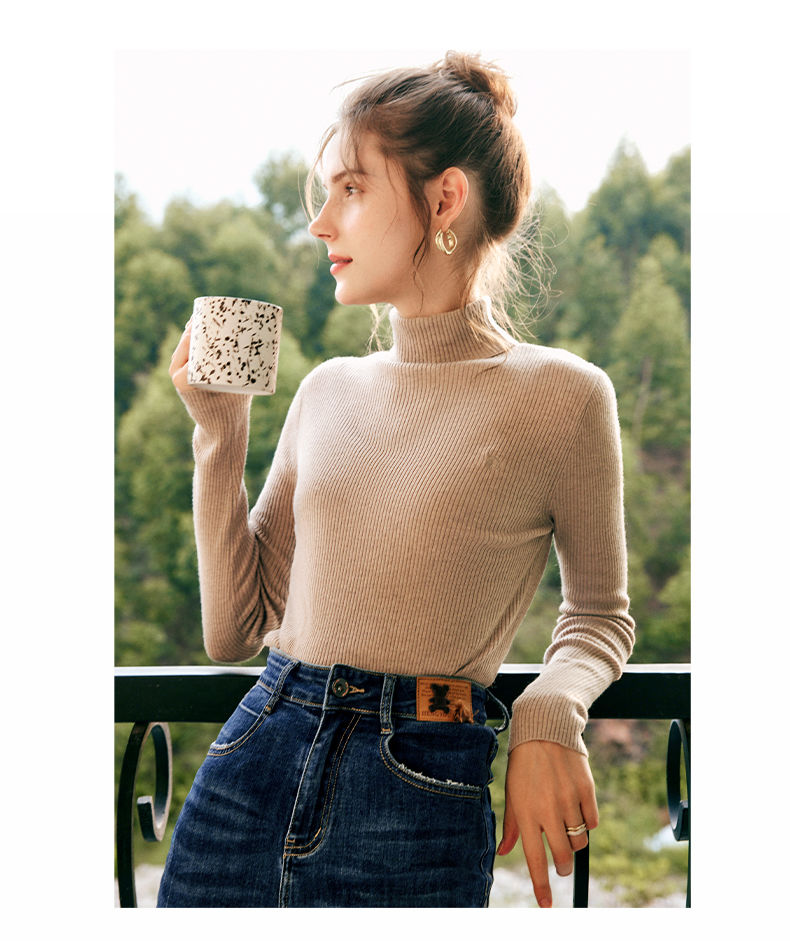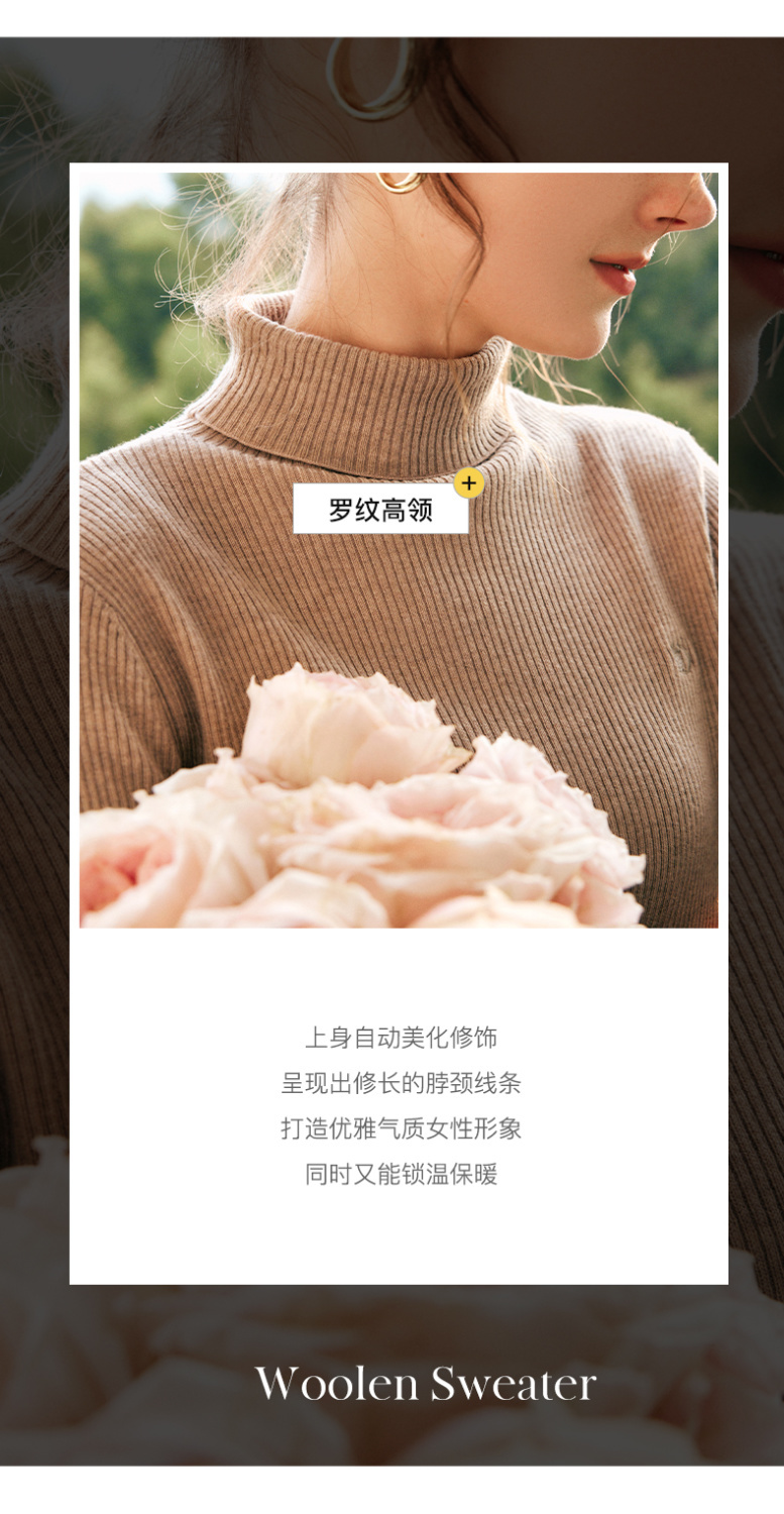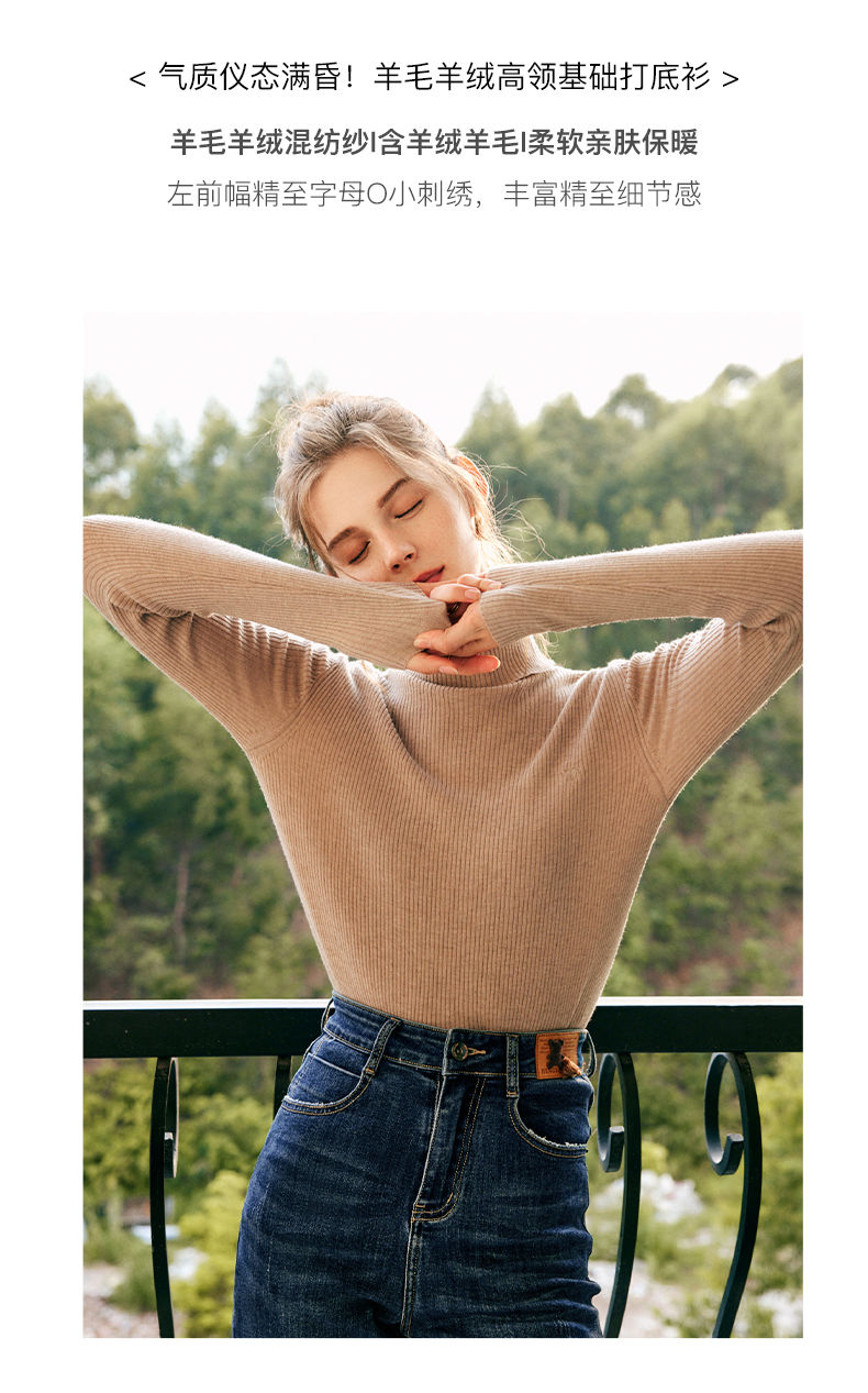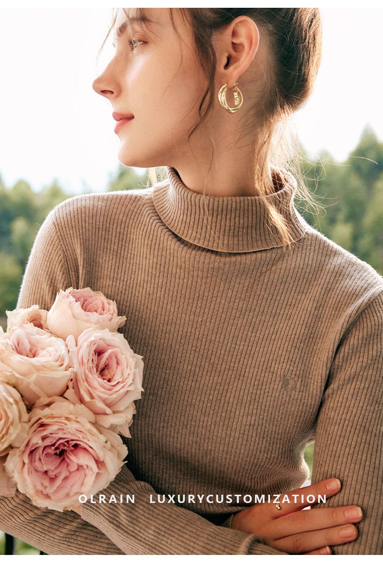 OLrain欧芮儿法式高领毛衣女秋冬2022新款修身保暖内搭打底羊毛衫