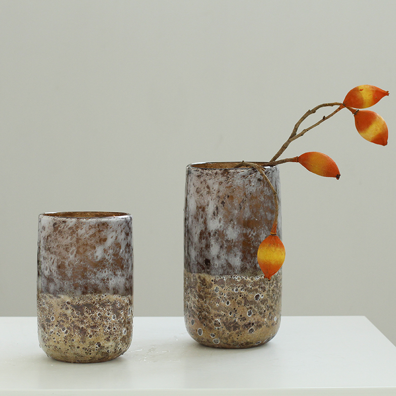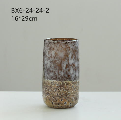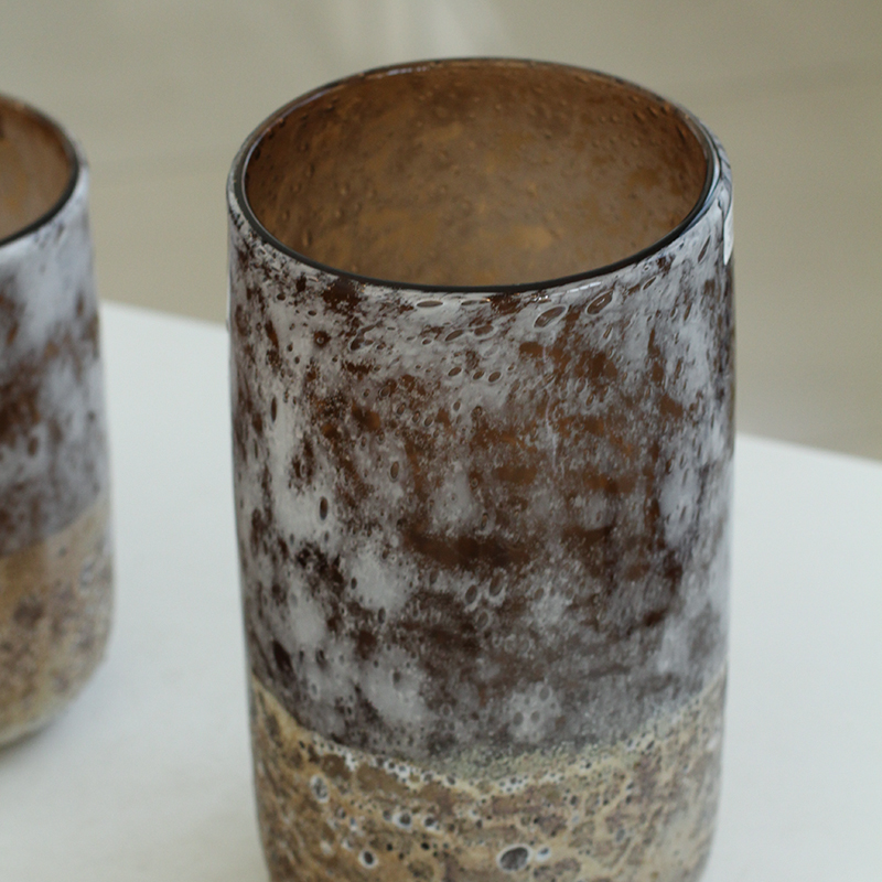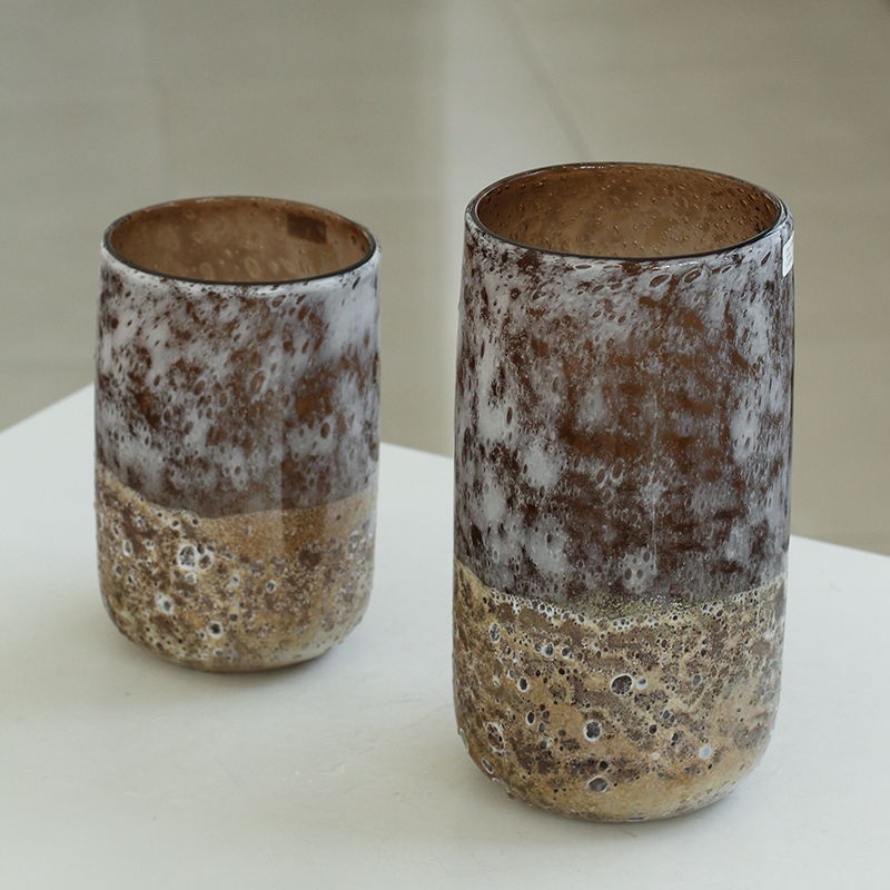 碧轩手工艺术玻璃花瓶客厅软装样板房干花插花做旧复古直筒花瓶