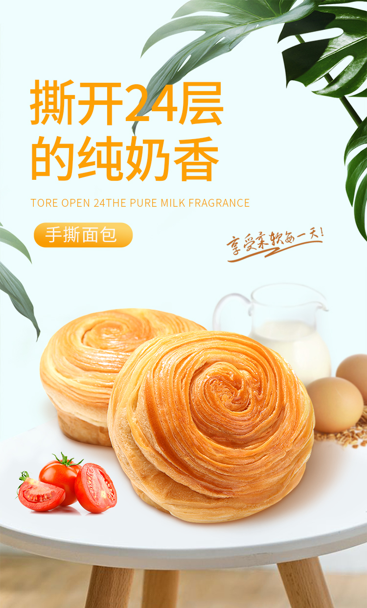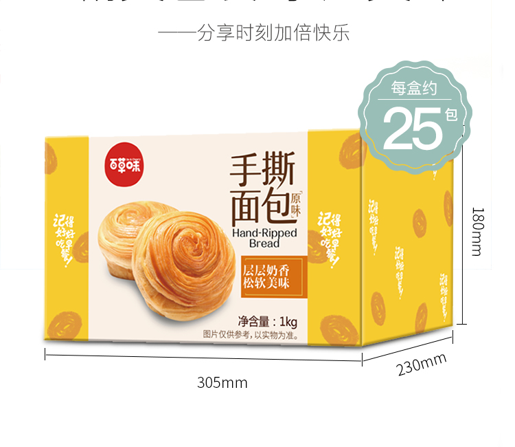 【百草味】手撕面包1kgx2箱 会呼吸的蓬松手撕面包
