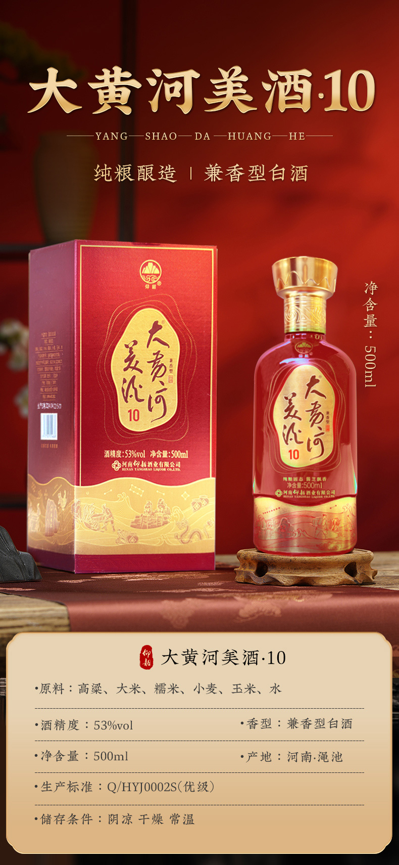 仰韶 大黄河美酒10 53度500ml 兼香型 固态纯粮 酱芝飘香