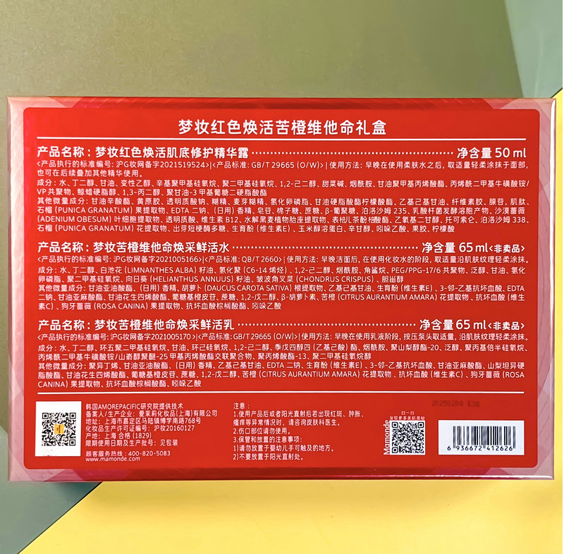 梦妆红色焕活苦橙维他命礼盒 精华露50ml + 苦橙水65ml+苦橙乳65ml