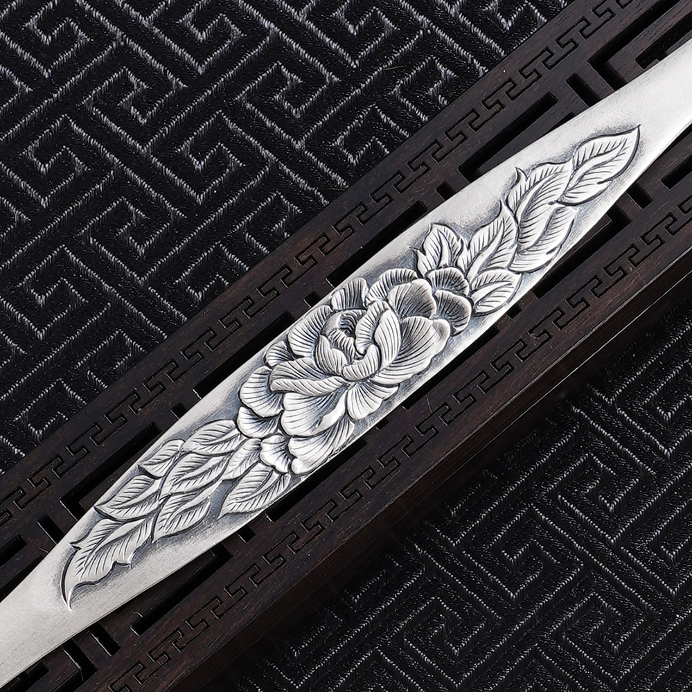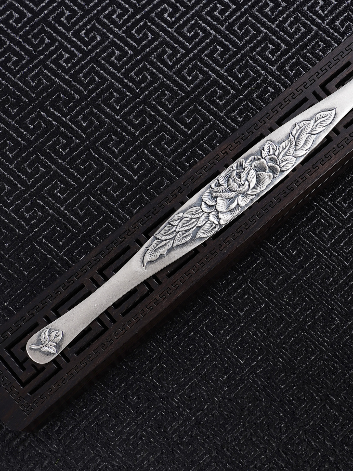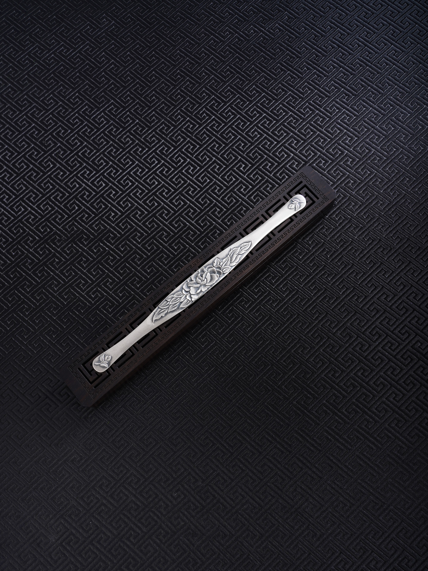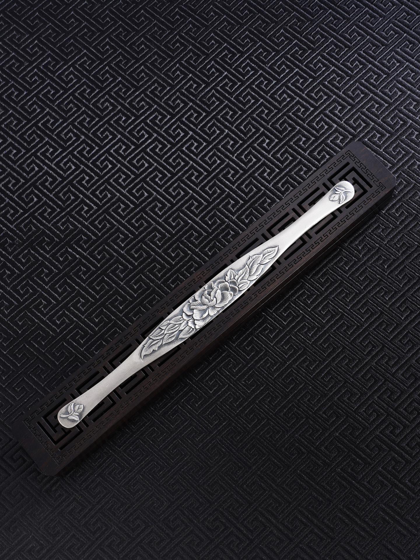 【寓意】:国色微酣,天香乍染。作品以纯银精铸,采浮雕錾刻工艺,琢牡丹纹样于腕间。花叶交缠,明暗交替,艺匠神通尽显。一镯藏尽人间富贵色,寓意世世荣华,岁岁安康。