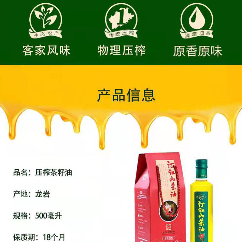 【乡村振兴】汀江山茶油 原香红色彩盒单瓶装500ml*1瓶
