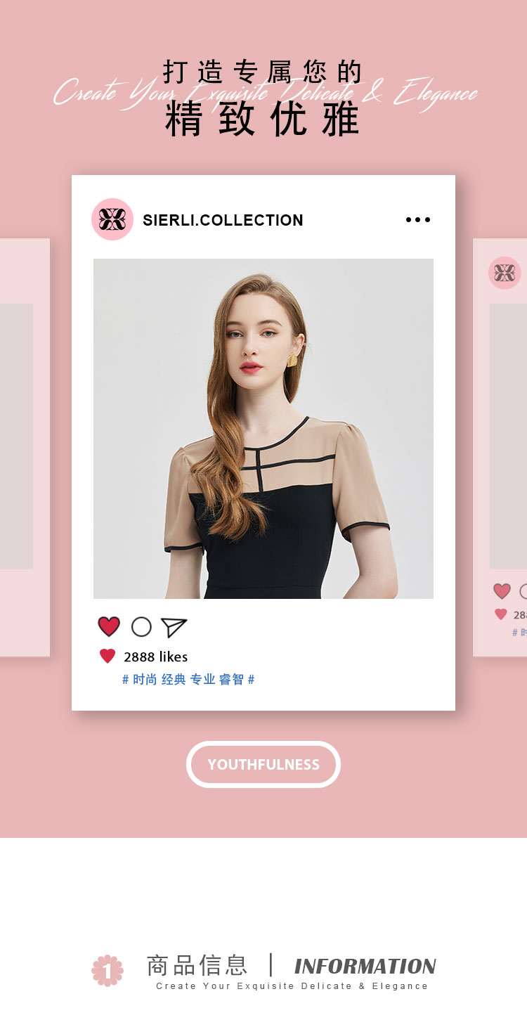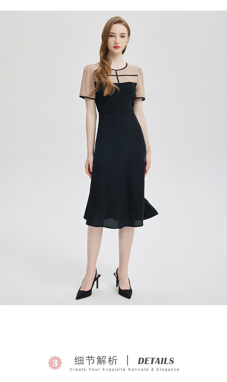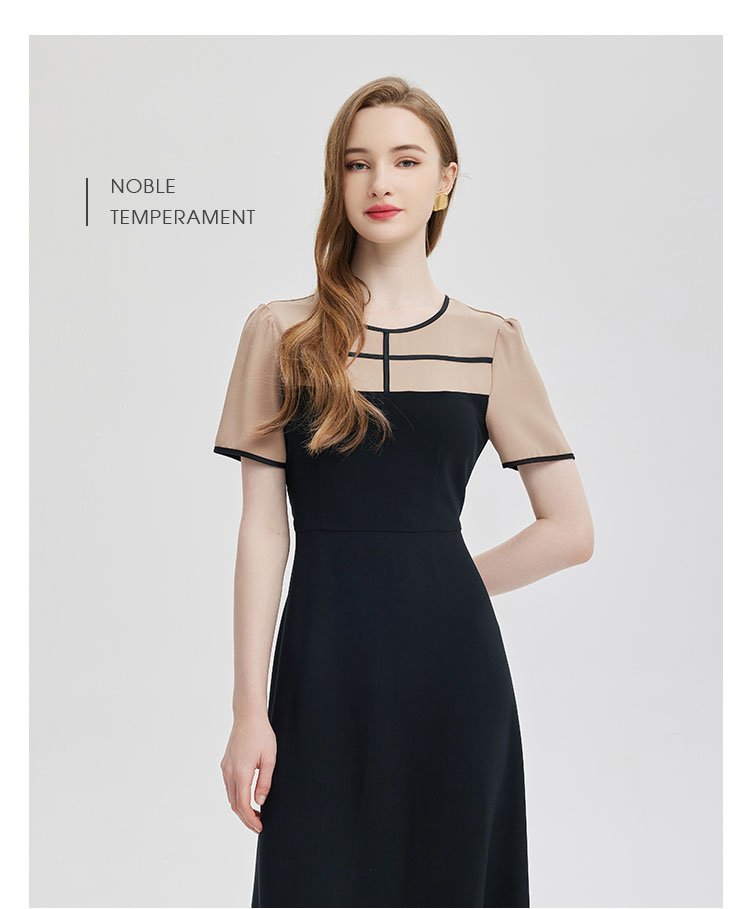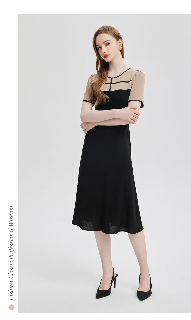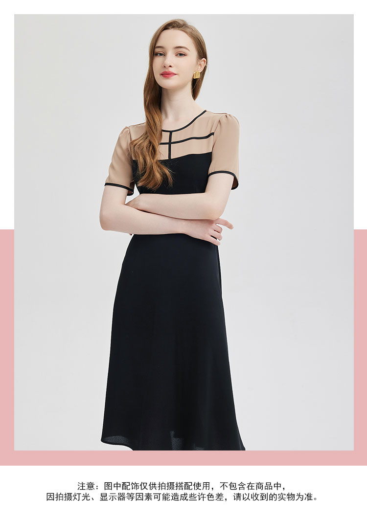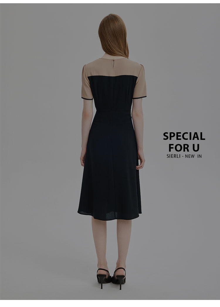 PF816斯尔丽24春夏新款撞色时尚减龄收腰放摆显瘦连衣裙