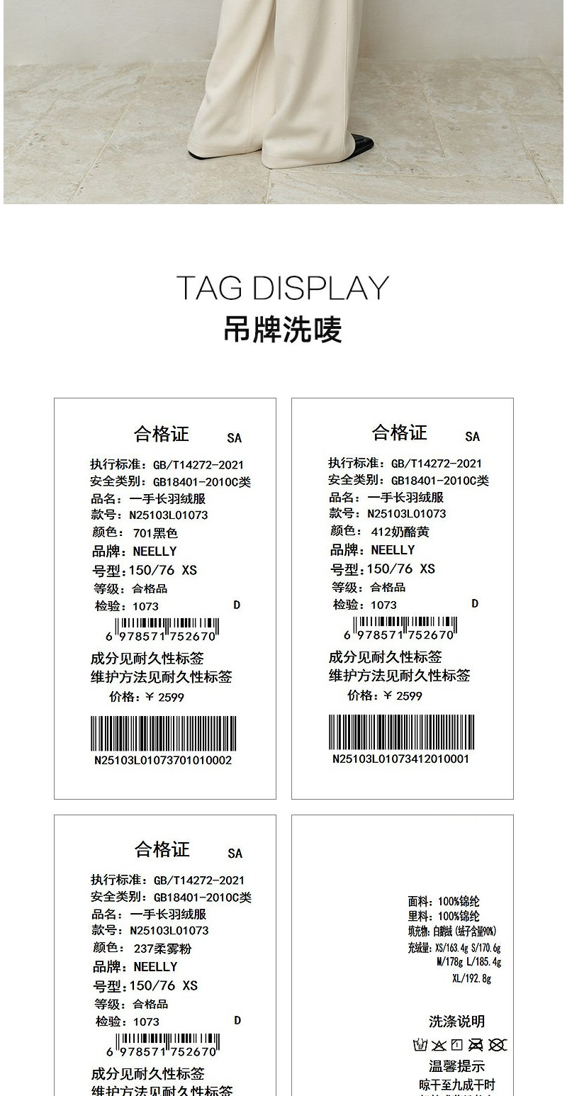 NEELLY纳俪商场同款冬新款时尚休闲短款羽绒服女百搭90白鸭绒外套N25103L01073