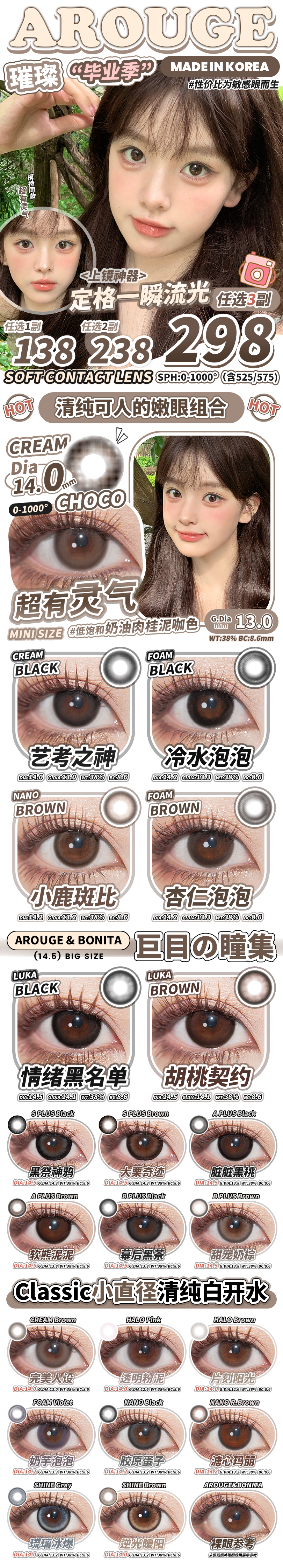 Arouge年抛活动·0-1000度(有525/575)·情绪黑名单&胡桃契约&艺考之神&完美人设&透明粉泥&片刻阳光&脏脏黑桃&软熊泥泥&琉璃冰爆&逆光暖阳&溏心玛丽&小鹿斑比&冷水泡泡&杏仁泡泡
