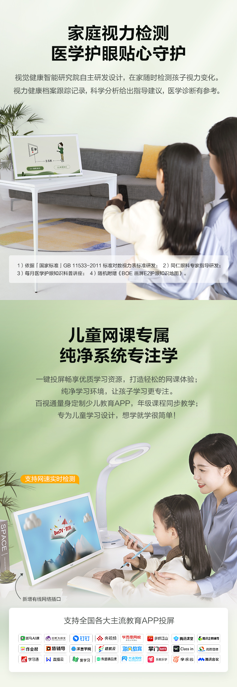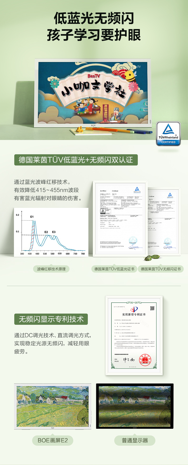 京东方BOE画屏E2/E1S类纸护眼网课学习屏低蓝光无频闪在线教育网课显示器21.5英寸