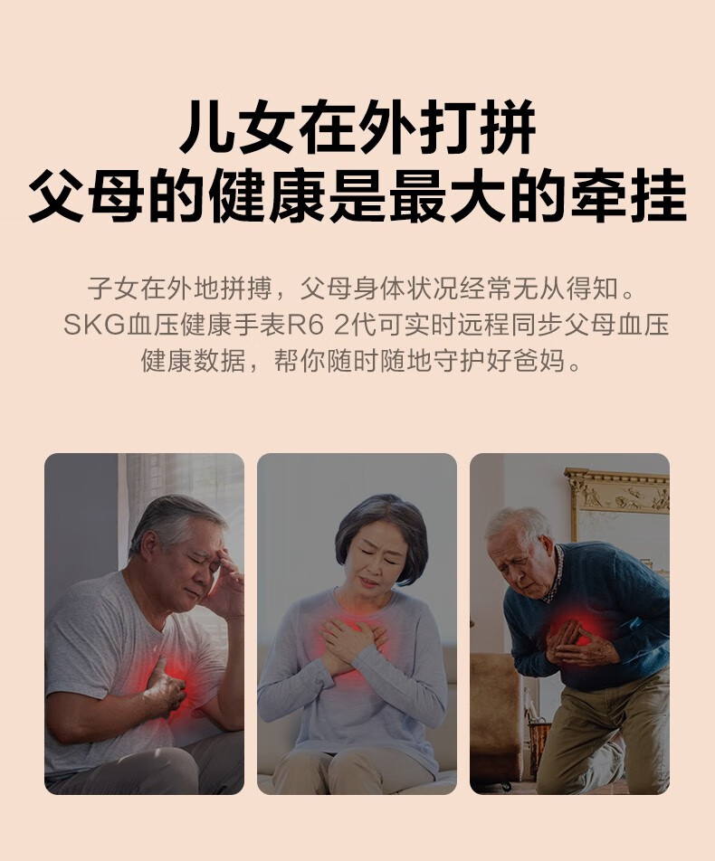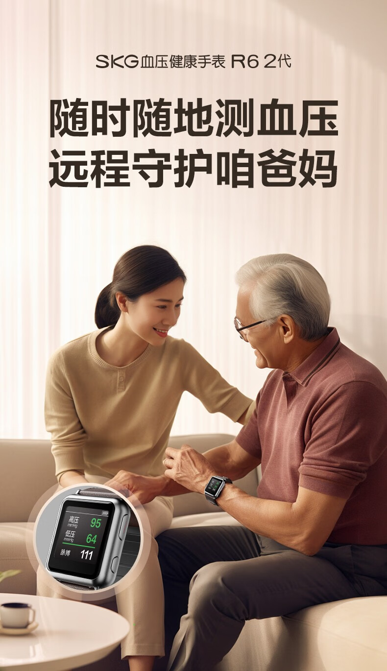 SKG智能手表心电记录仪血氧检测长续航防尘防水运动健康监测多功能高端生日实用礼品送父母长辈礼物 血压健康手表 R6 2代