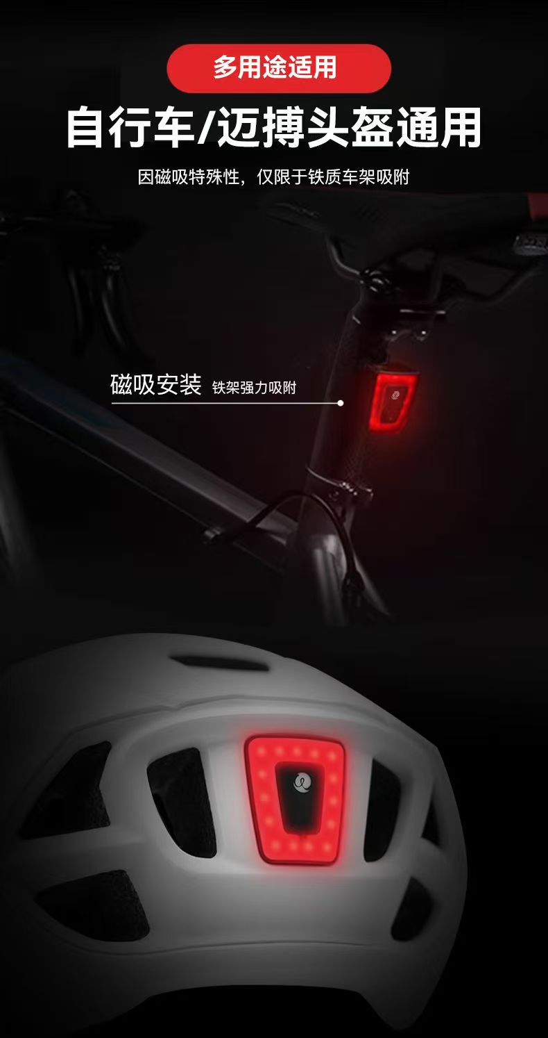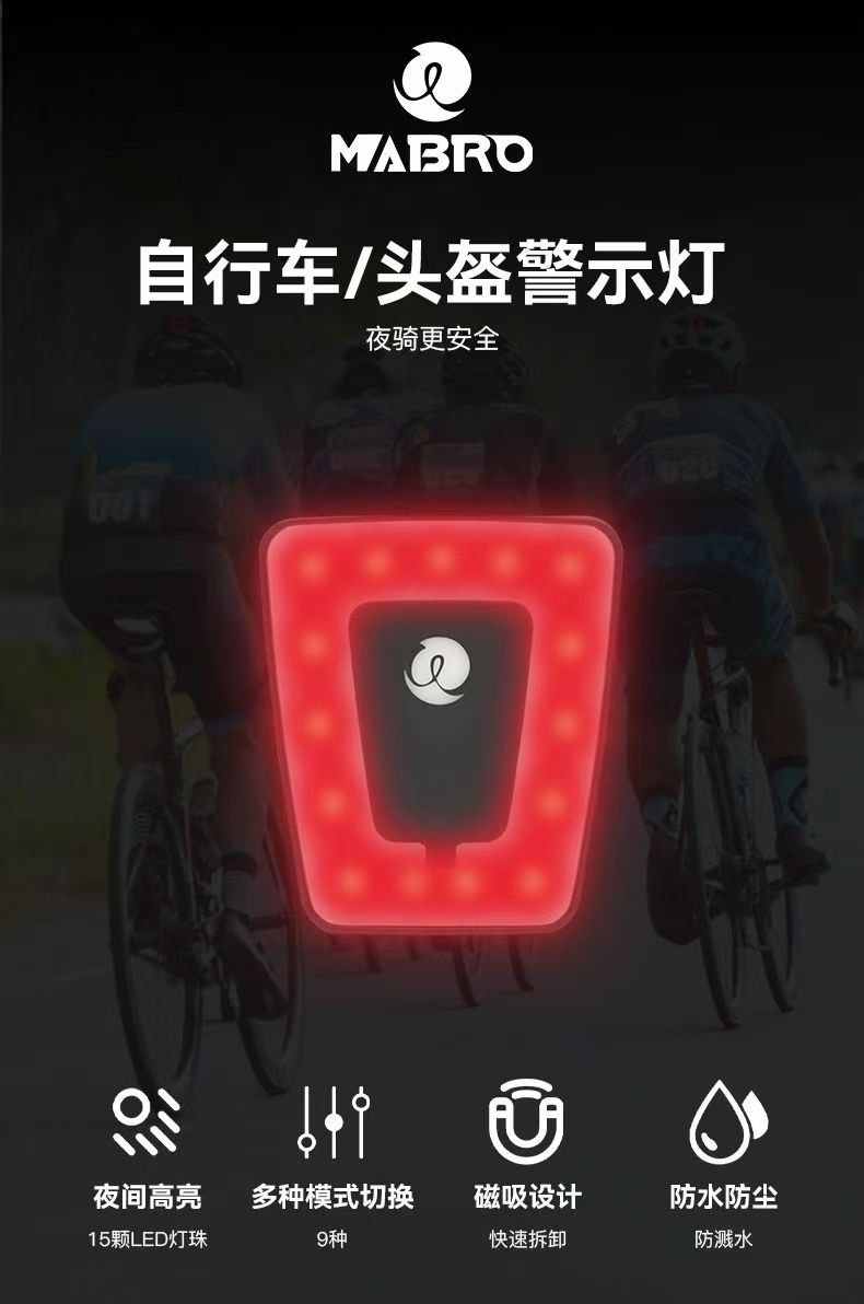 MABRO迈搏头盔磁吸尾灯自行车夜骑警示灯USB充电高亮防水骑行装备