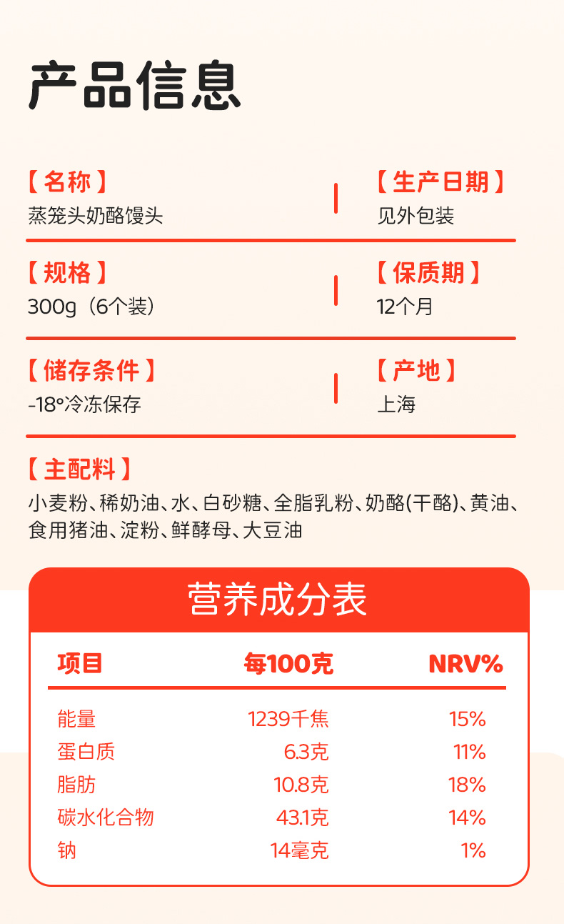 蒸笼头原制奶酪馒头活动组合装(50g*6只/袋)