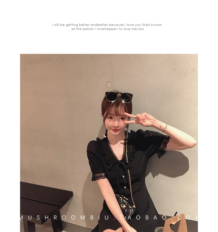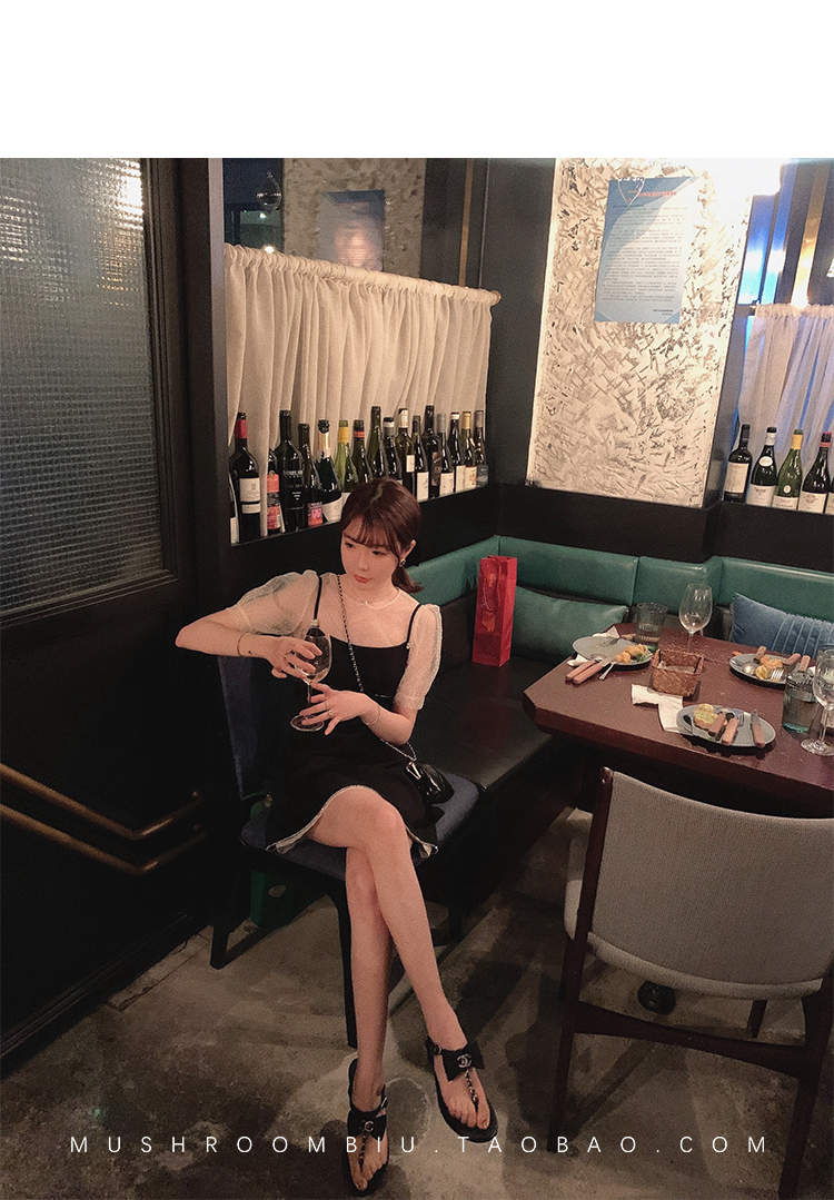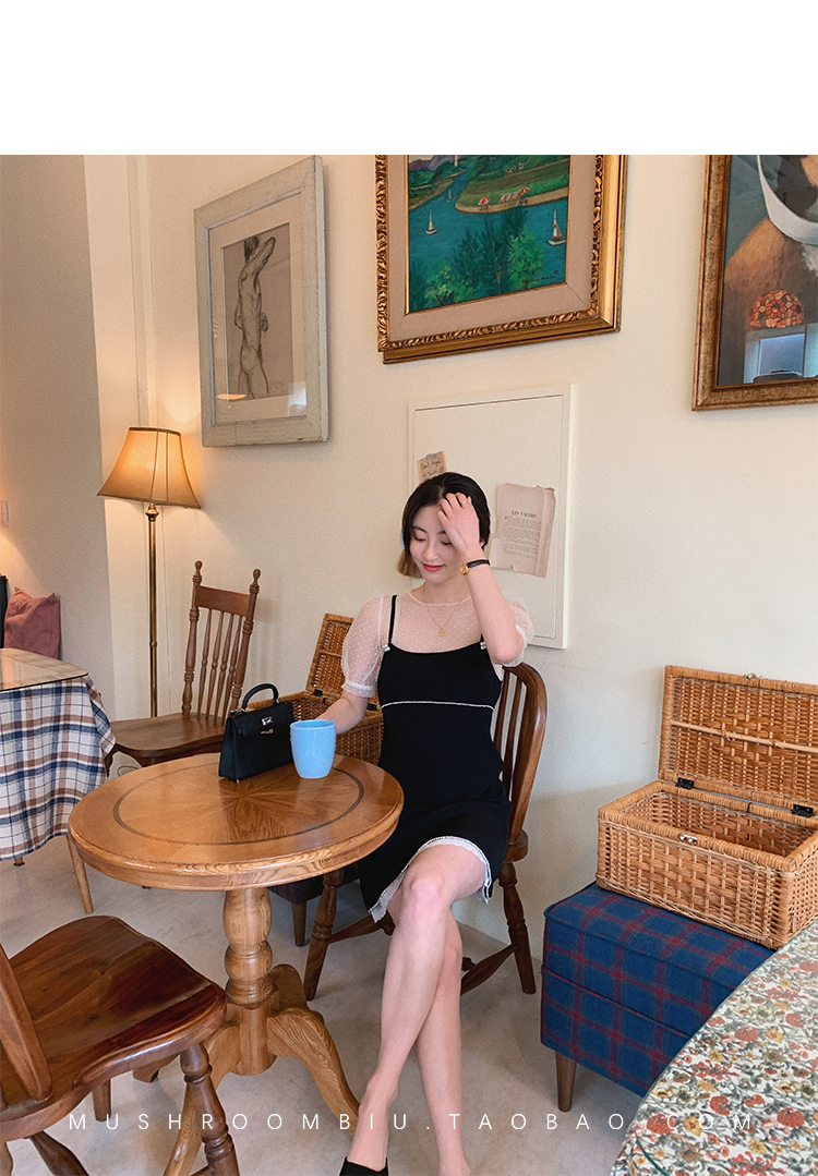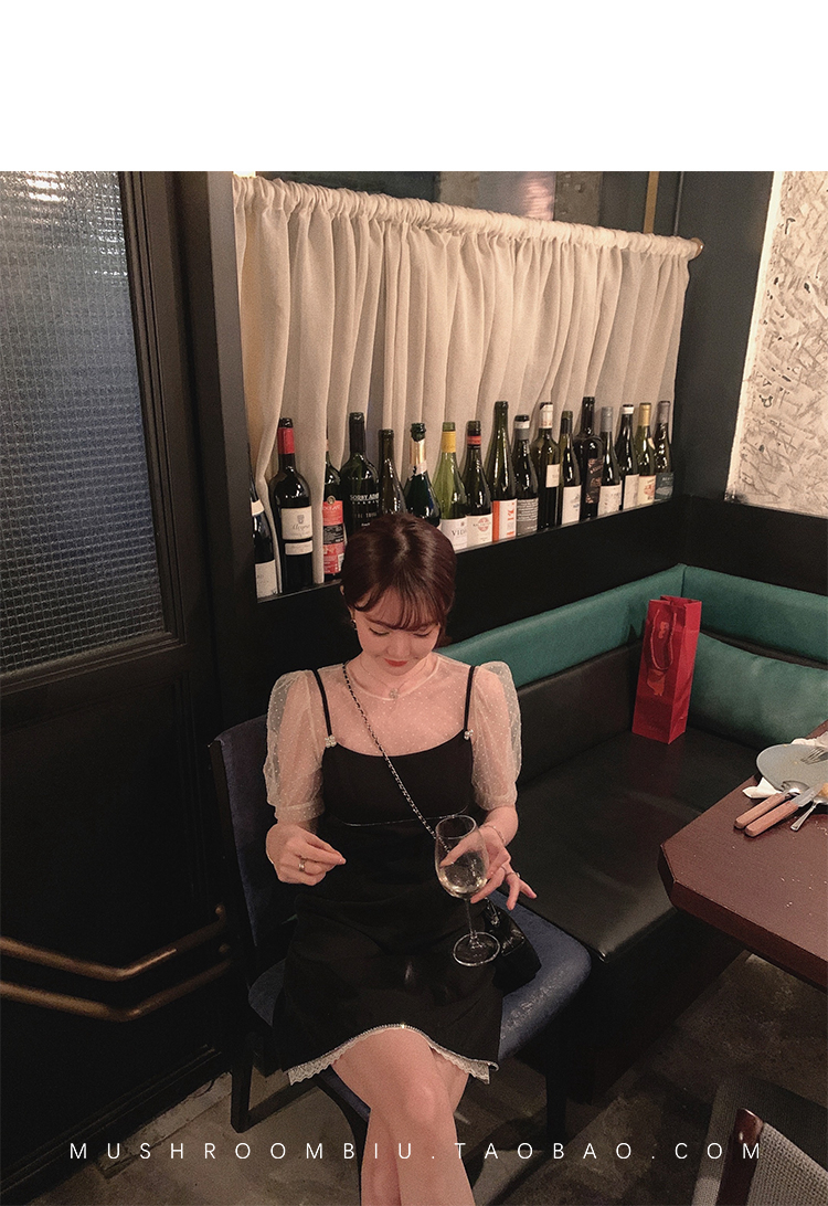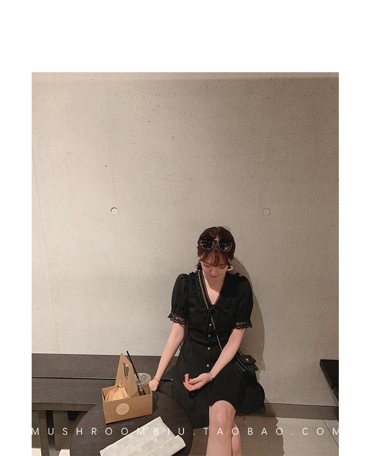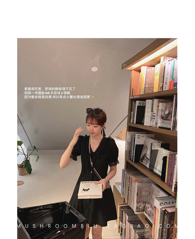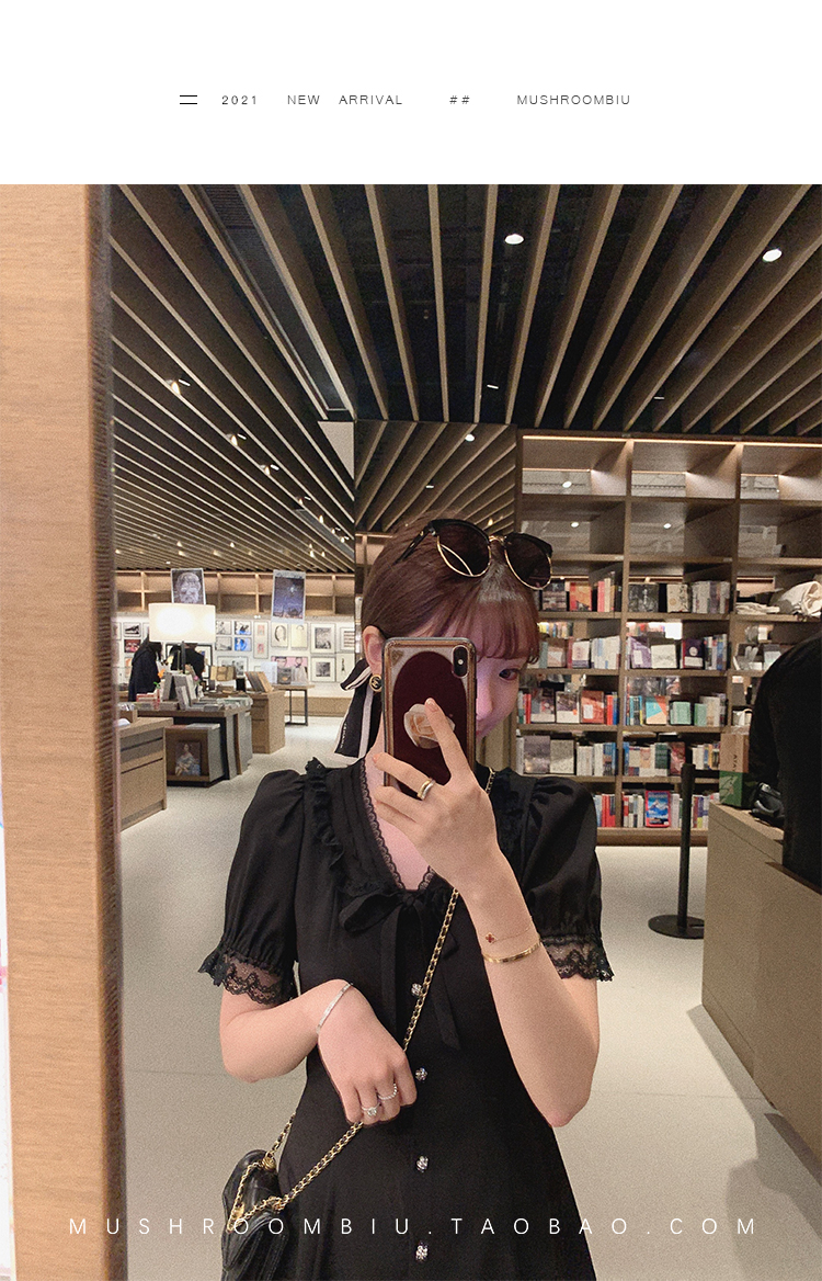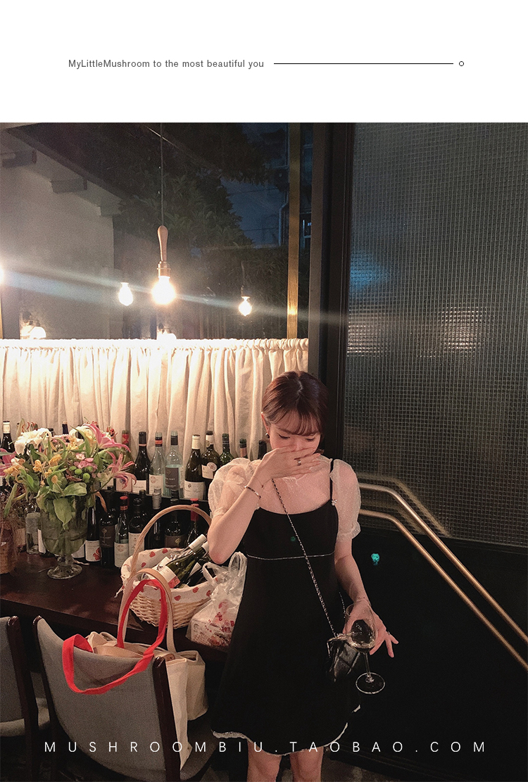 【金蘑菇菇 wonderland小黑裙】设计感小众连衣裙约会裙减龄少女