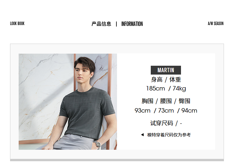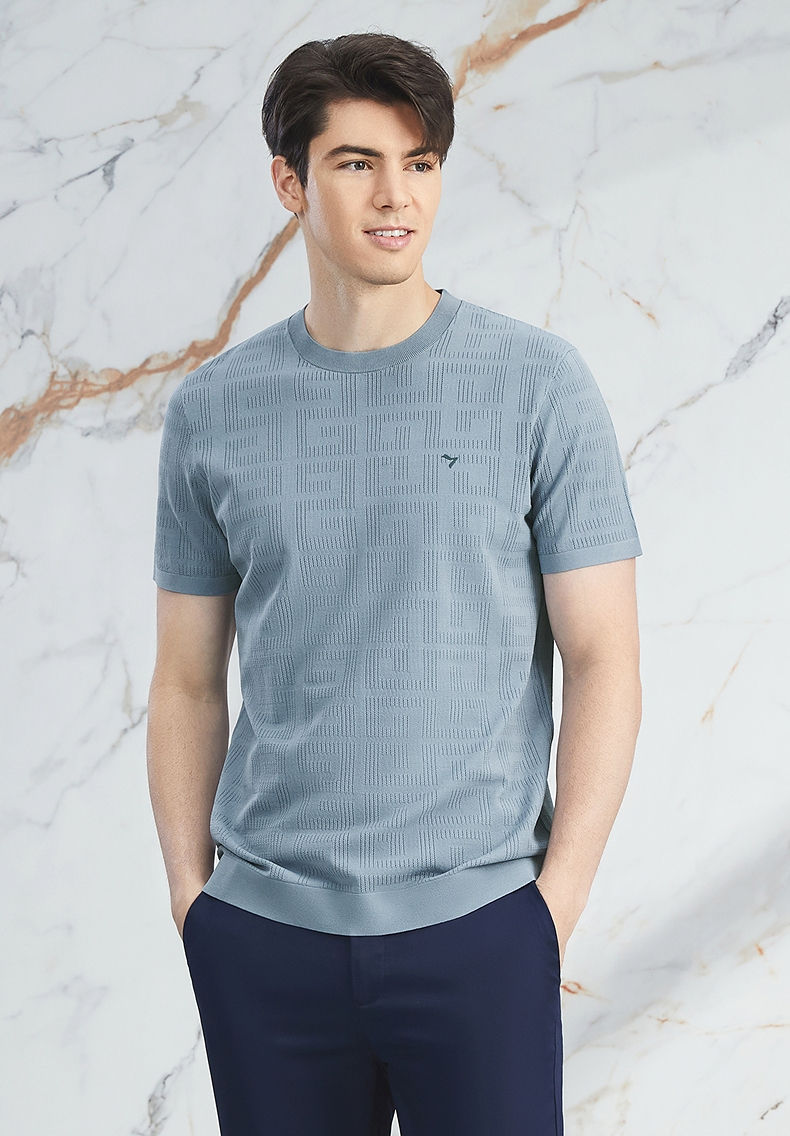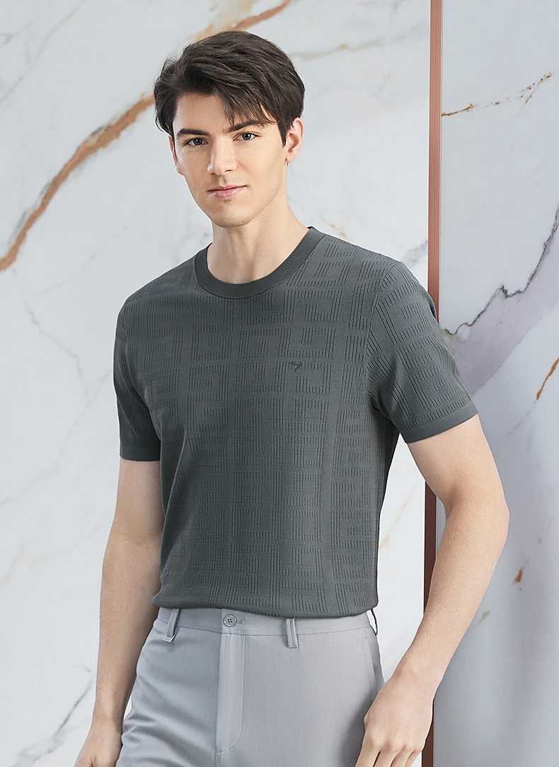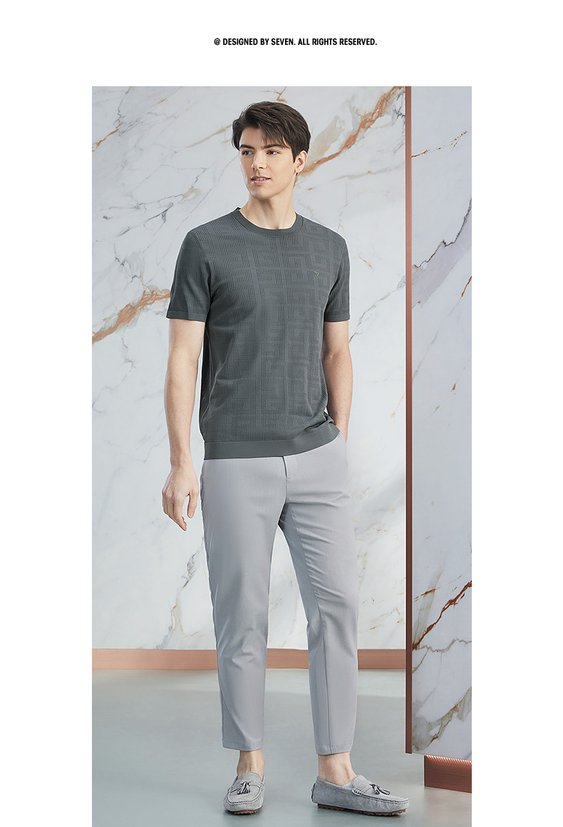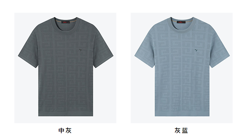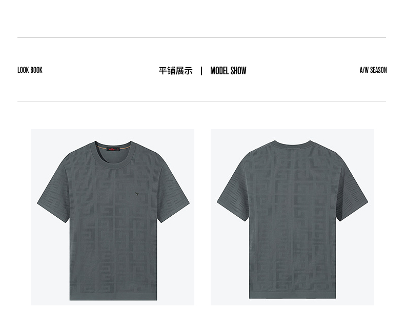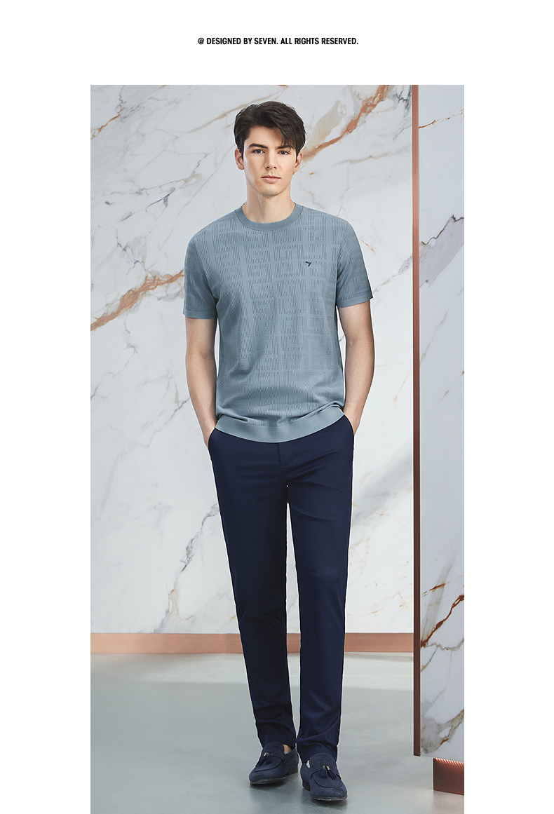 【高端系列】柒牌短袖T恤男夏季新款伊力特透气挑孔提花圆领上衣 126T71870