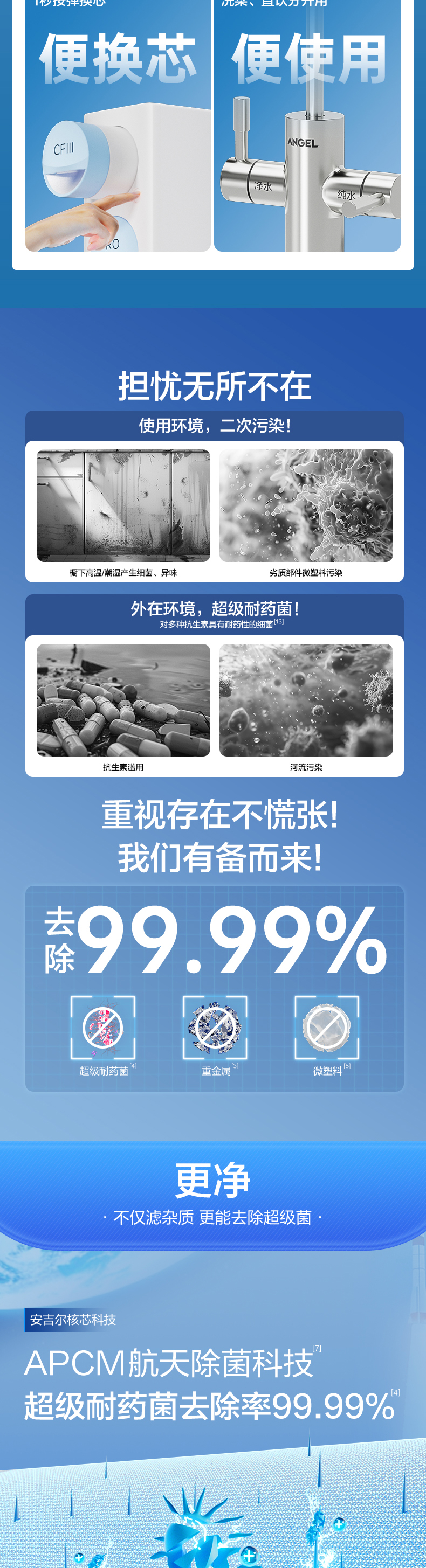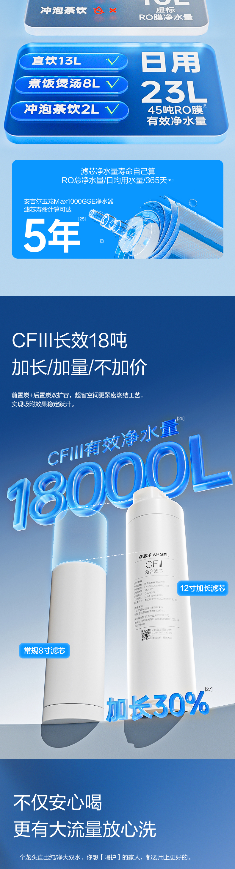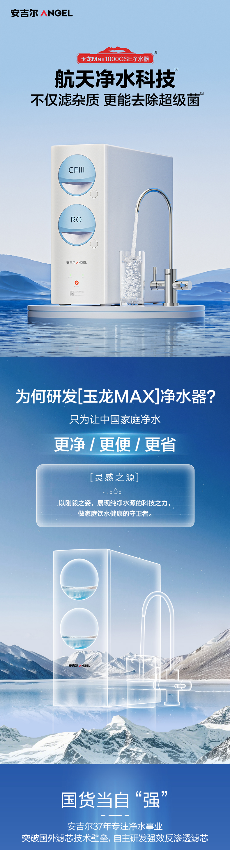 安吉尔E-Tech3800 净水器反渗透RO膜家用直饮