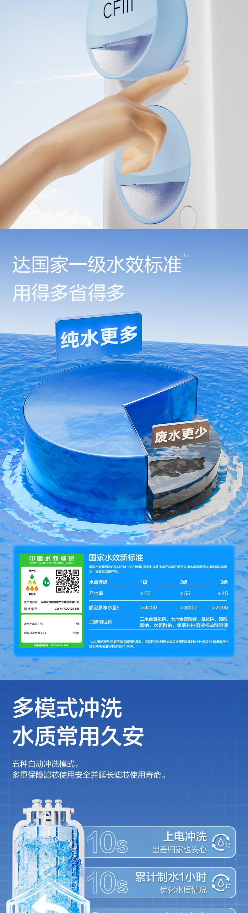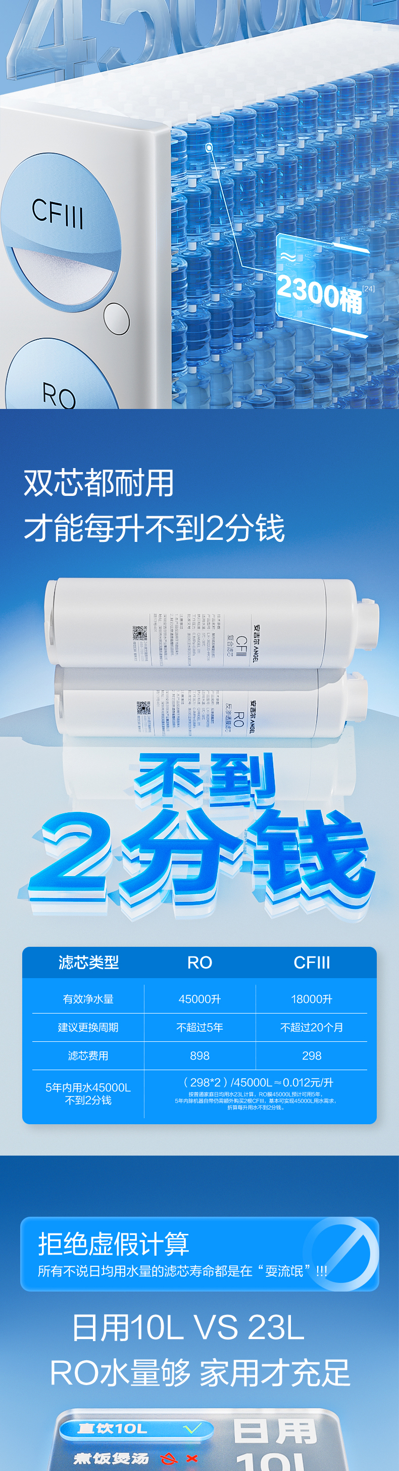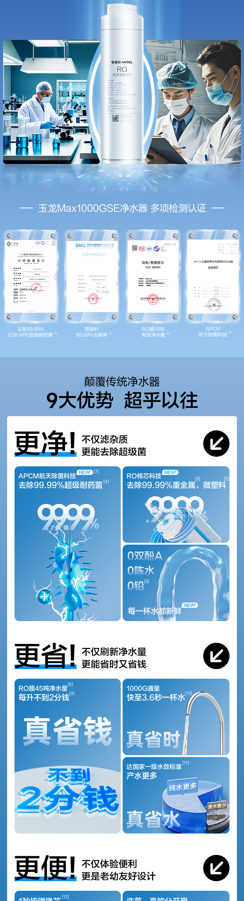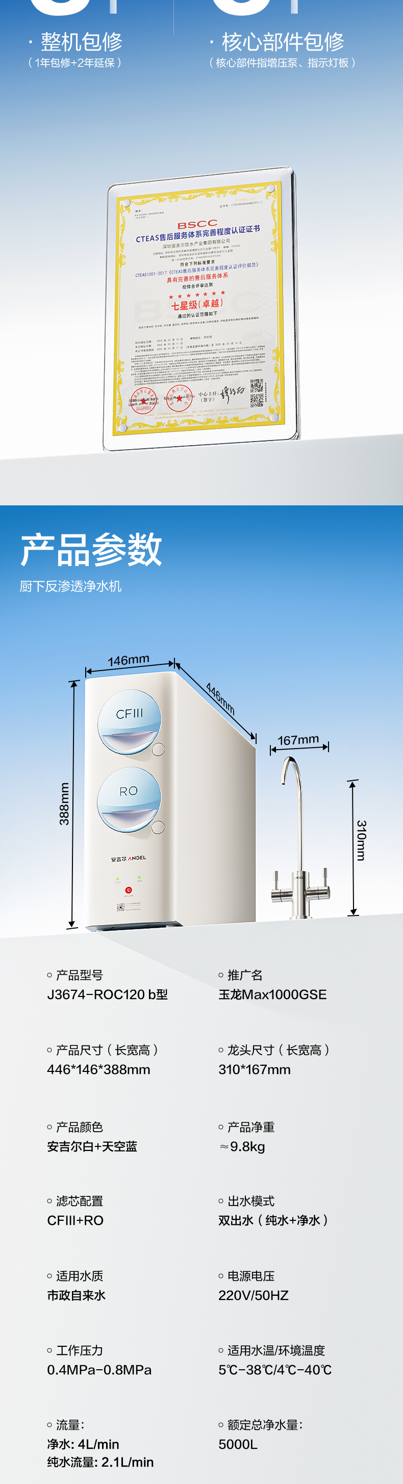 安吉尔E-Tech3800 净水器反渗透RO膜家用直饮