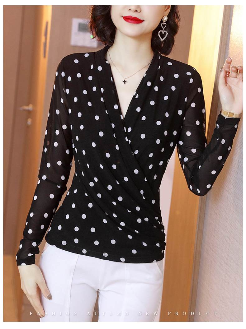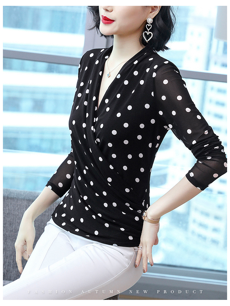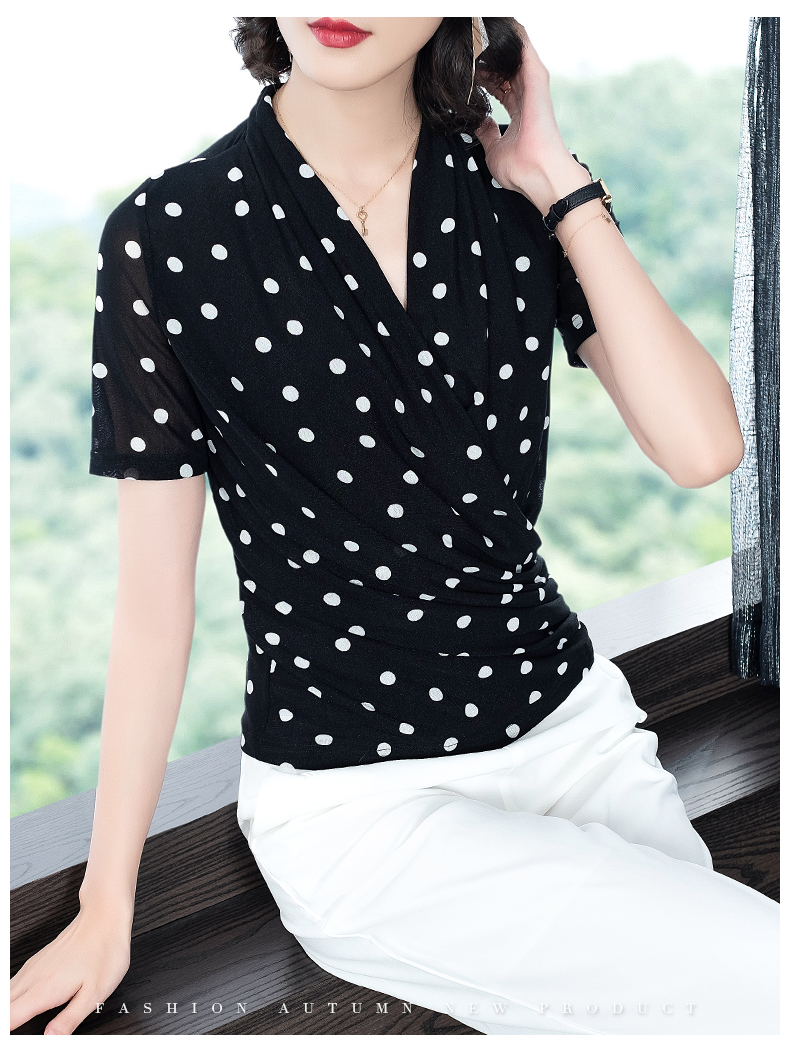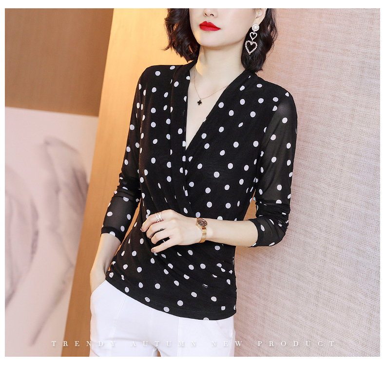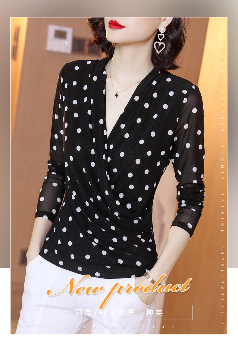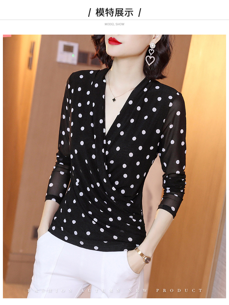 2023春波点V领网纱修身打底衫T恤内搭百搭小衫KQL-1862