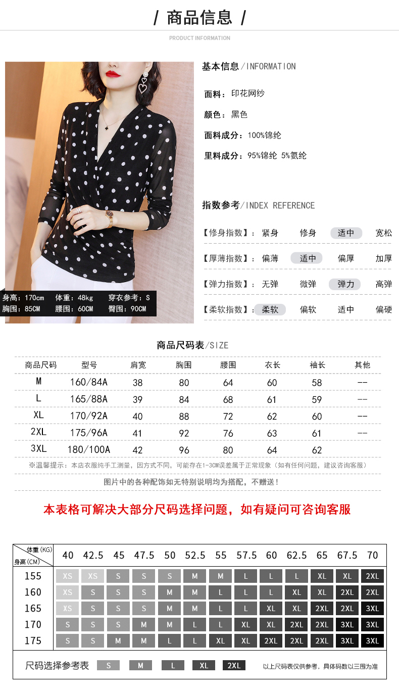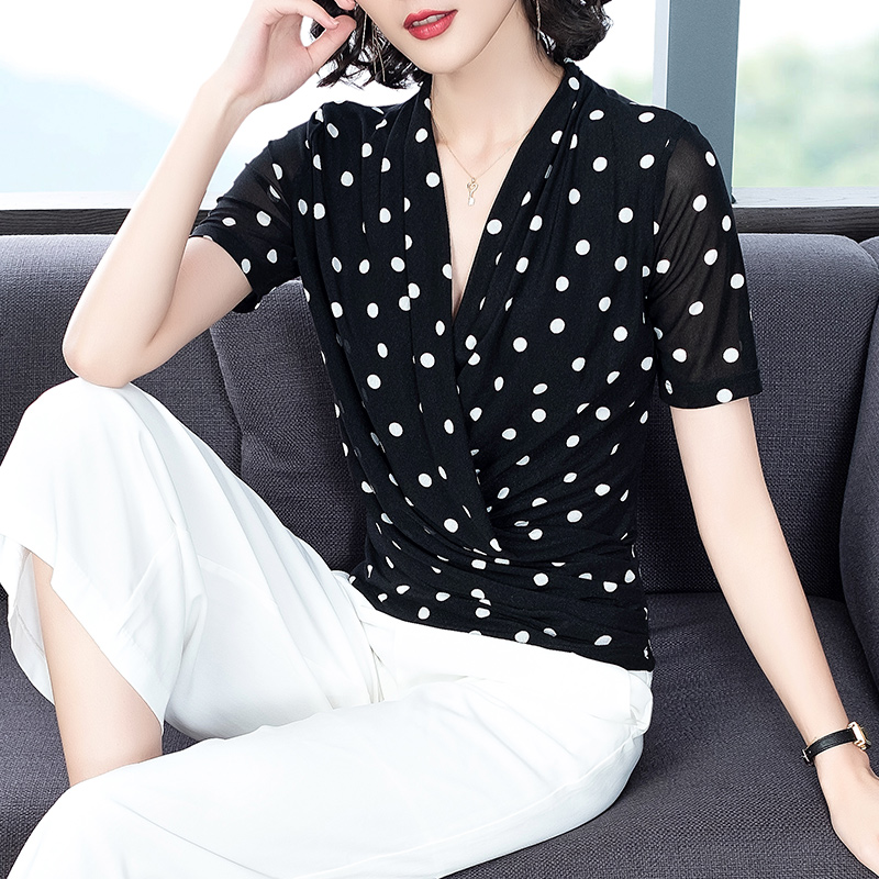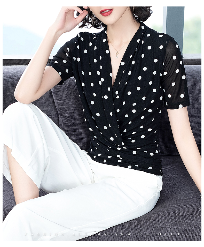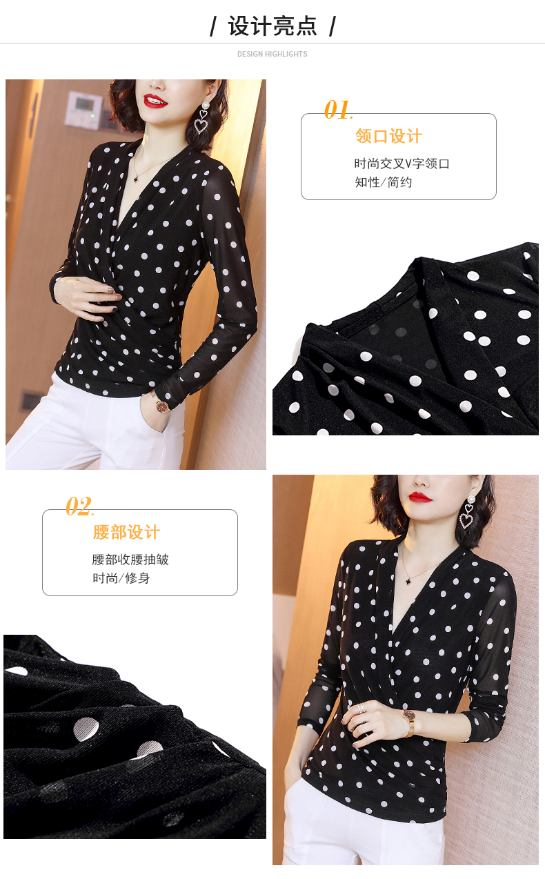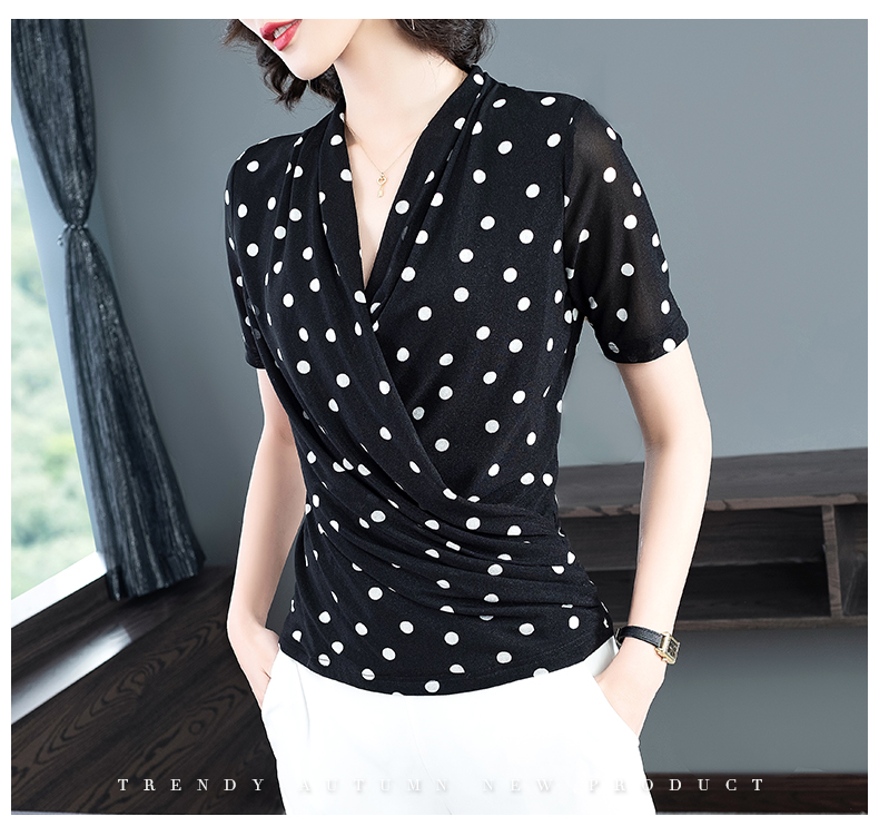 2023春波点V领网纱修身打底衫T恤内搭百搭小衫KQL-1862