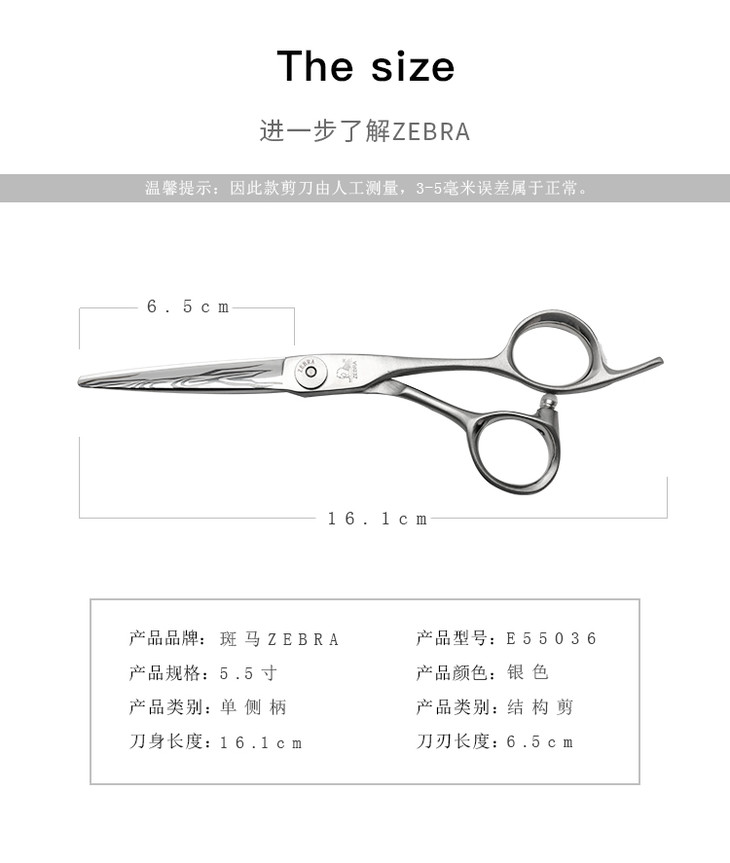 ZEBRA斑马 剪刀 E55036 锋利/直发/刘海/结构剪/线条剪/镭射/单侧柄/平剪/5.5寸