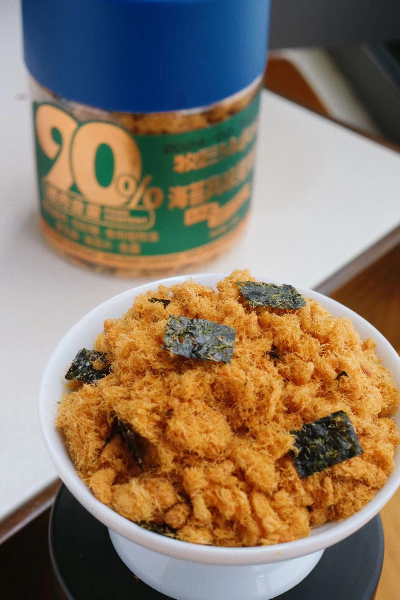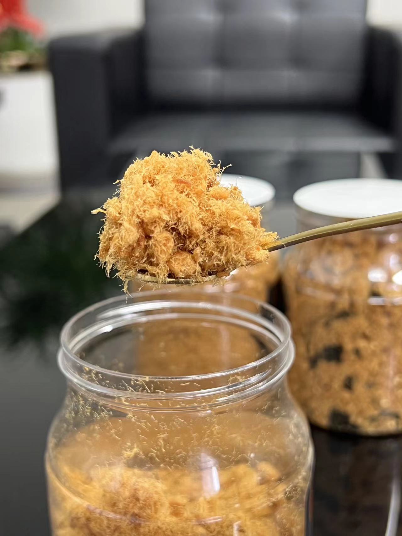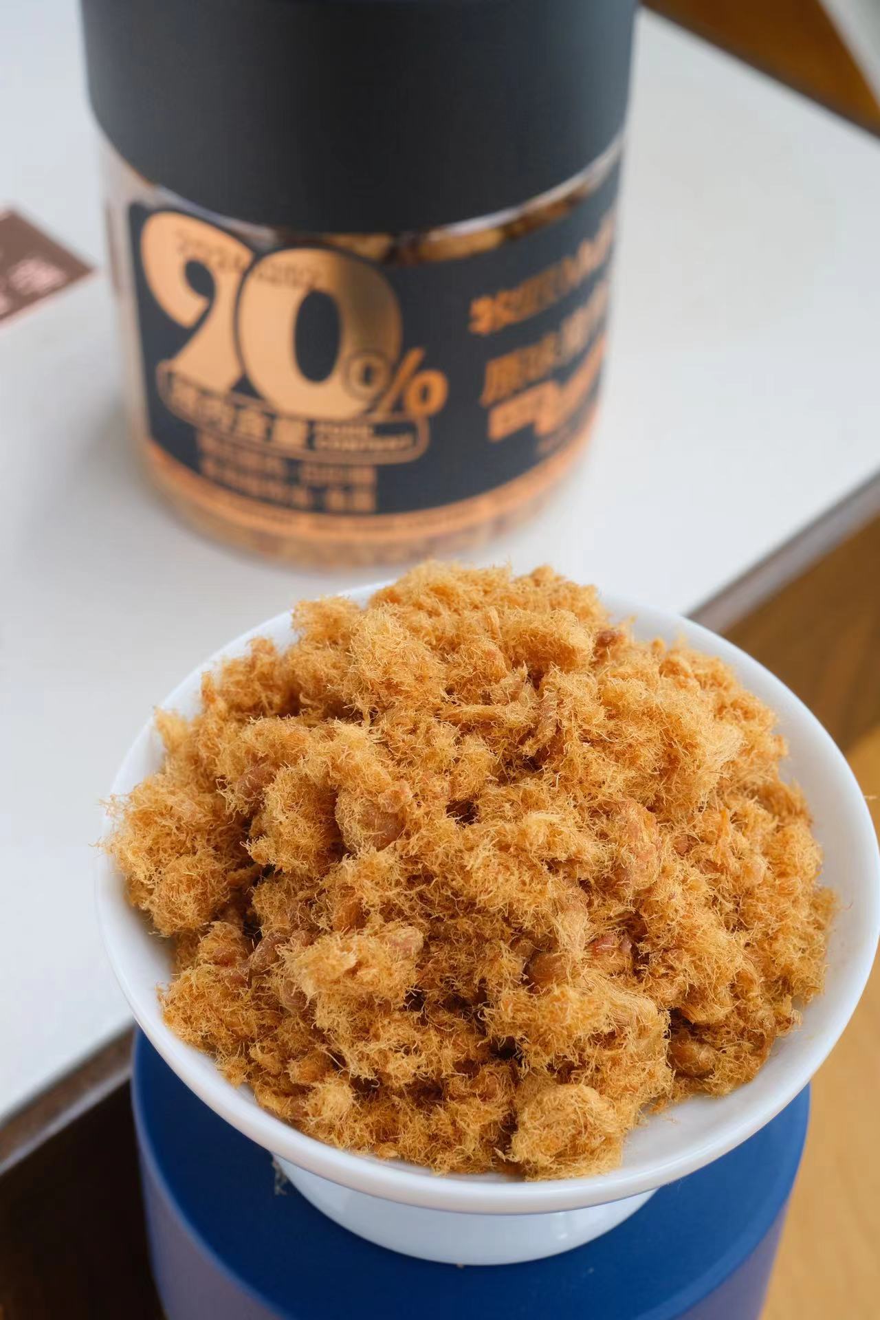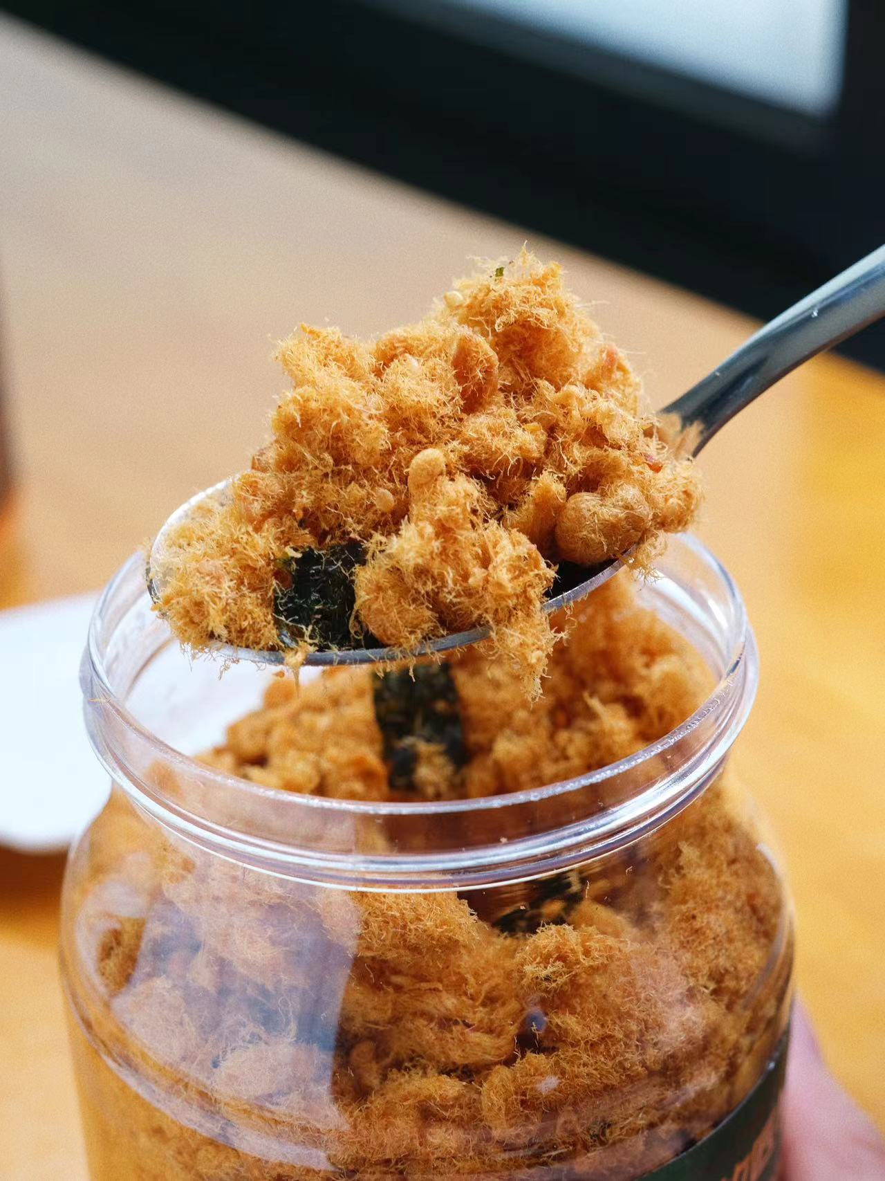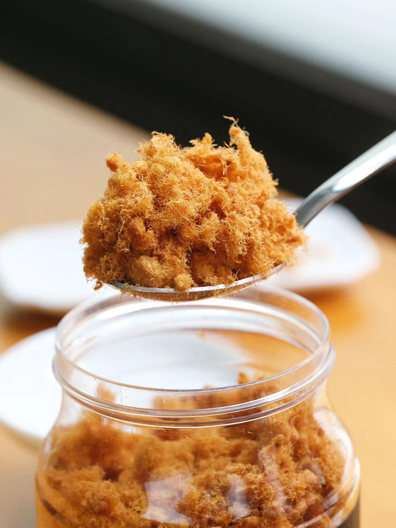 定制款,真正的猪肉松纤维并不长,咱们平时吃到的长长纤维的基本都是鸡胸肉松。这款肉松入口即化。