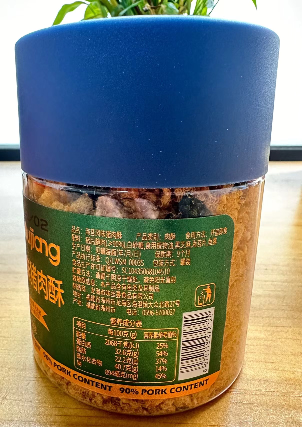 吃了一口,瞬间眼前一亮,就是我喜欢的熟悉的味道!和同学带的台湾肉松很相似。因为这个肉松也是福建人做的,我都怀疑做这个肉松的人和台湾做肉松的老伯是不是亲戚,像极了一脉相传的手艺。