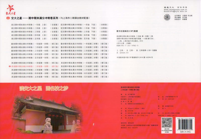 全新修订版 交大之星 期中期末满分冲刺卷 英语 二年级第一学期/2年级上册 上海小学教材教辅 同步辅导测试卷