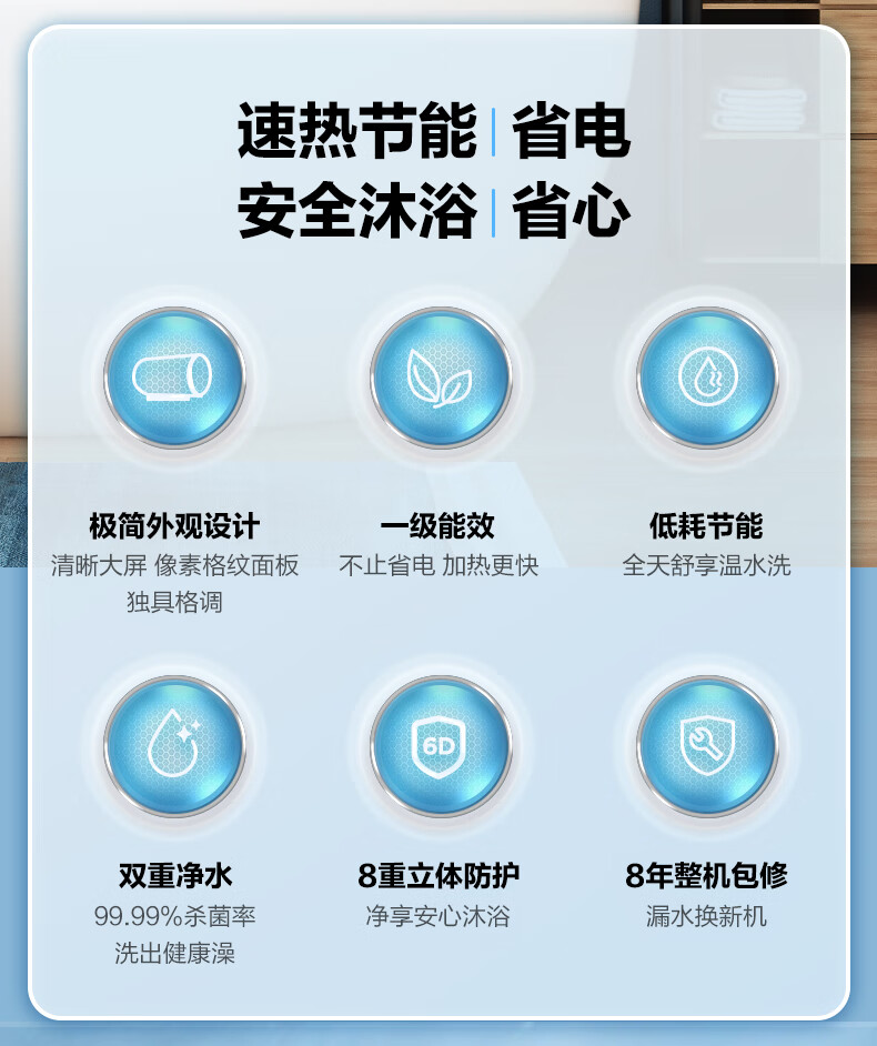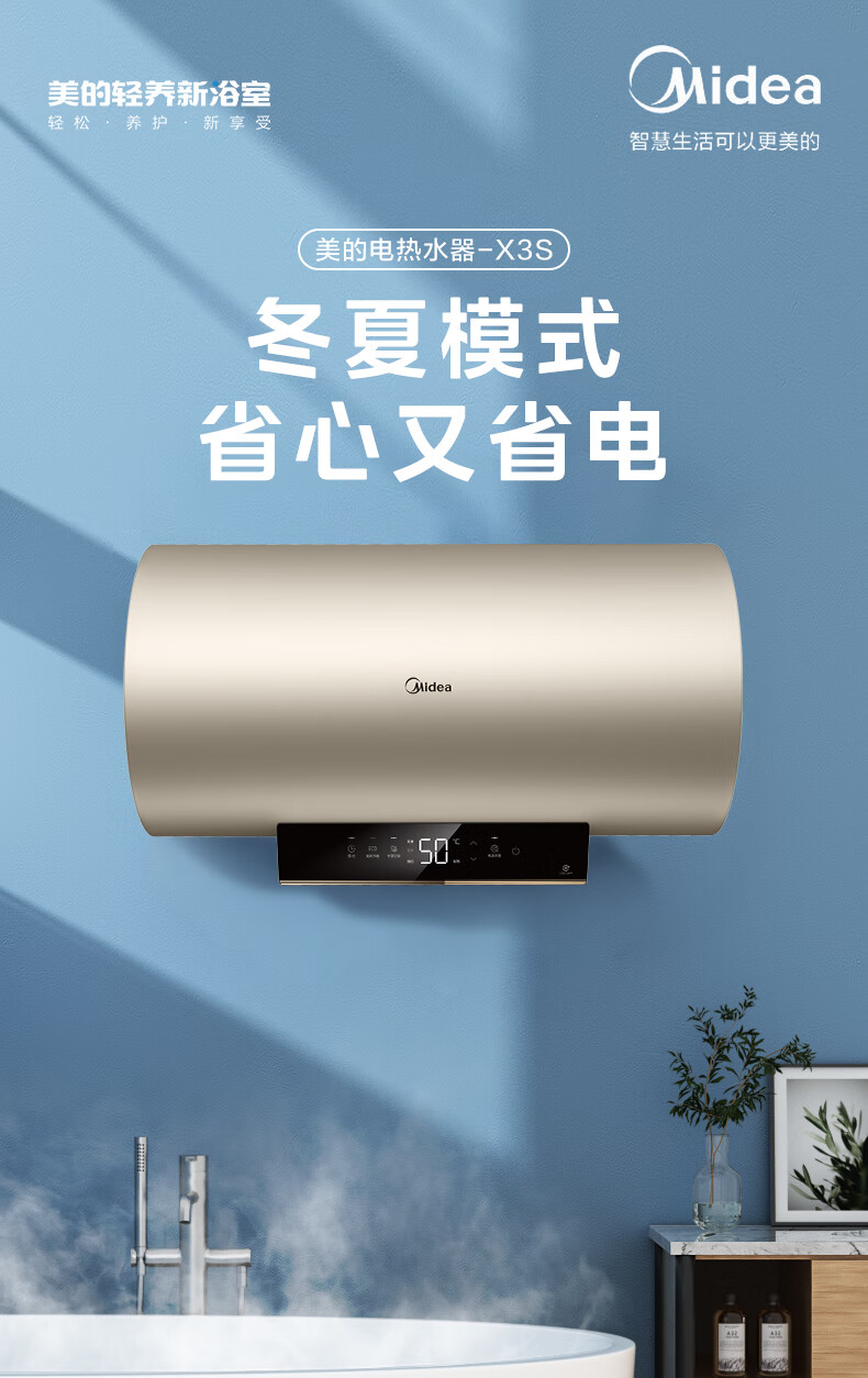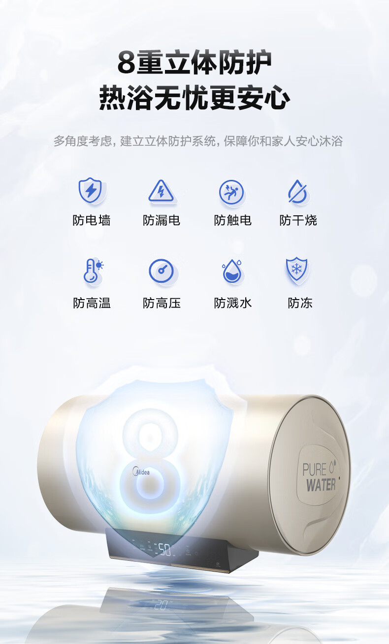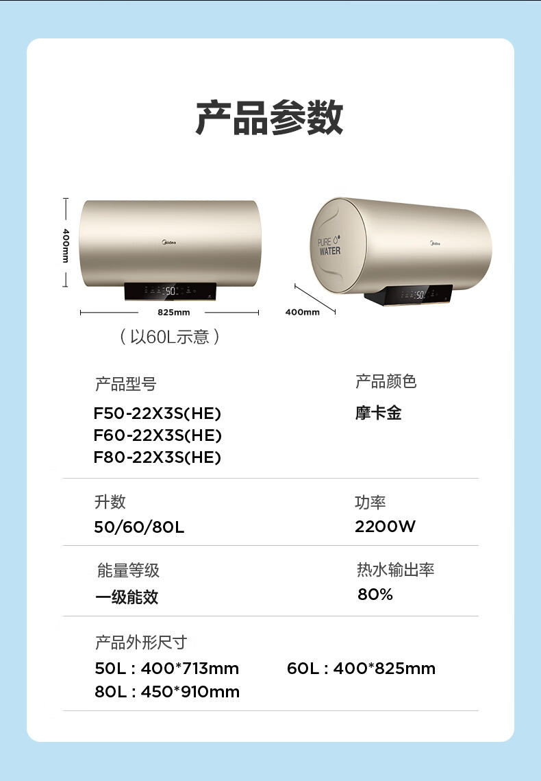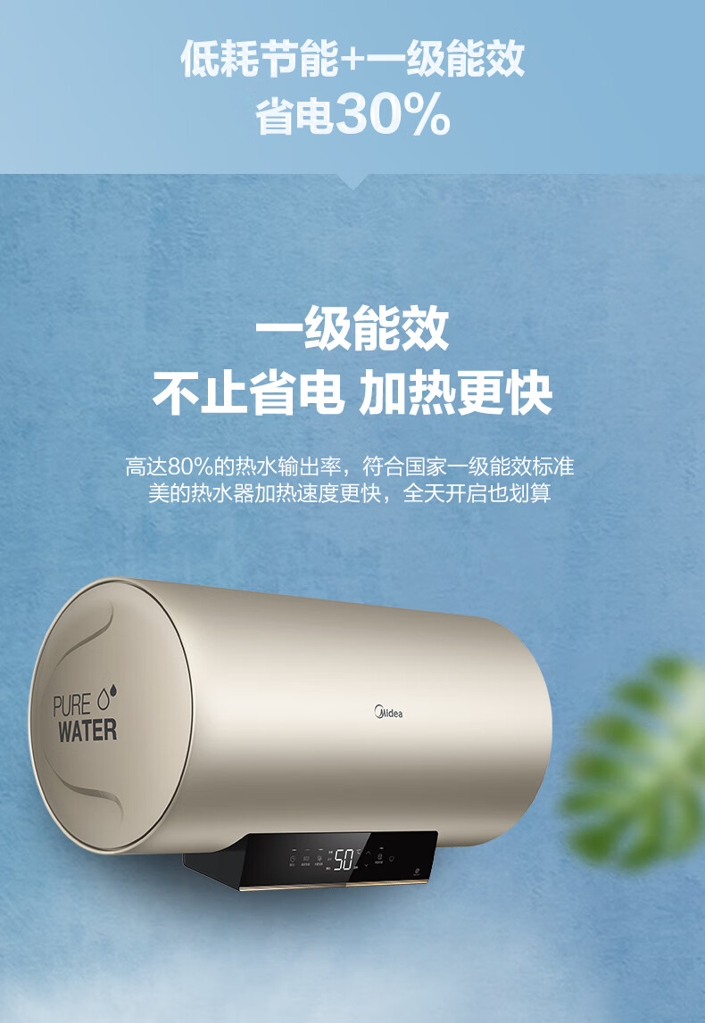 美的(Midea)60升 电热水器 2200W速热 双重净水 一级能效家用热水器F6022-X3S(HE)