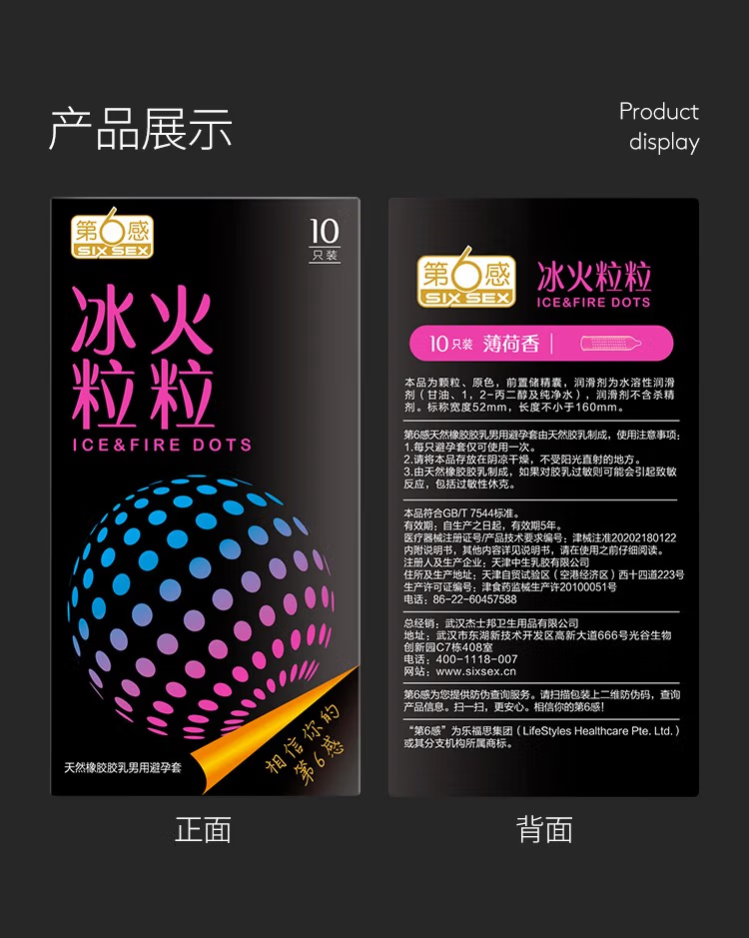 第六感情趣避孕套 冰火粒粒30只安全套 男专用成人计生情趣用品套套