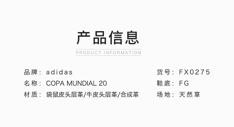 小李子正品ADIDAS阿迪达斯COPA MUNDIAL 20 FG男子足球鞋FX0275