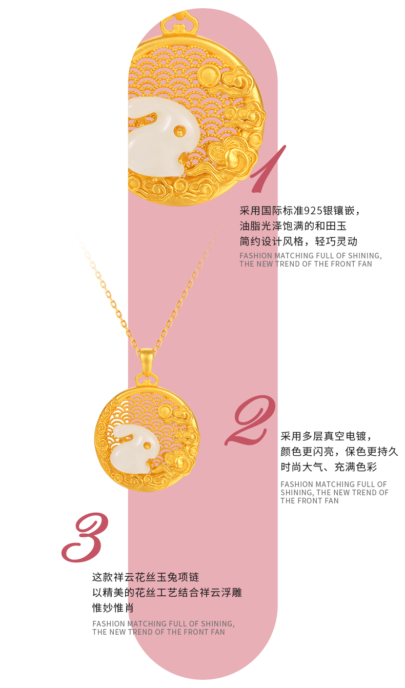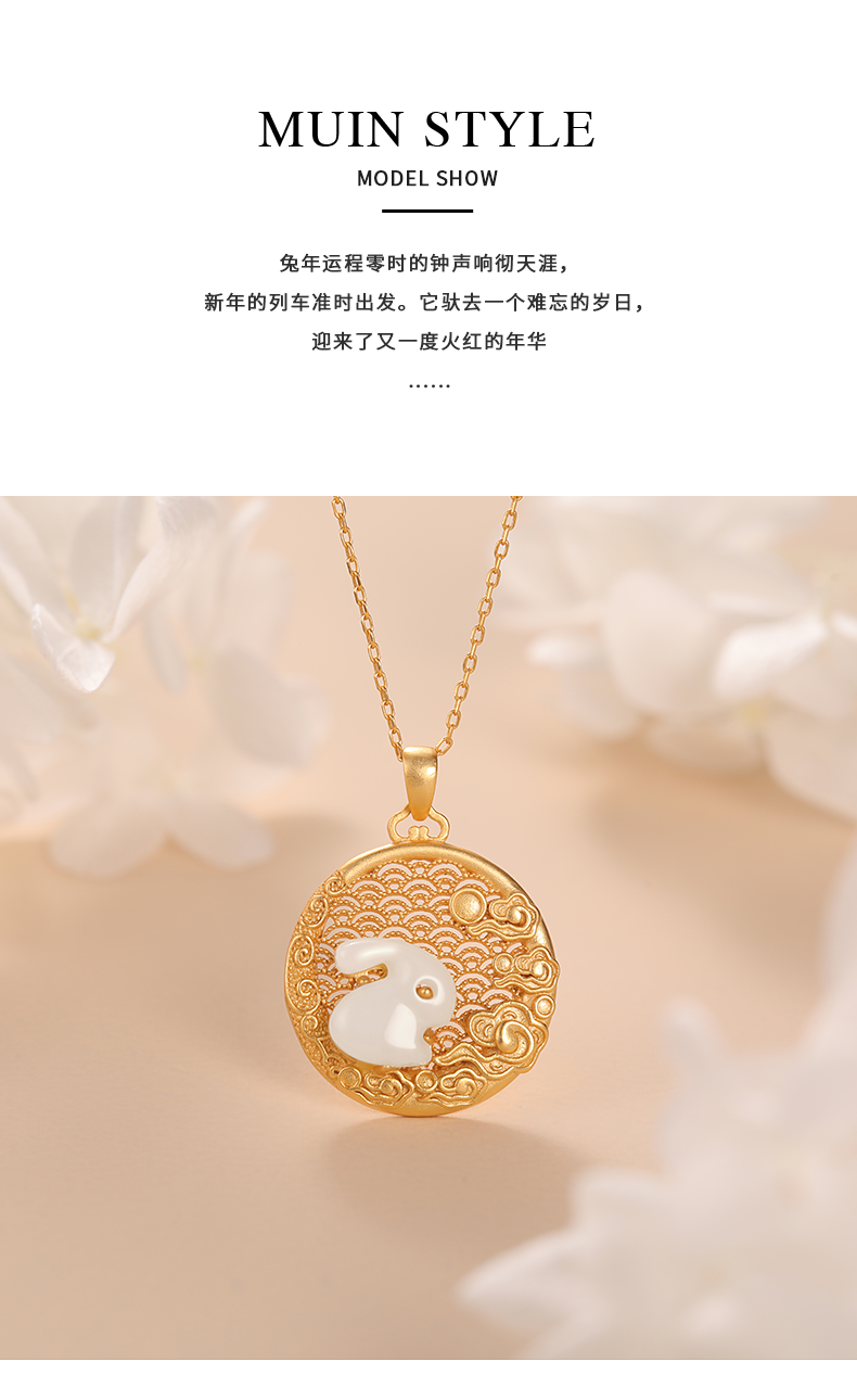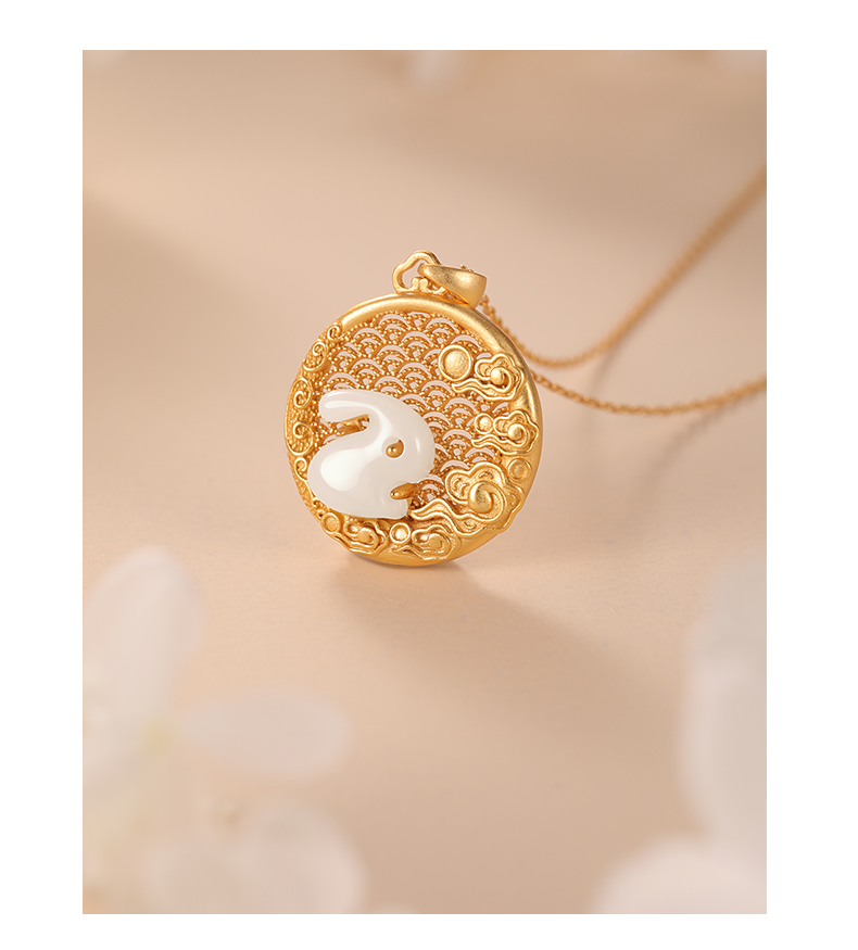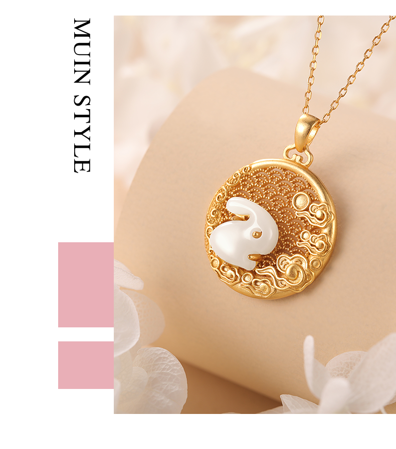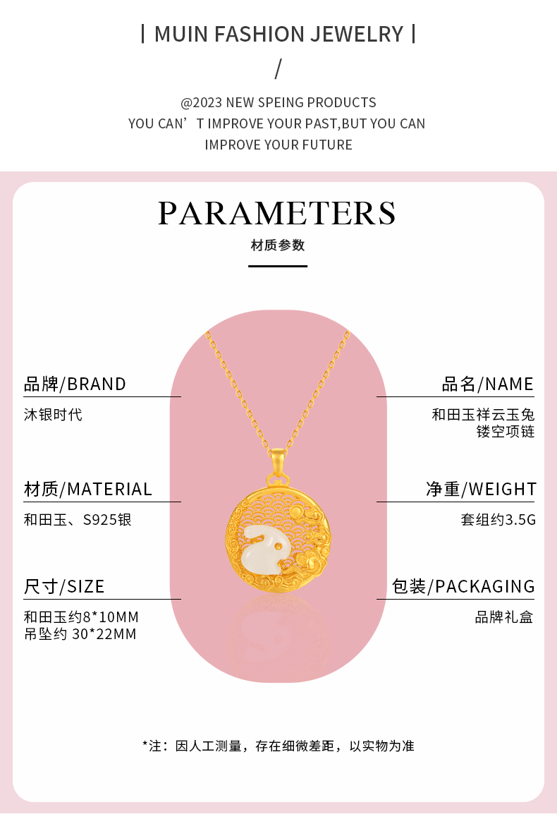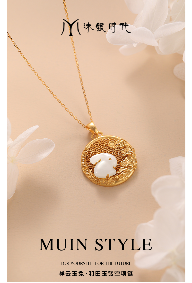 沐银时代中国风和田玉祥云玉兔镂空项链 TJ-B922+红玉髓蛋面项链TJ-MN016