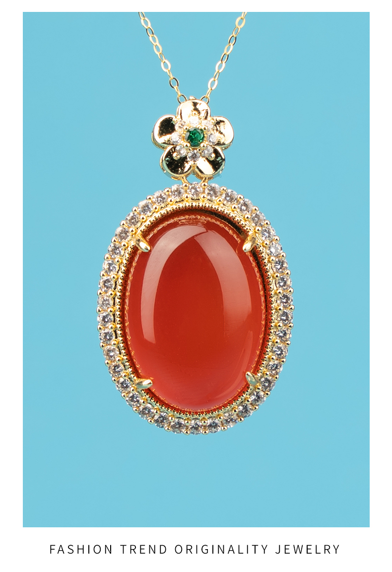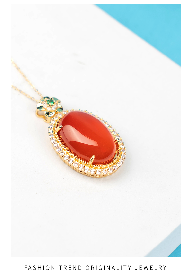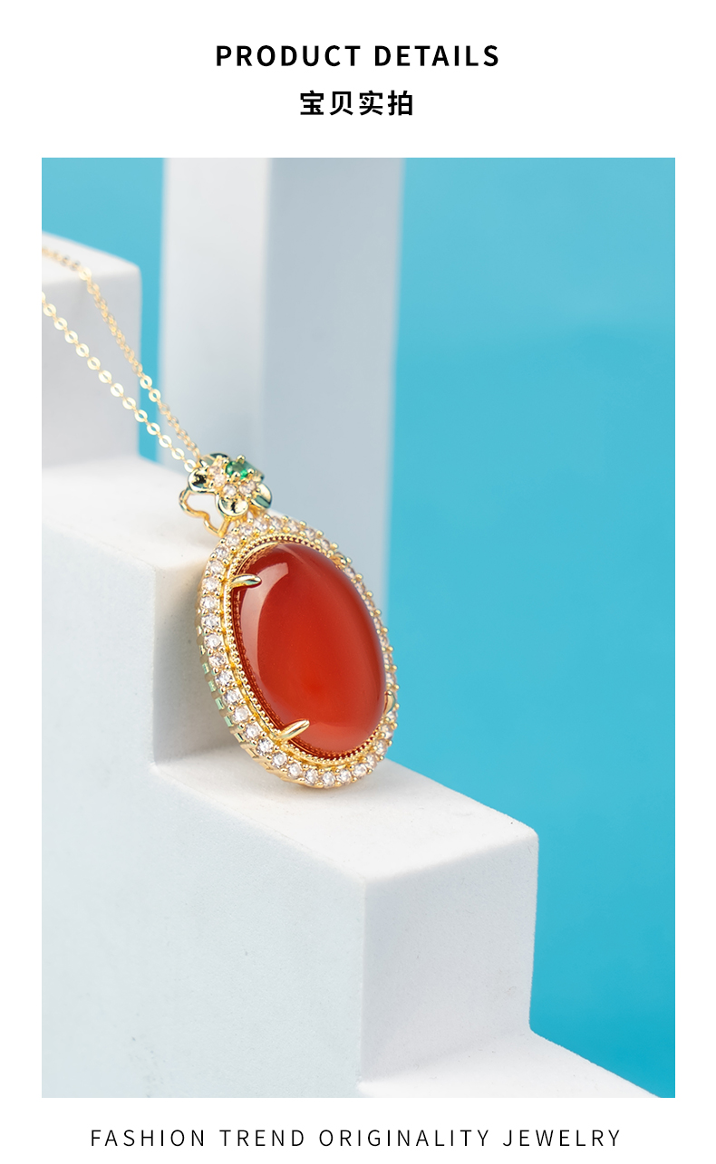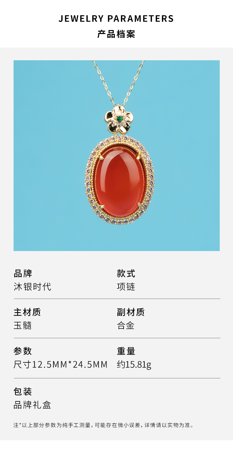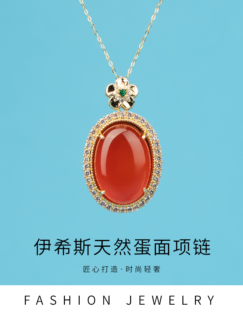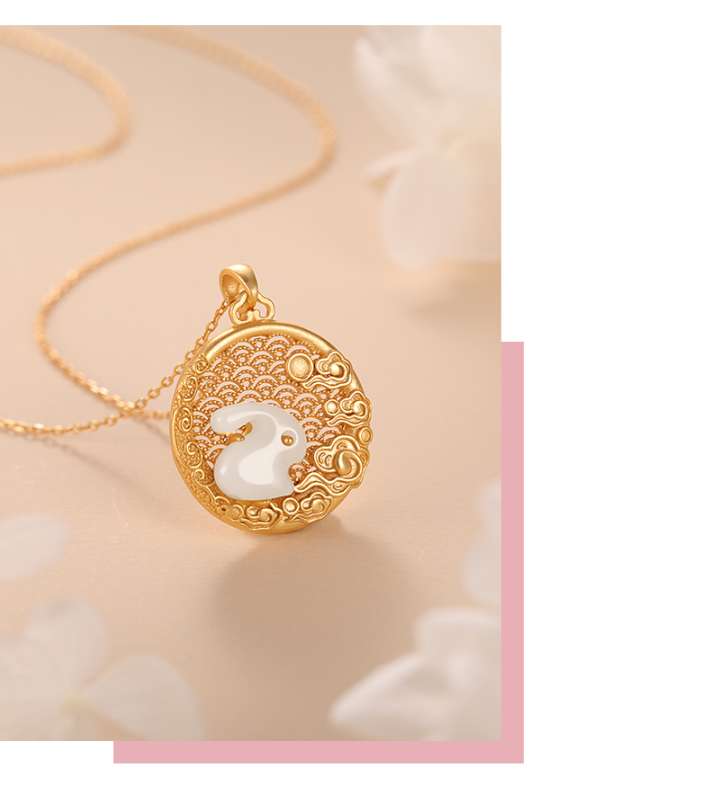 沐银时代中国风和田玉祥云玉兔镂空项链 TJ-B922+红玉髓蛋面项链TJ-MN016
