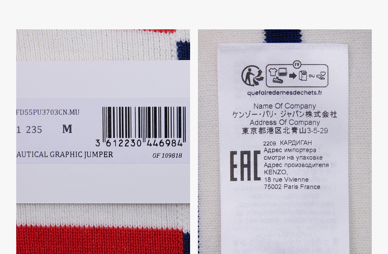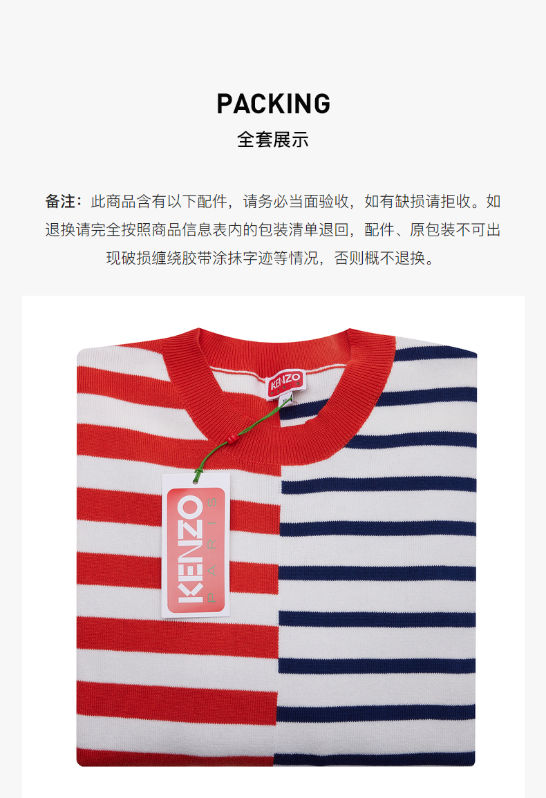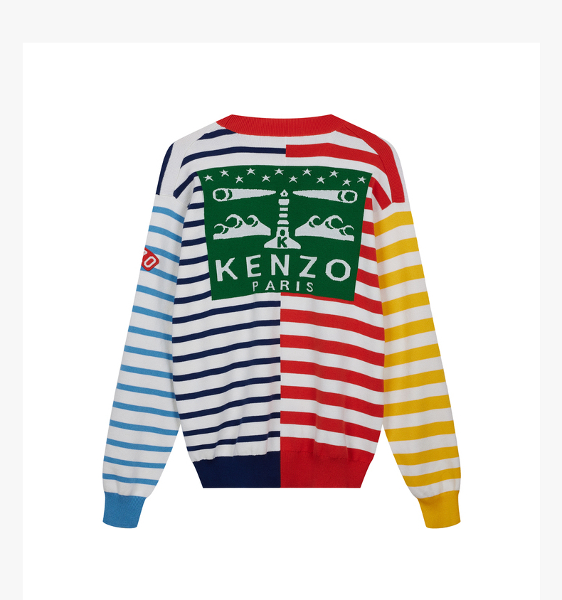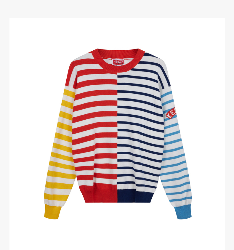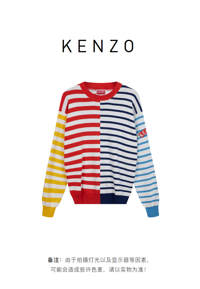 KENZO 高田贤三 男士棉质针织印花字母logo花色卫衣休闲条纹毛衣 FD55PU3703CN