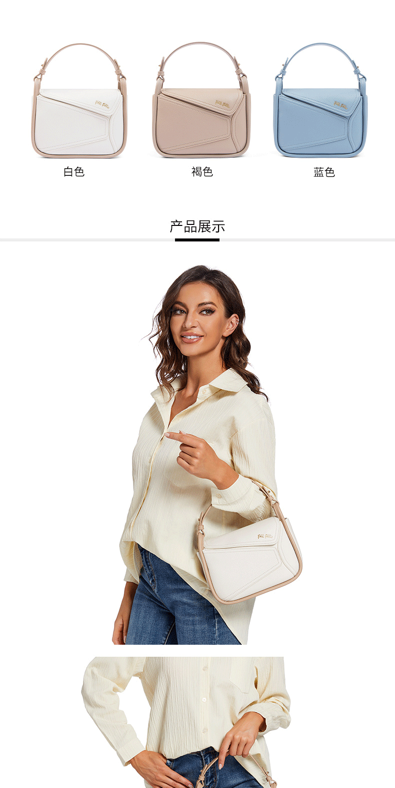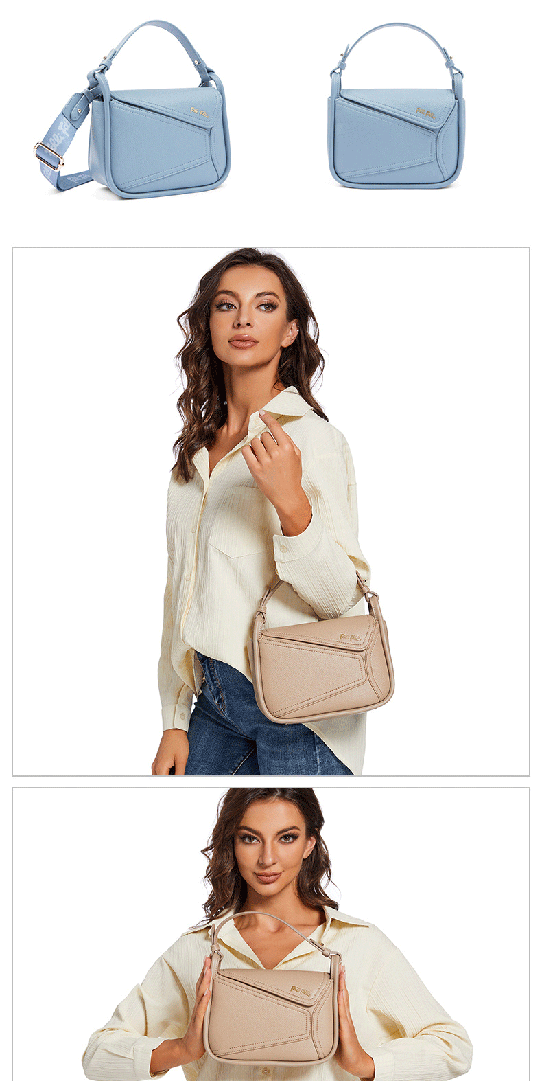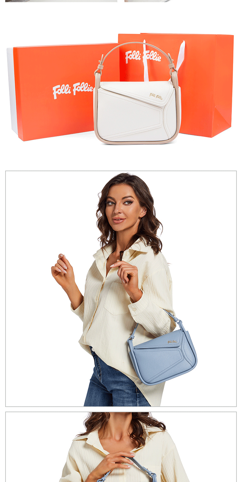 【Folli Follie】希腊轻奢时尚拼接挂耳小方包